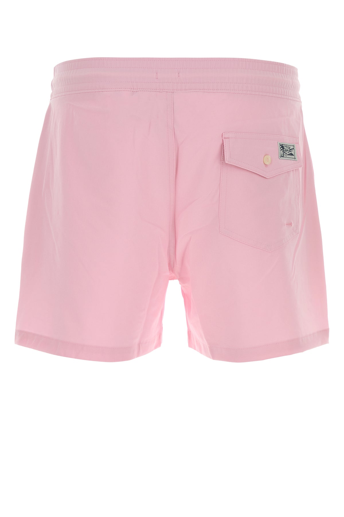 Swimming shorts realized in stretch polyester characterized by contrasting iconic embroidered logo at the front enriched by logoed label at the back.