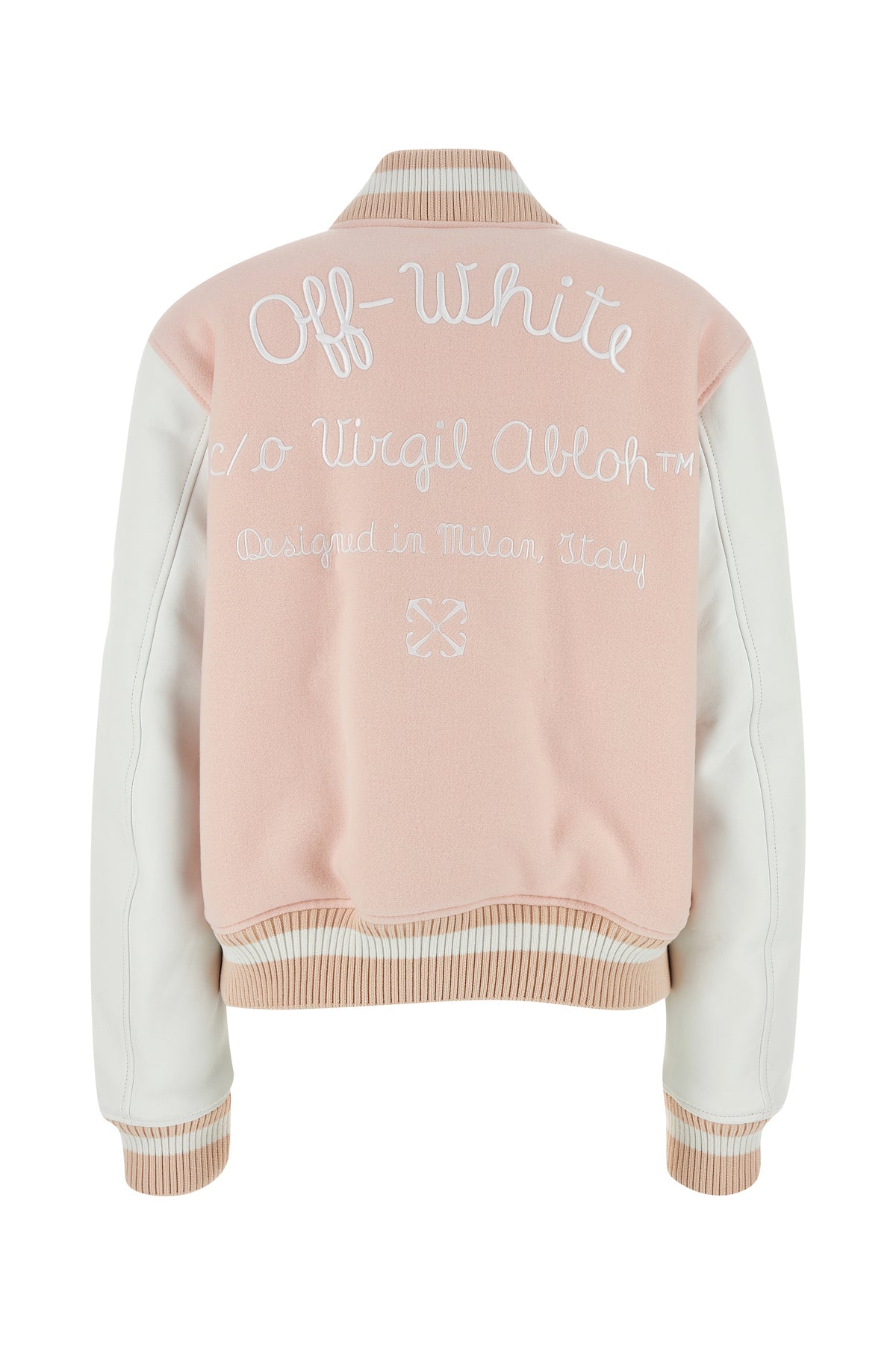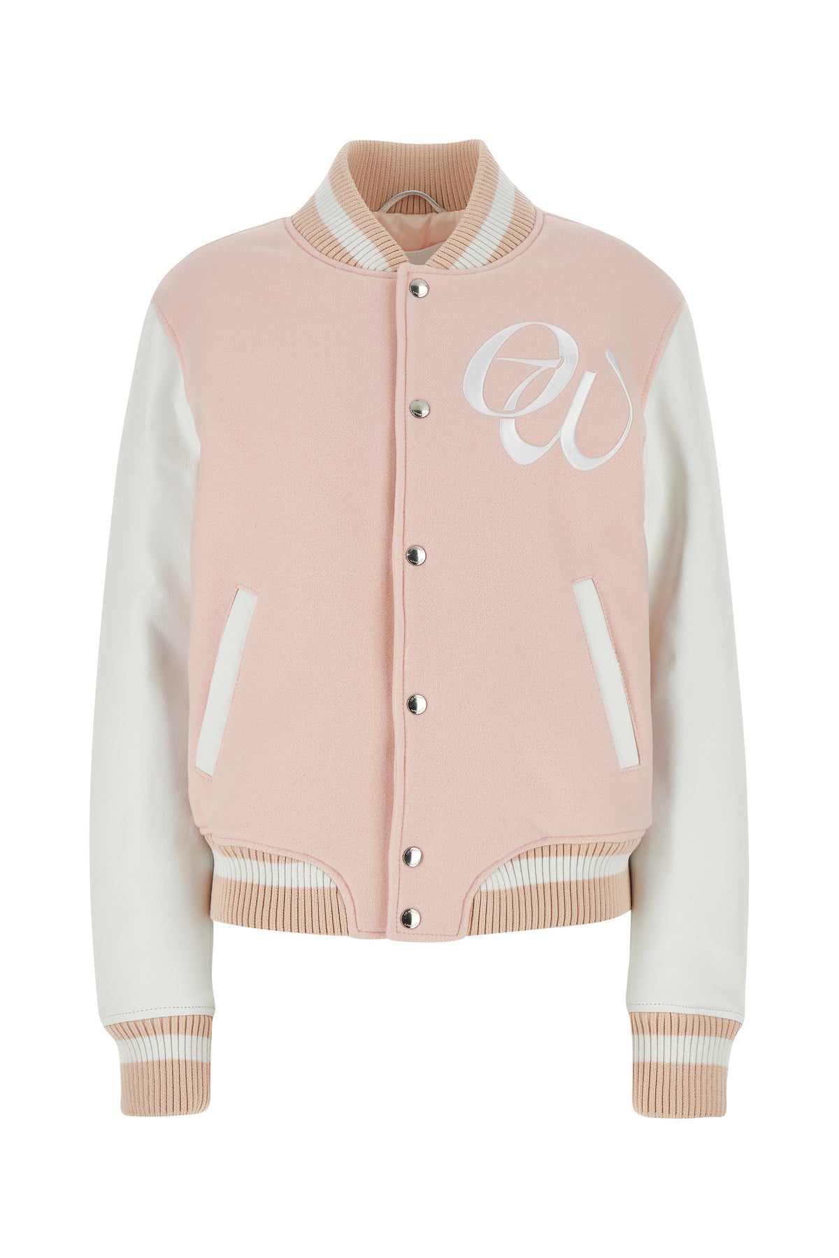 Bomber jacket realized in virgin wool blend with contrasting leather inserts on the sleeves characterized by contrasting logoed embroidery on the chest and at the back.