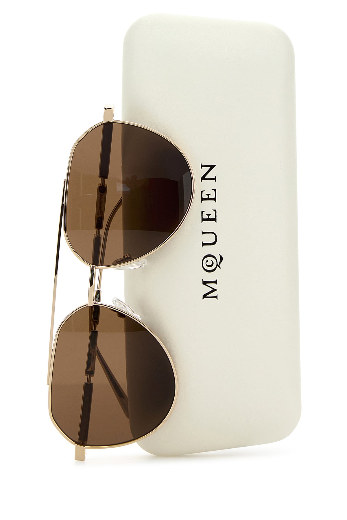 Aviator style sunglasses realized in metal characterized by embossed logo on the arms.