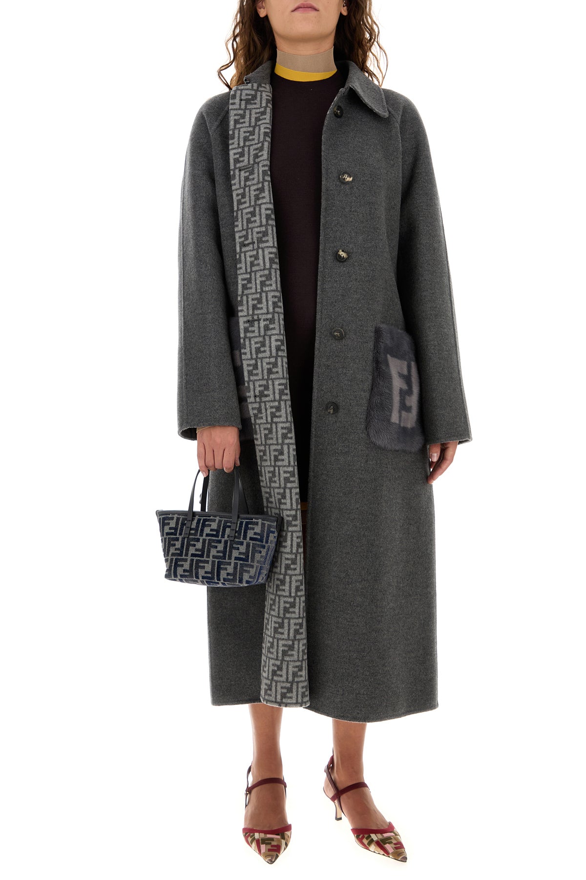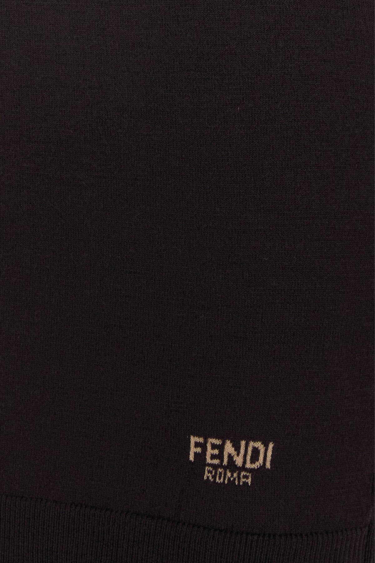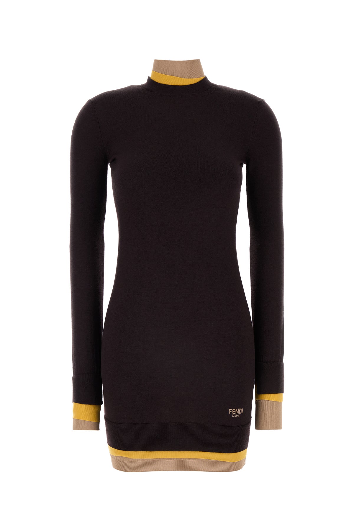Fitted dress realized in wool blend characterized by contrasting Fendi Roma embroidery on the hemline.