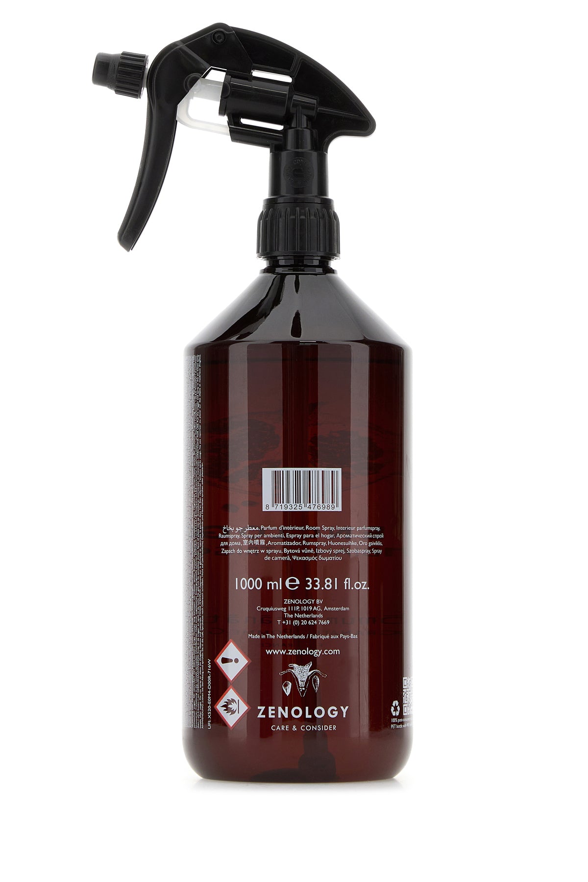 Room spray characterized by recycled PET bottle with logoed print at the front.