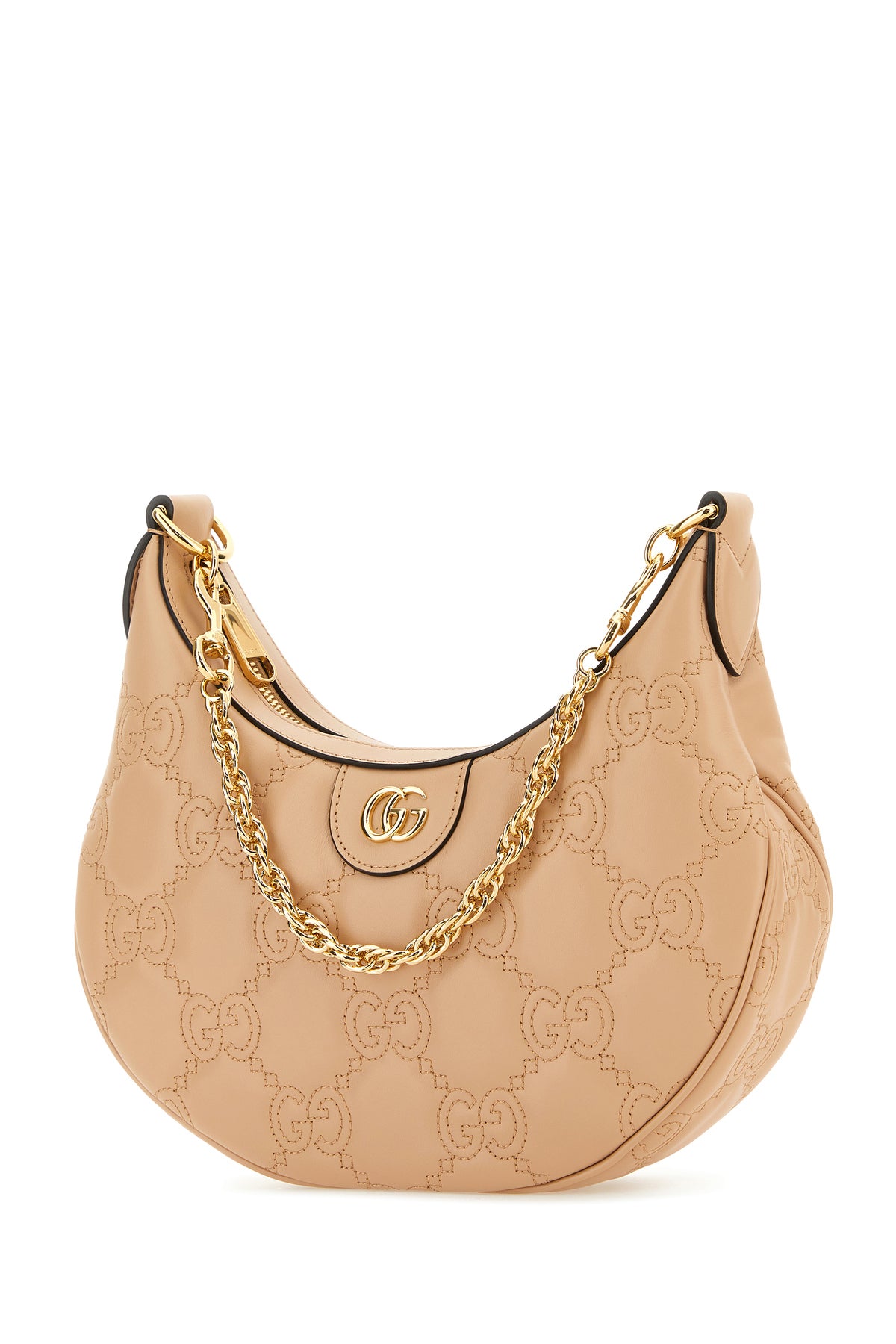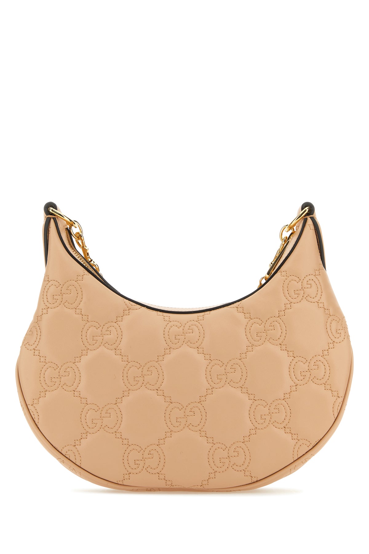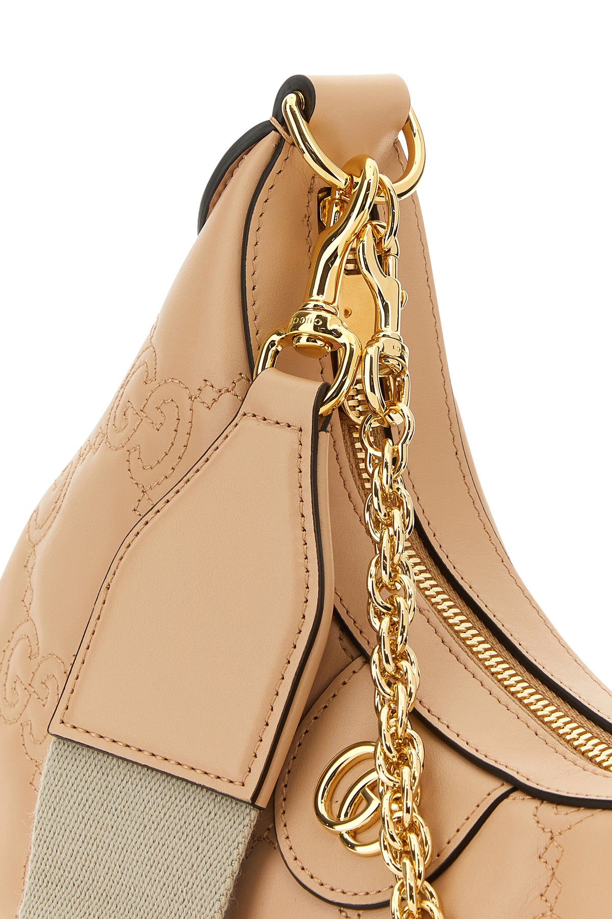 Handbag realized in smooth leather characterized by tonal GG motif stitchings enriched by metal GG detail at the front.