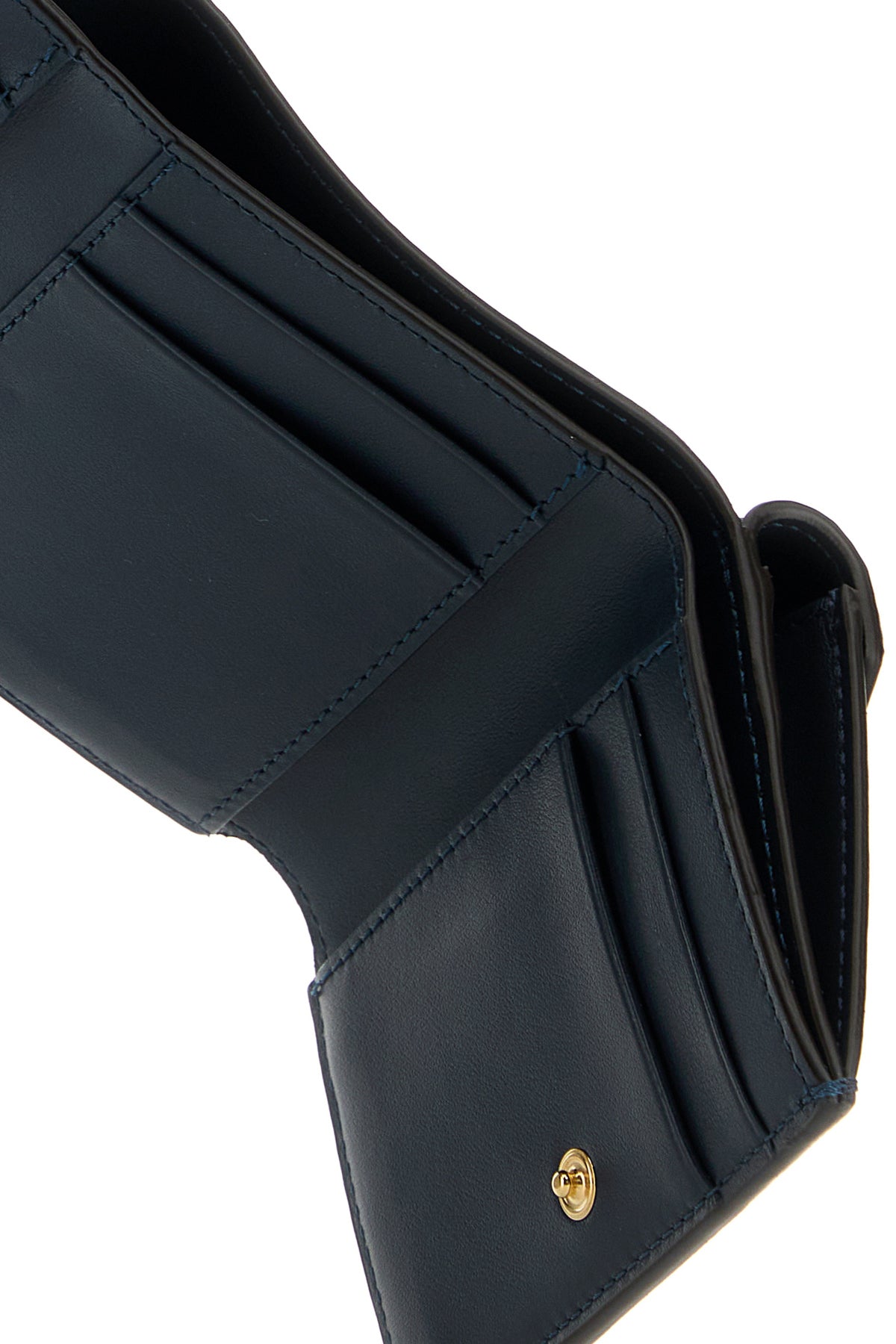 - Interior with a bill compartments, three slit pockets and six credit card slots