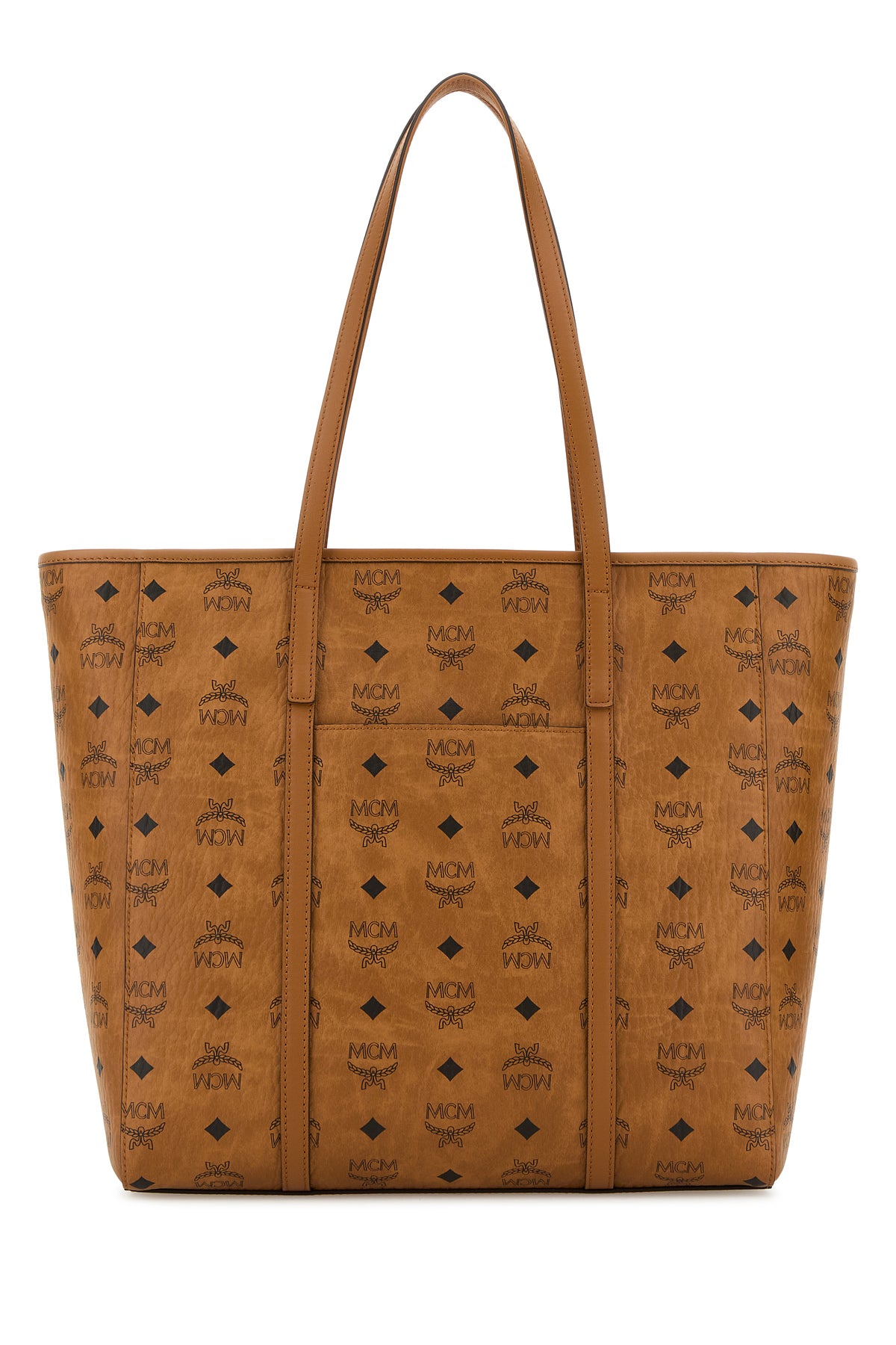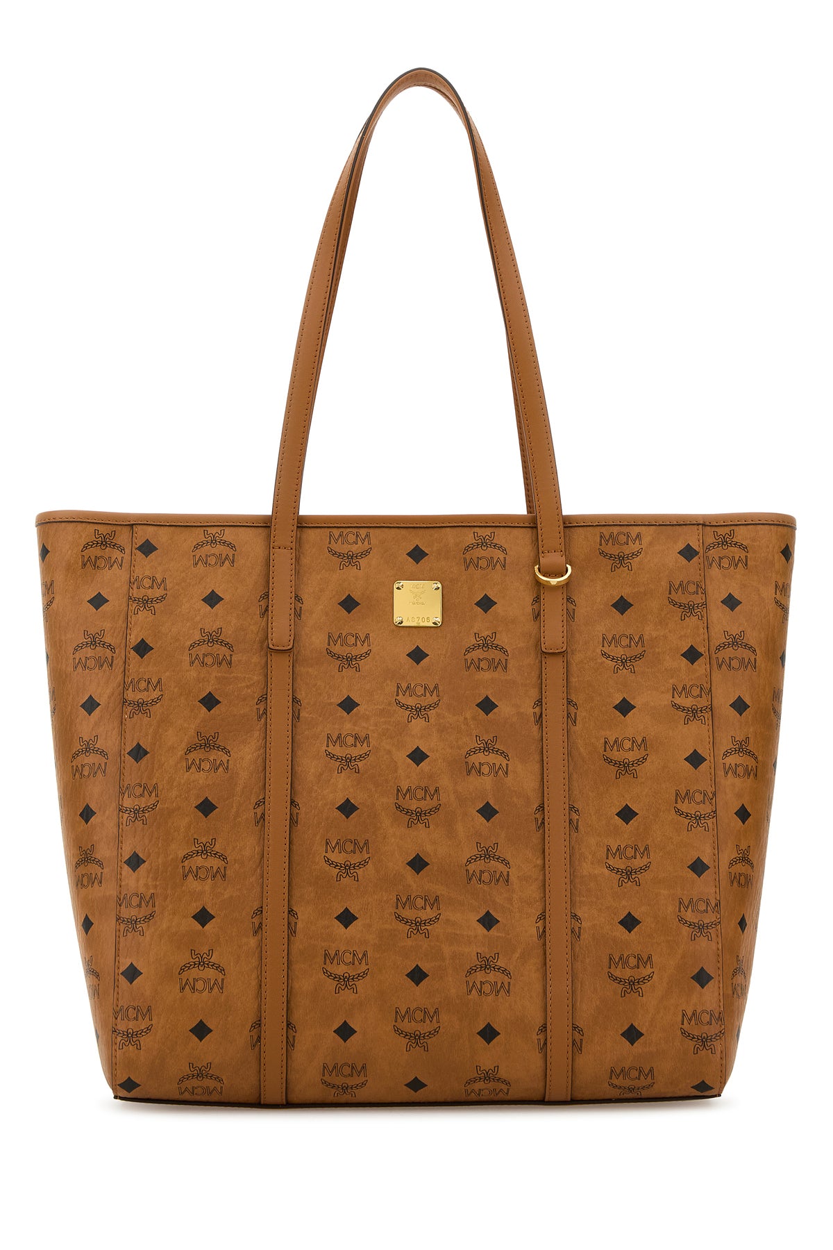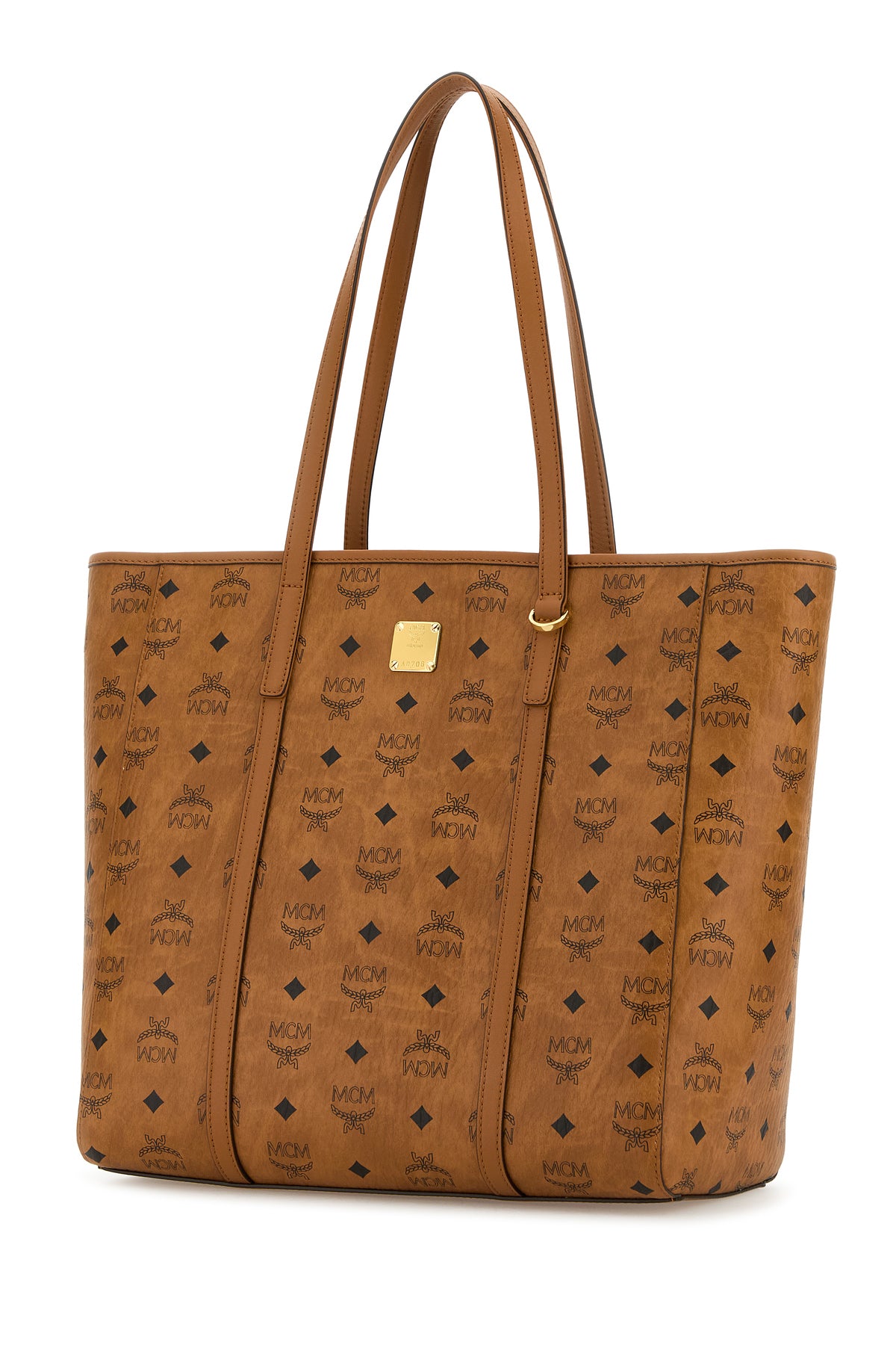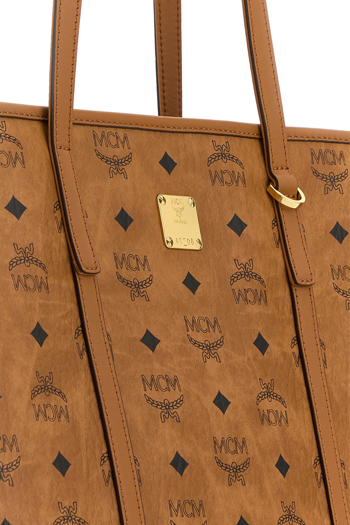 Shopping bag realized in coated canvas characterized by Visetos print on the entire surface enriched by metal logoed plate at the front.