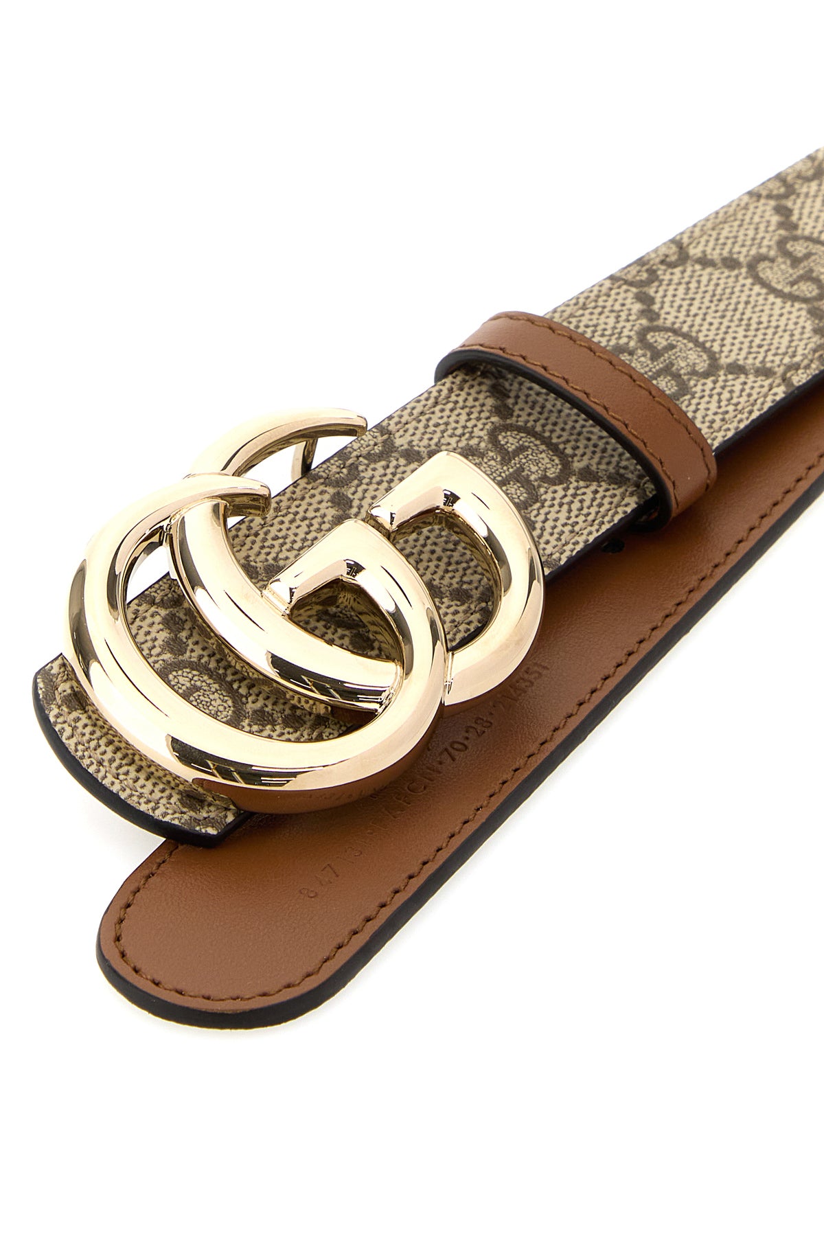 Reversible belt realized in coated canvas characterized by GG print on the entire surface enriched by GG metal buckle.