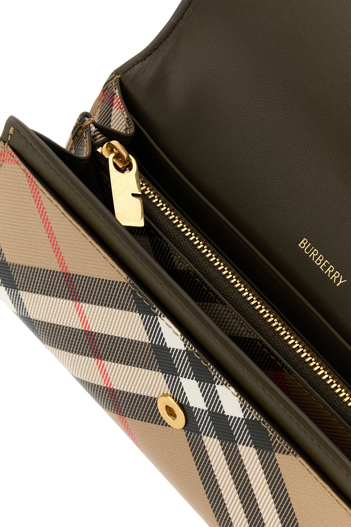 Wallet realized in coated canvas characterized by Burberry Check print on the entire surface.