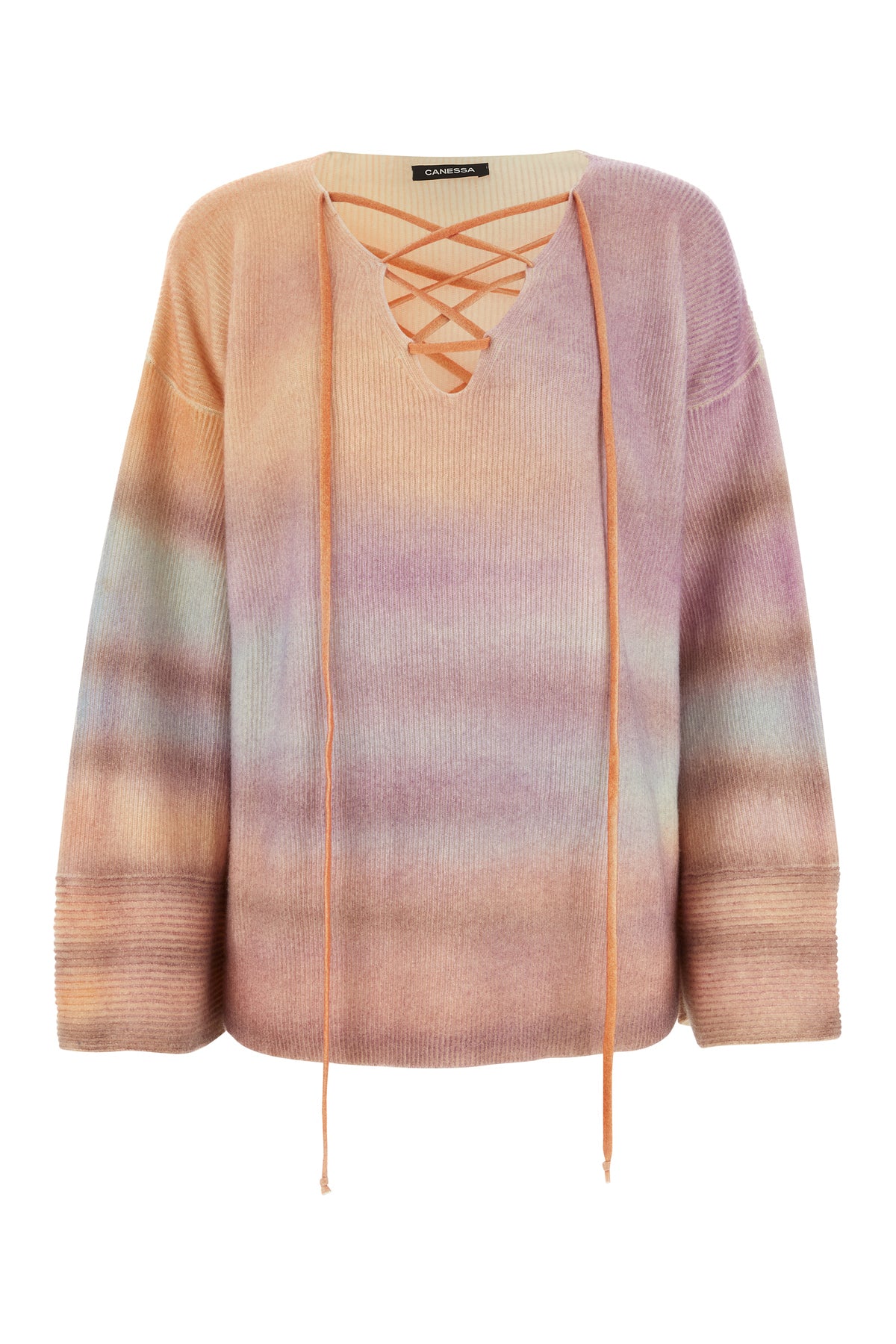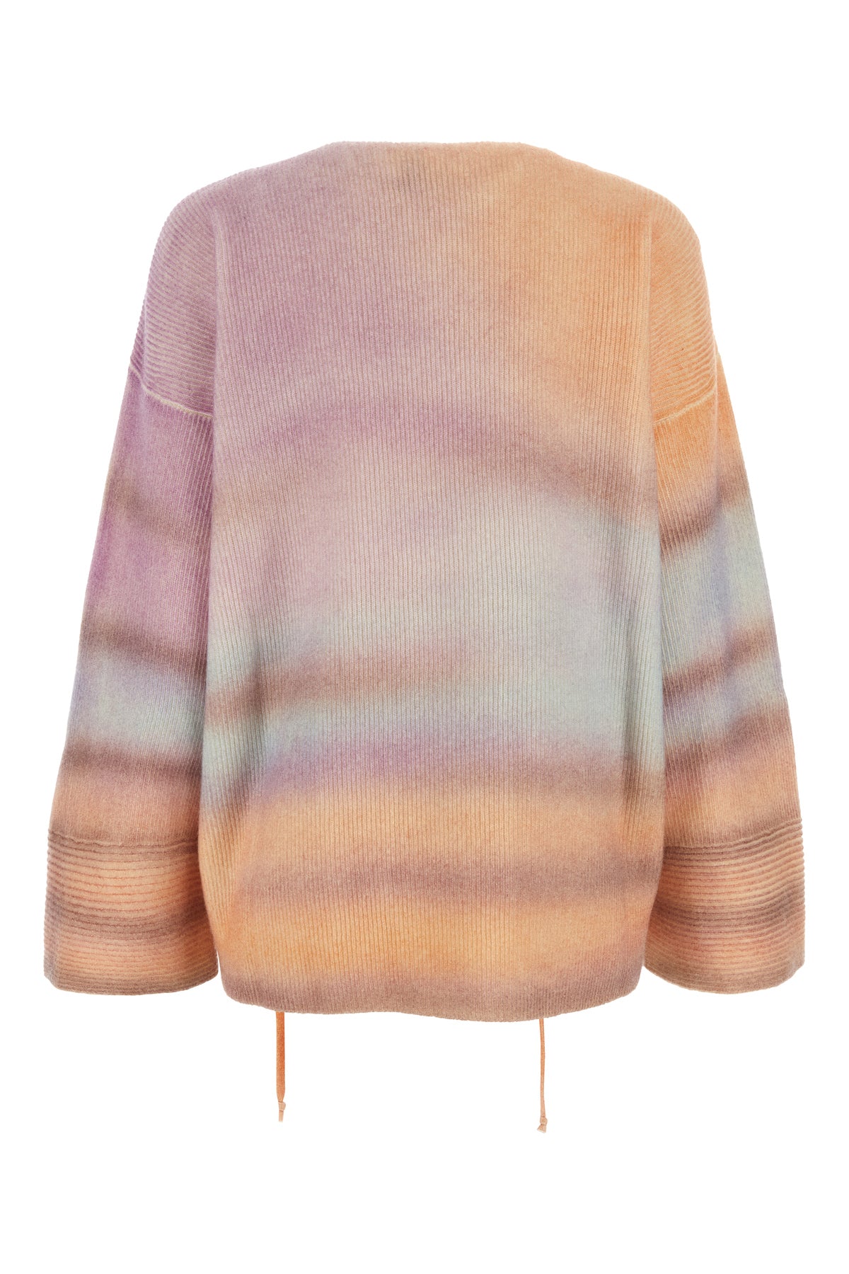 Oversize sweater realized in pure cashmere characterized by Moonlight print on the entire surface enriched by laces to tie on the deep V neckline.