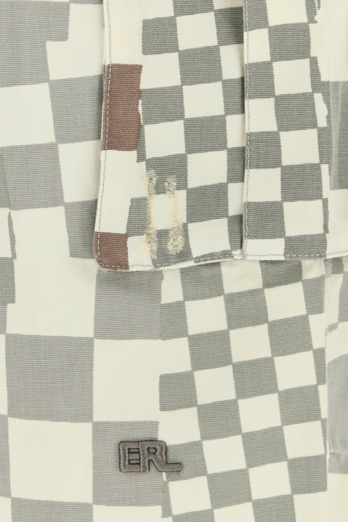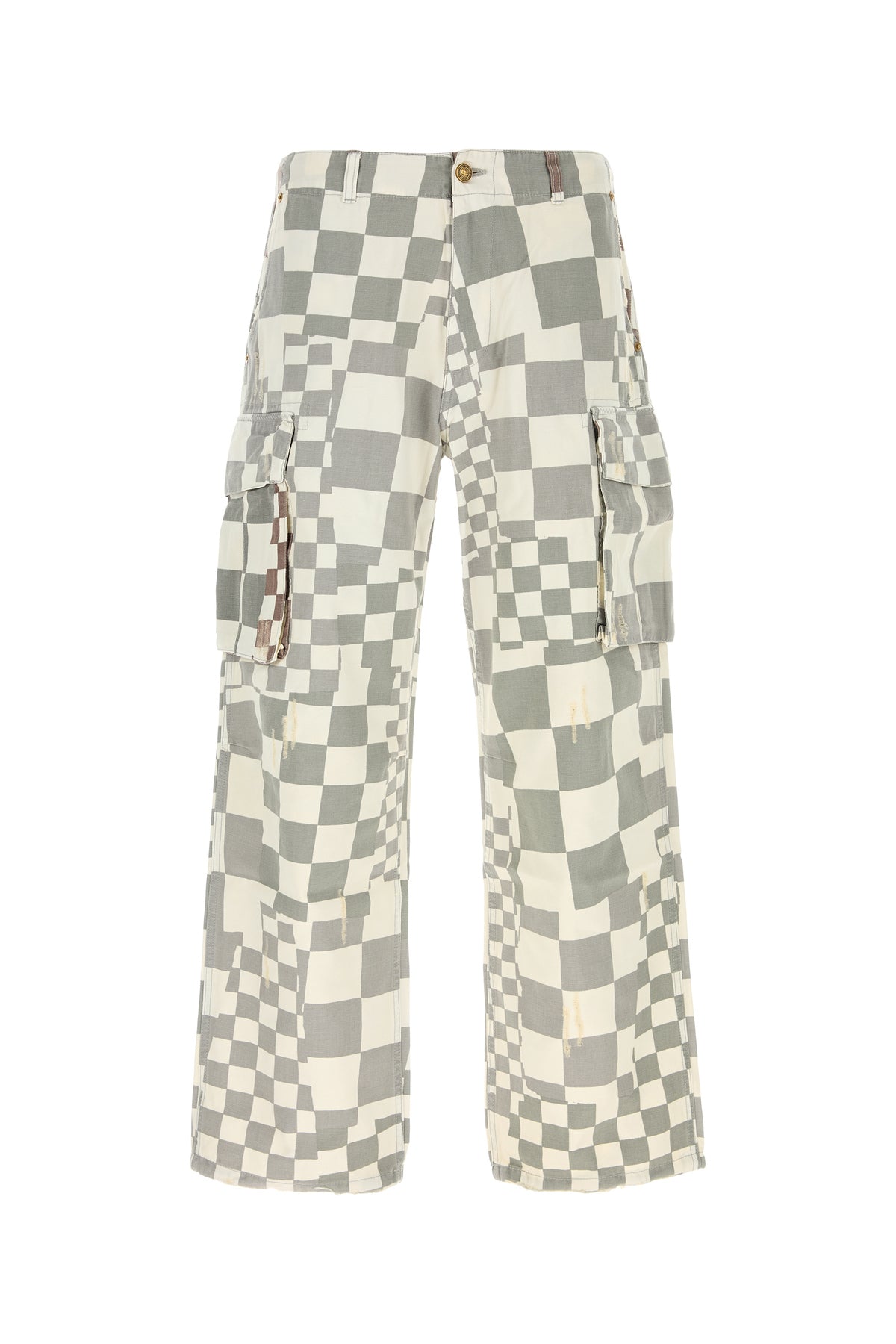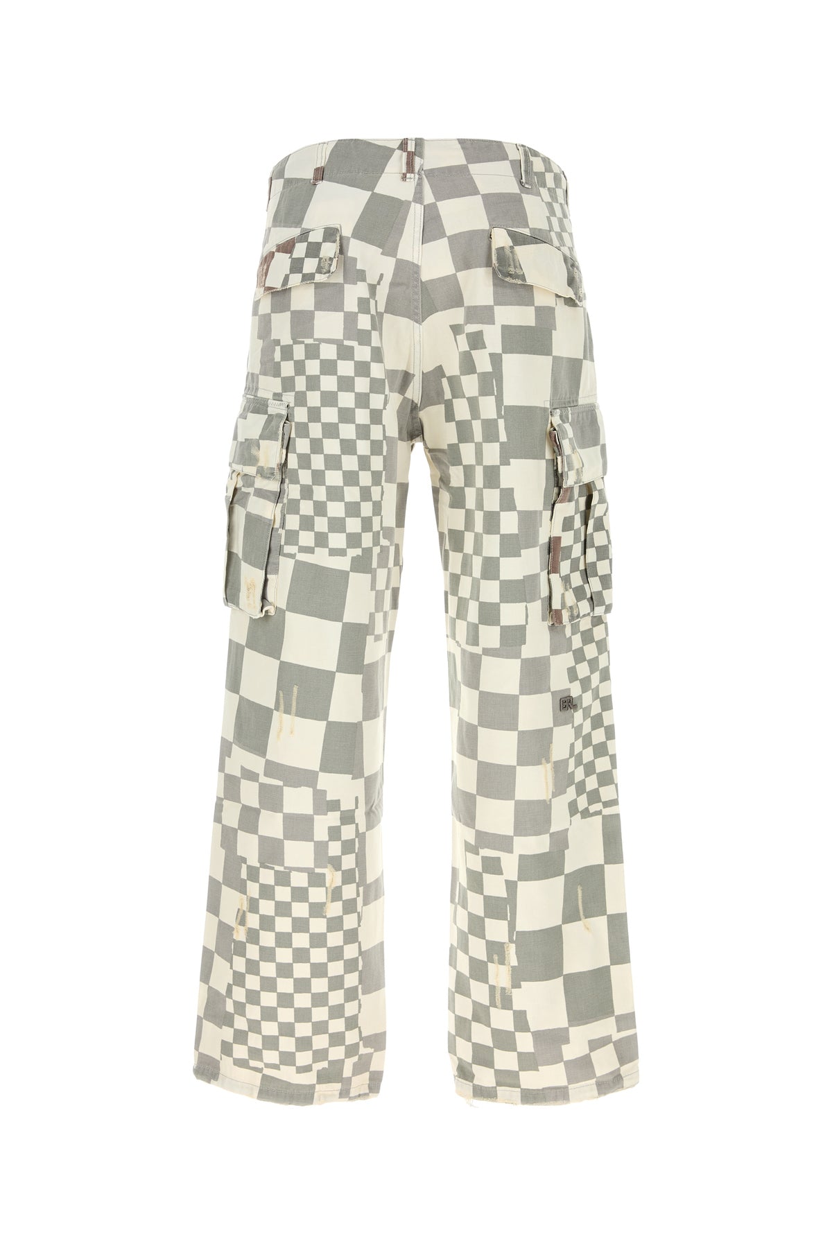 Cargo jeans realized in slightly distressed pure cotton denim characterized by checkered print on the entire surface.