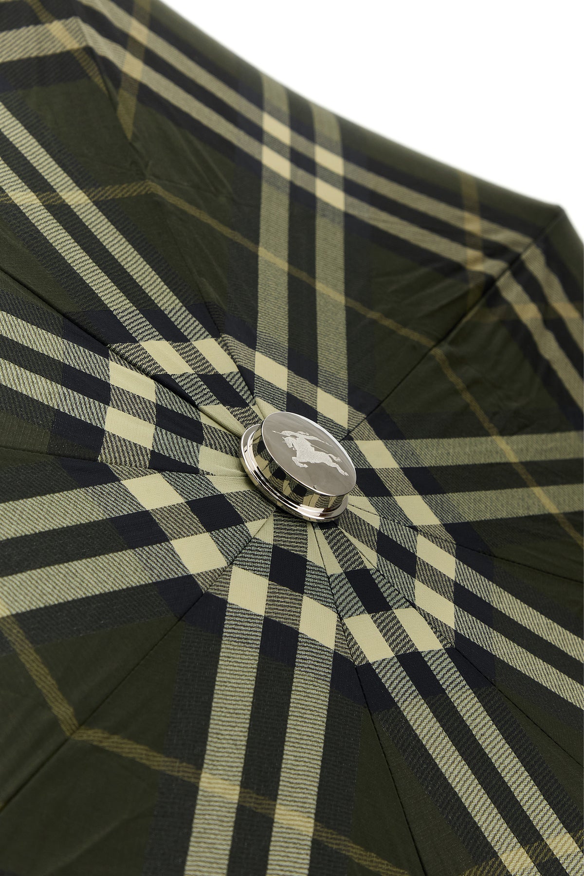 Umbrella realized in polyester and cotton characterized by Check print on the entire surface.