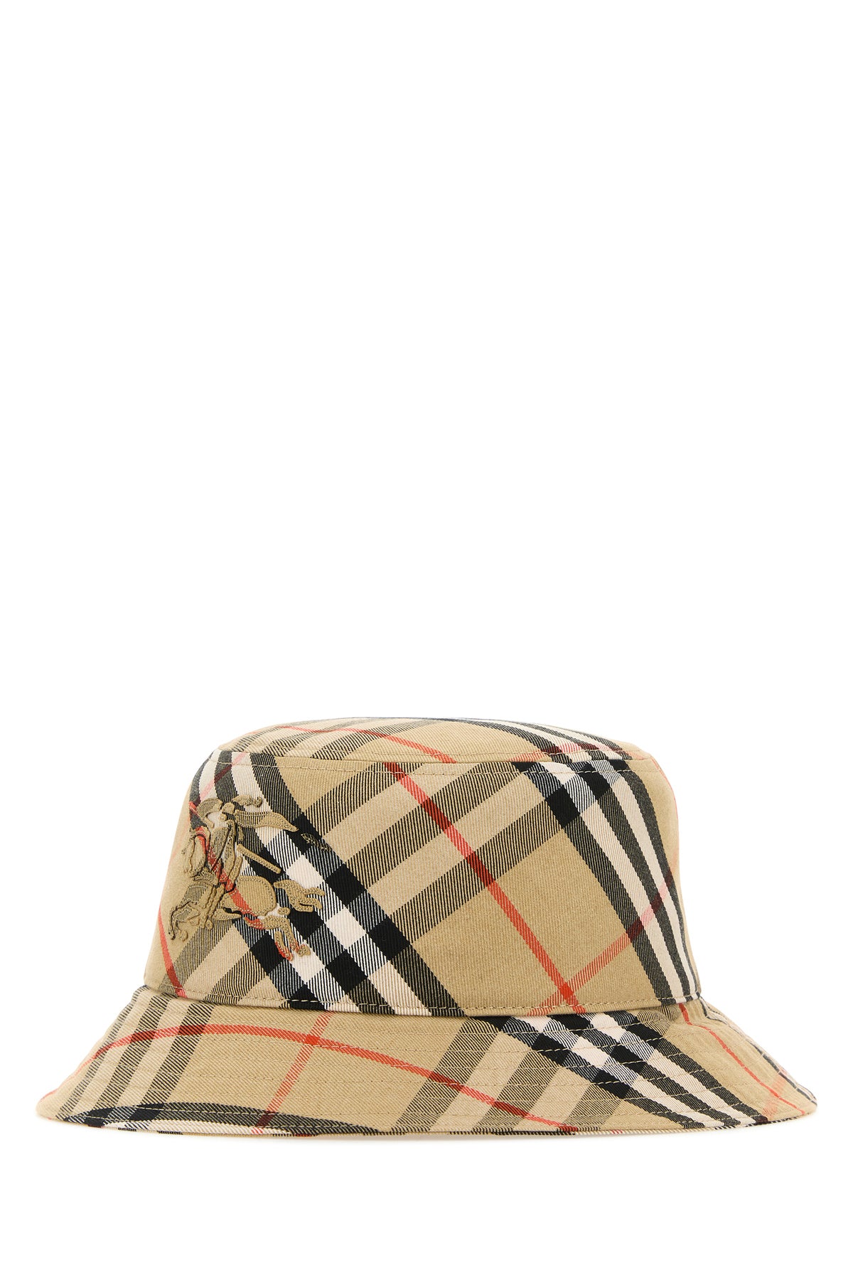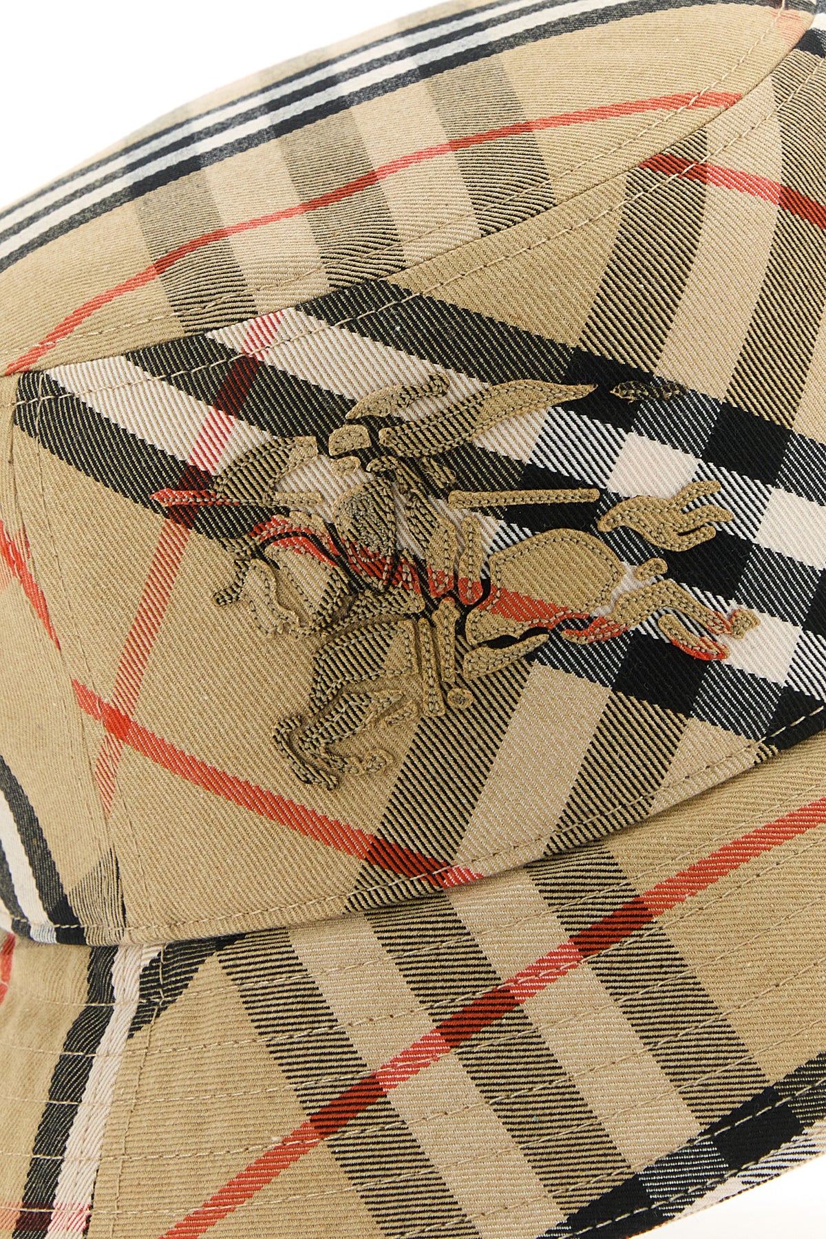 Bucket hat realized in polyester and cotton characterized by Burberry Check print on the entire surface enriched by Equestrian Knight patch on the side.