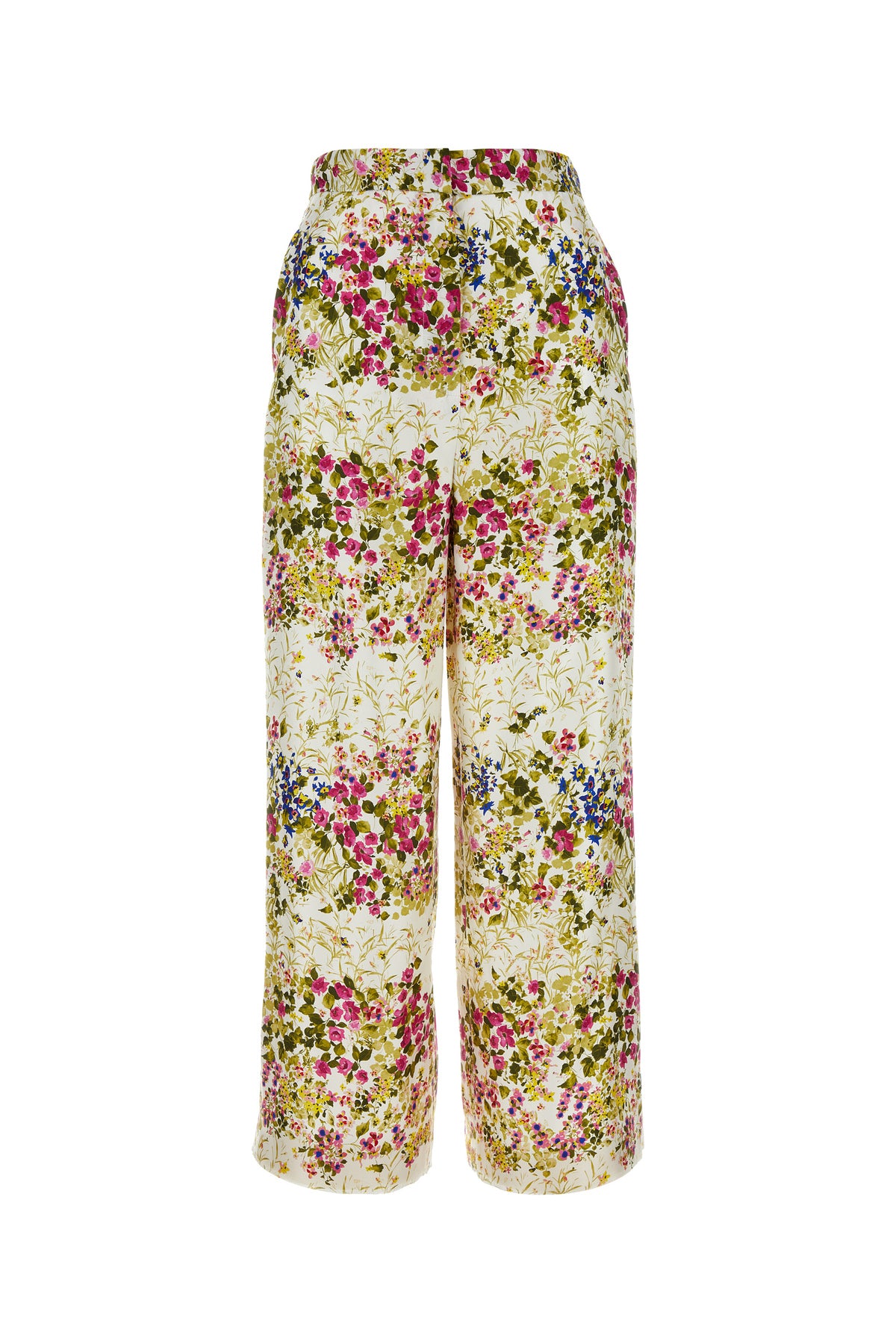 Pant realized in pure silk satin characterized by floral print on the entire surface.