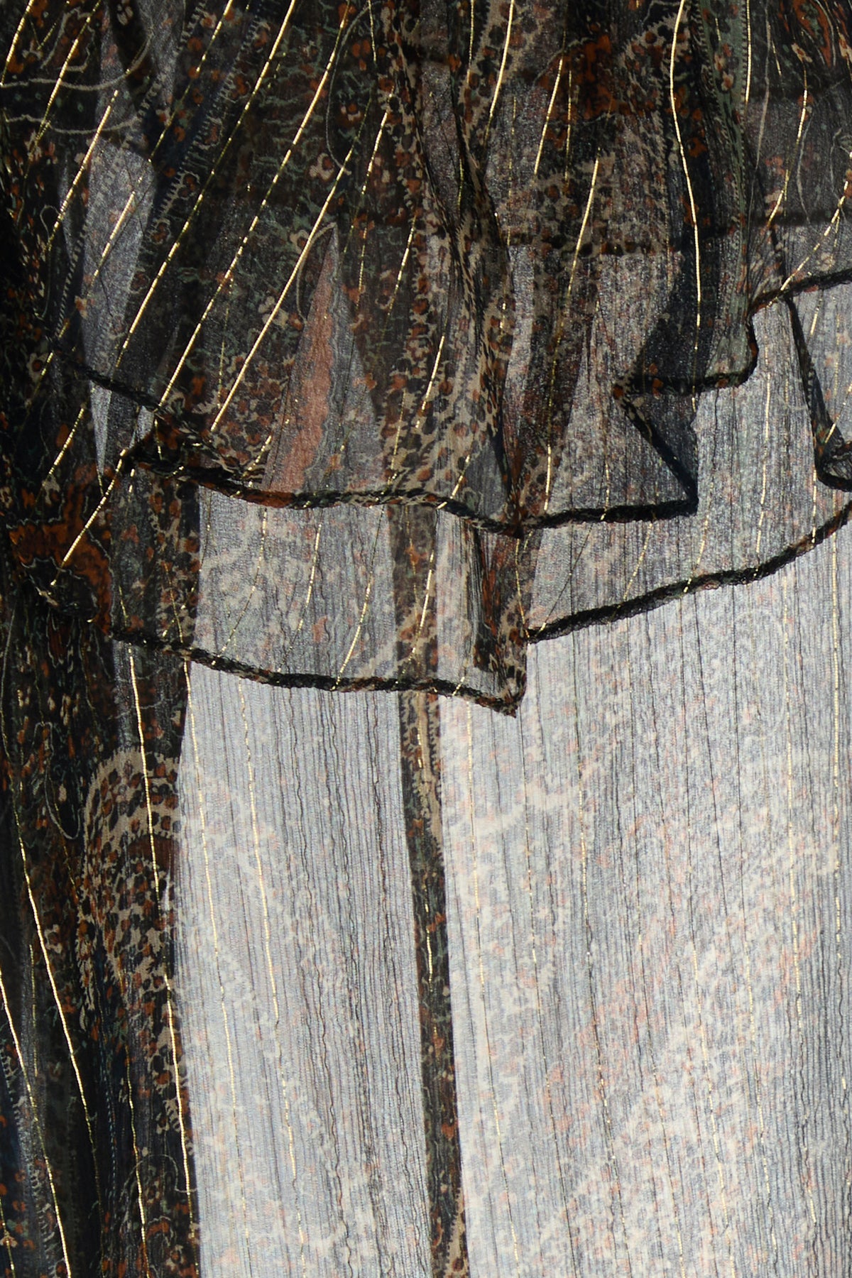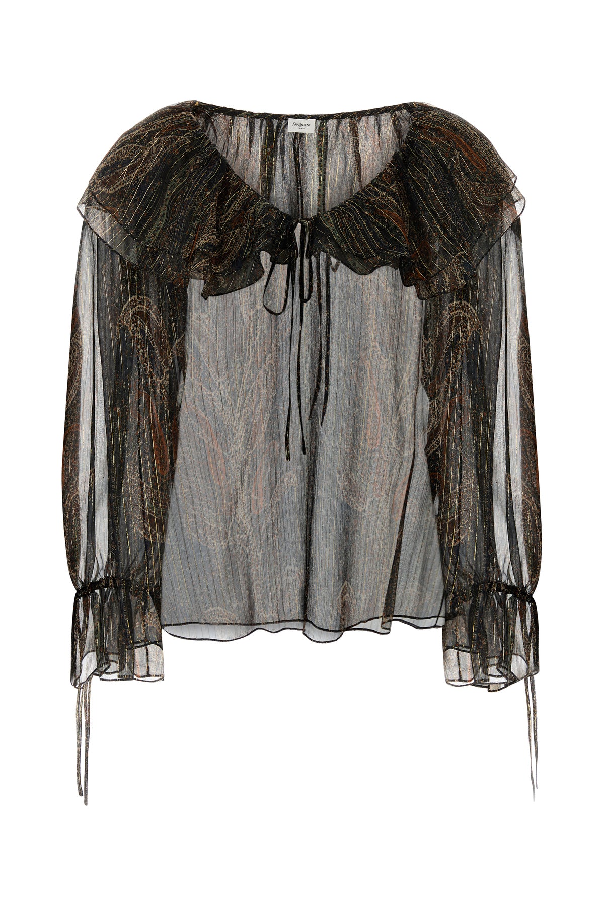 Semi-transparent blouse realized in silk with lurex threads characterized by paisley motif print on the entire surface.