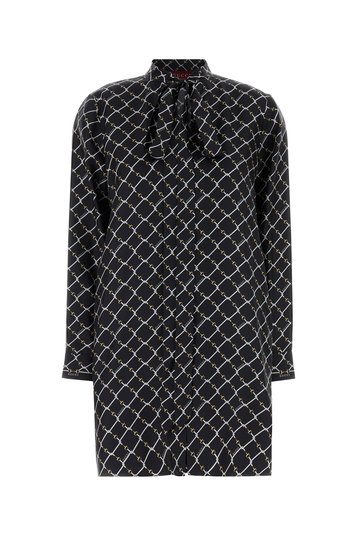 Mini dress realized in pure silk characterized by Gucci Horsebit print on the entire surface.