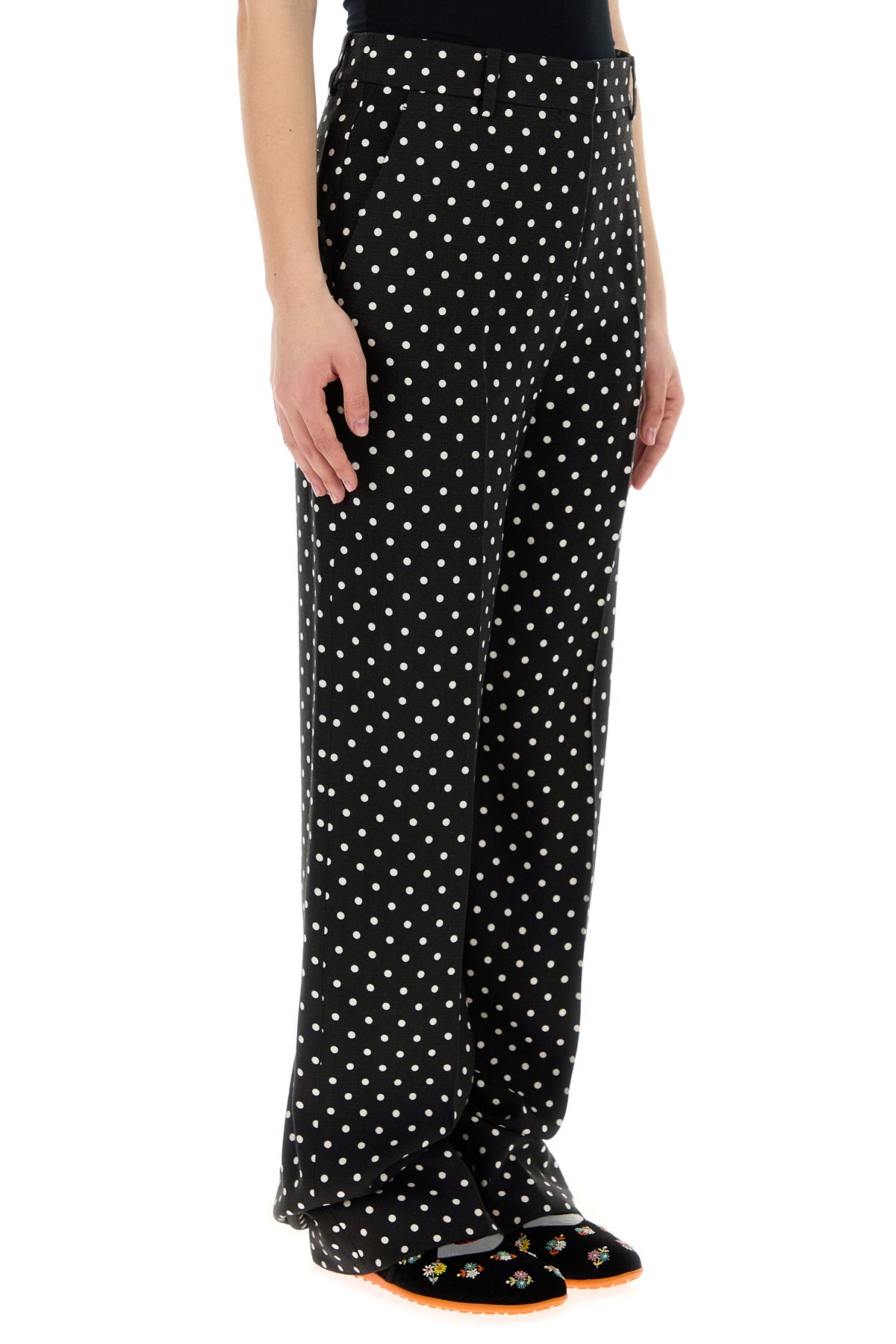 Pant realized in viscose supergran characterized by Plusdepois print on the entire surface.