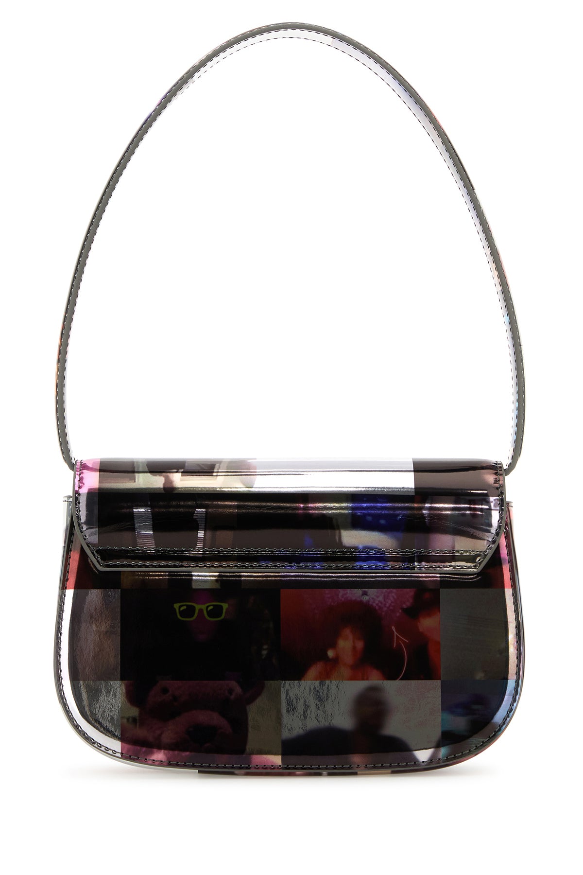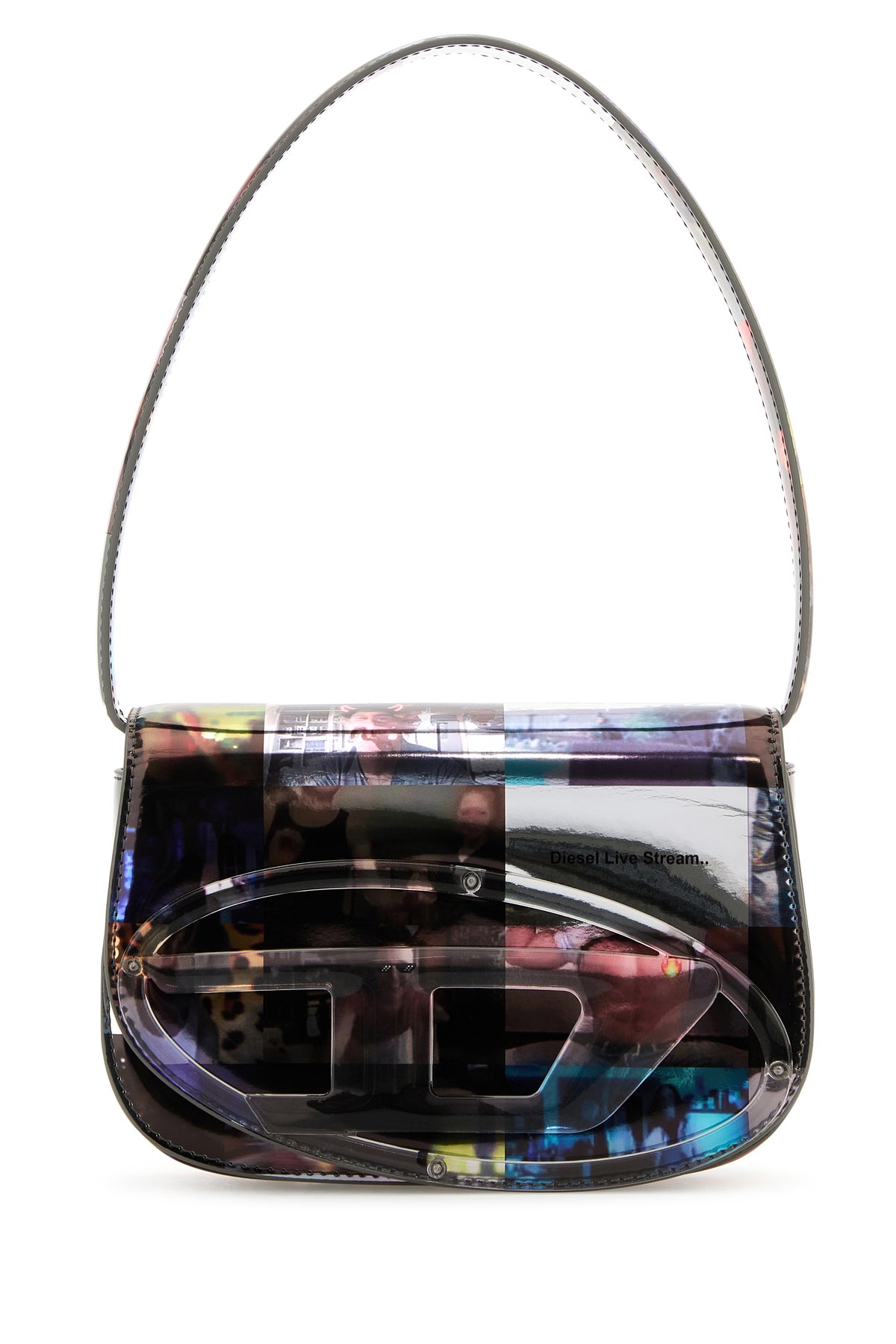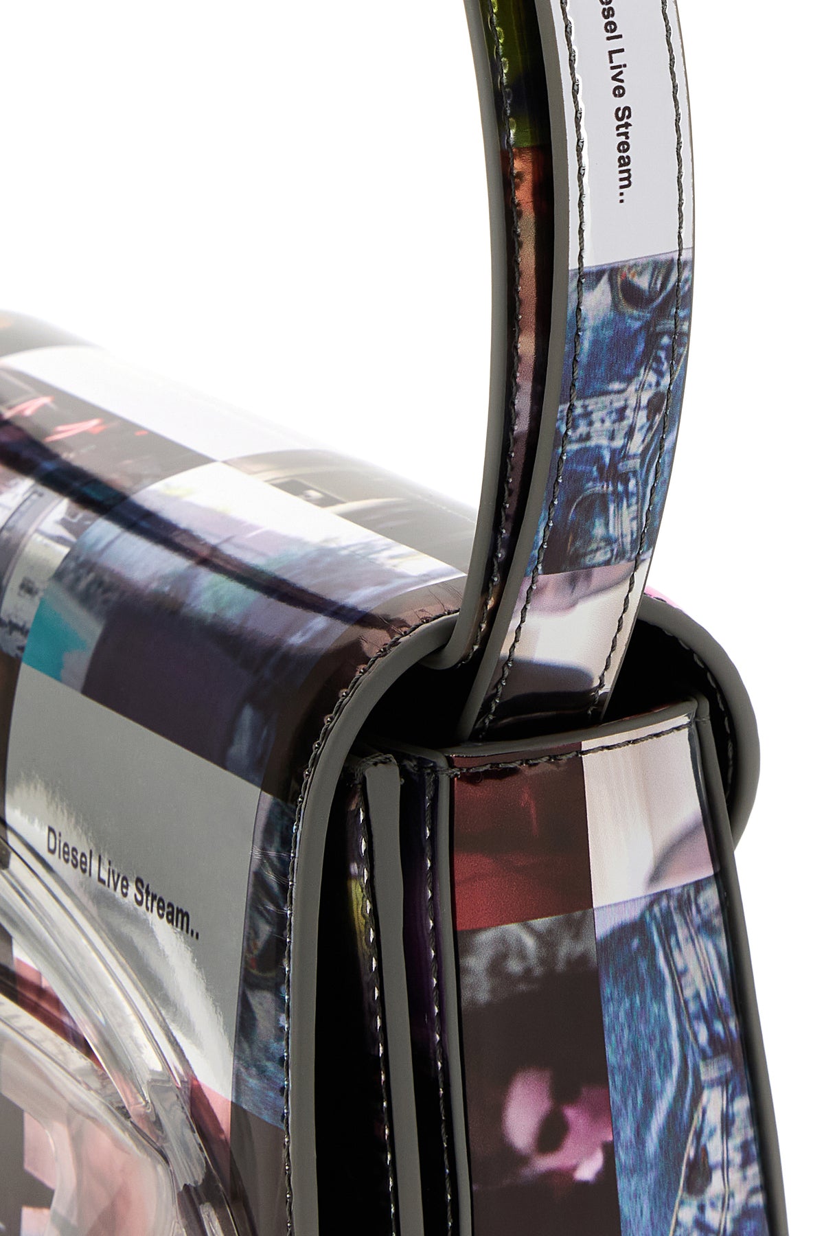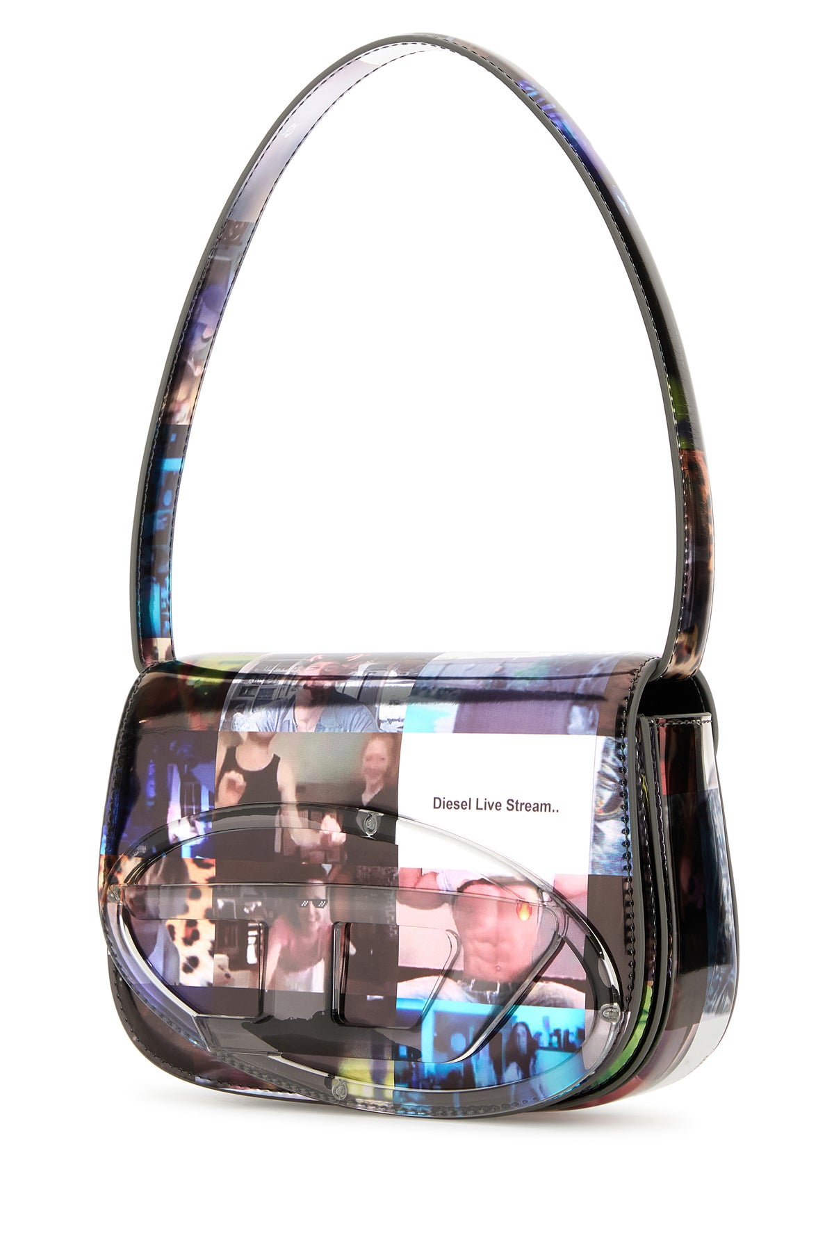 Shoulder bag realized in polished finish smooth synthetic leather characterized by Livestream print on the entire surface enriched by metal D detail at the front.