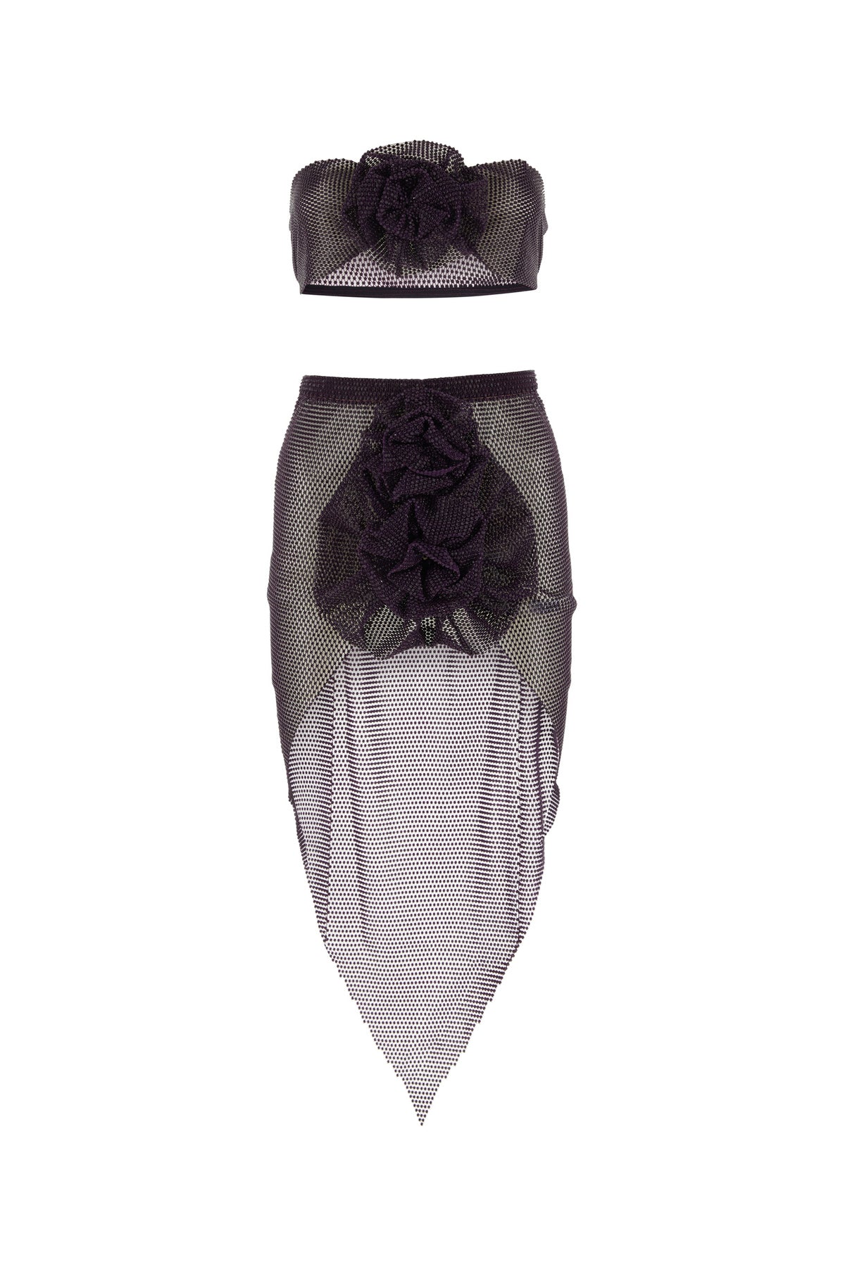 Set composed of top and skirt realized in chain metal with rhinestones.