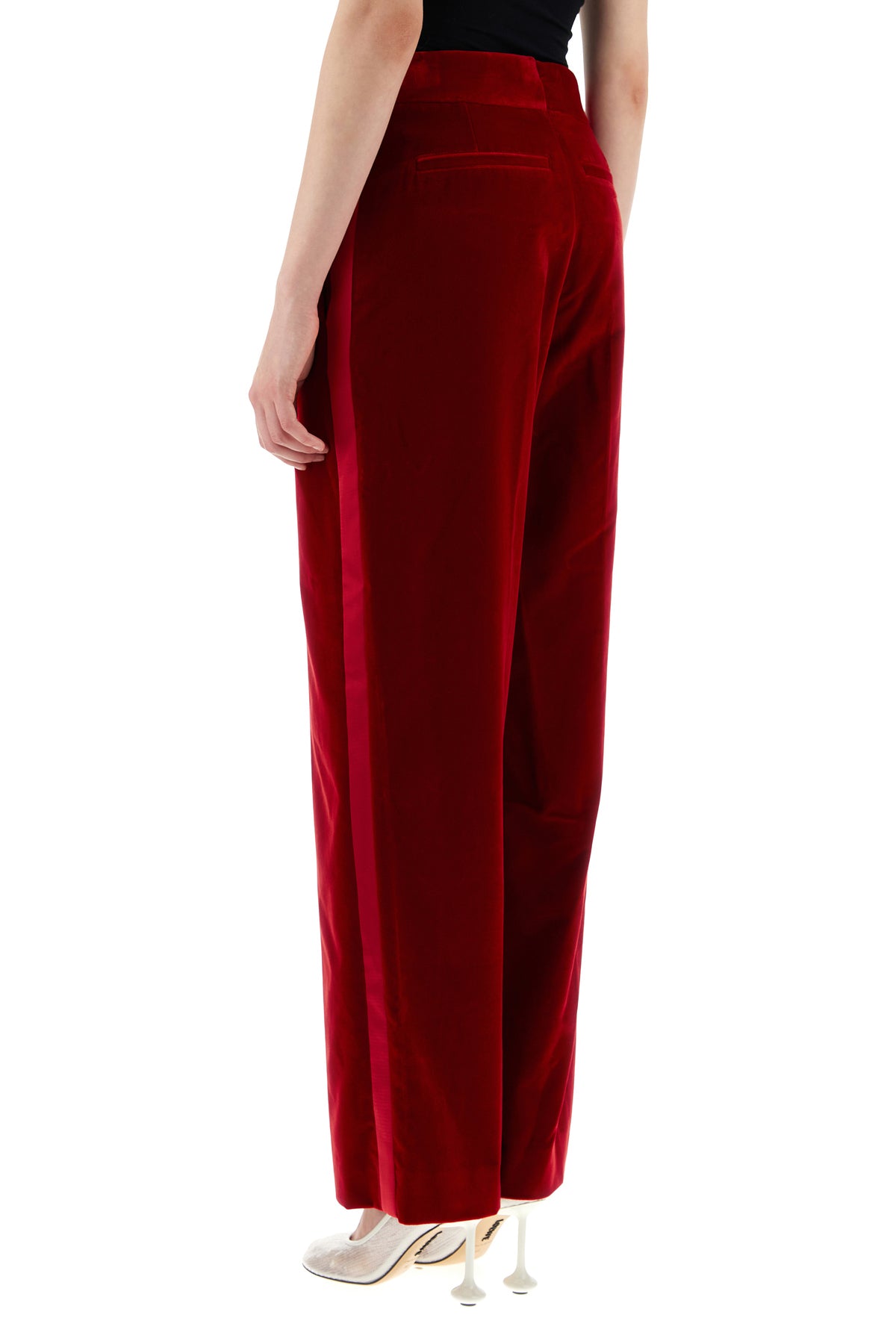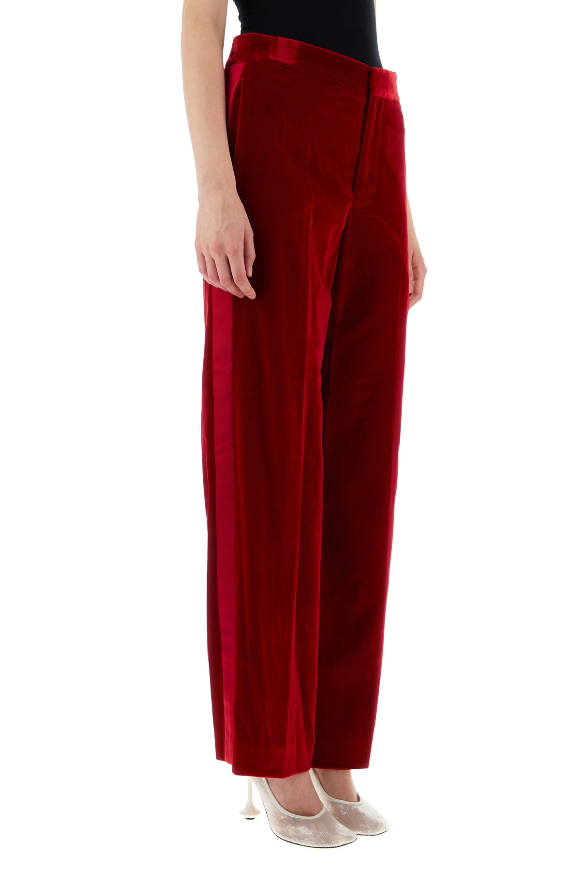 Pant realized in pure cotton velvet with tonal satin inserts on the sides characterized by central ironed pleat.