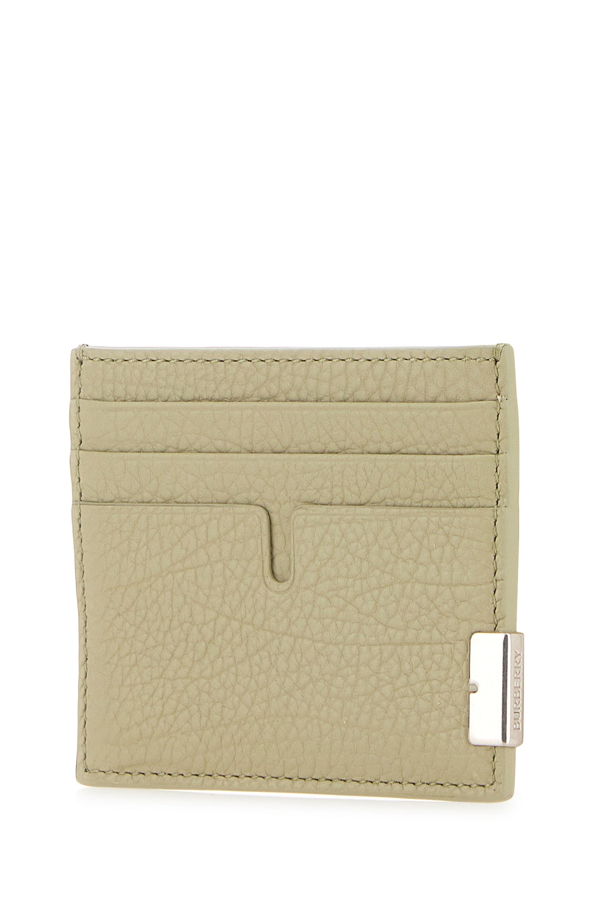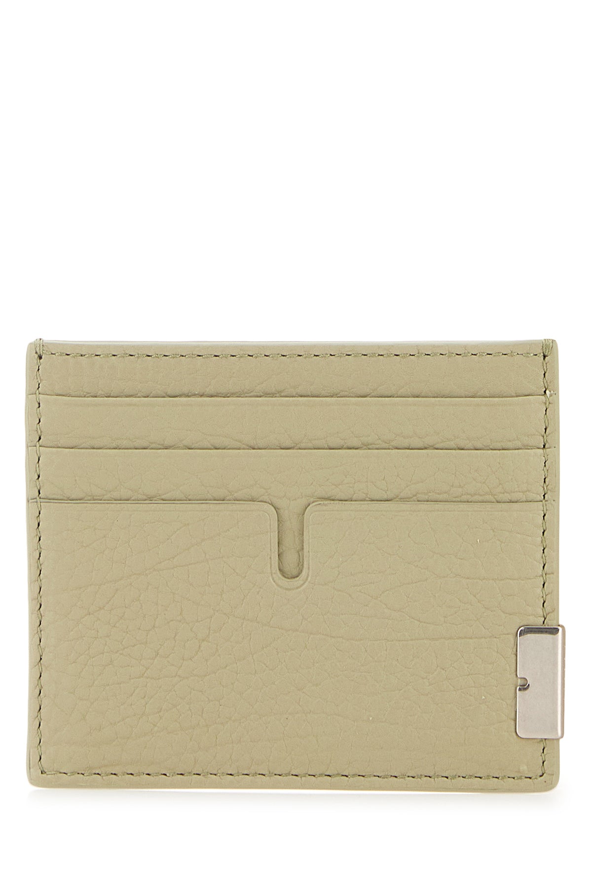 Card holder realized in pebble clan leather enriched by logged metal plate on the side.