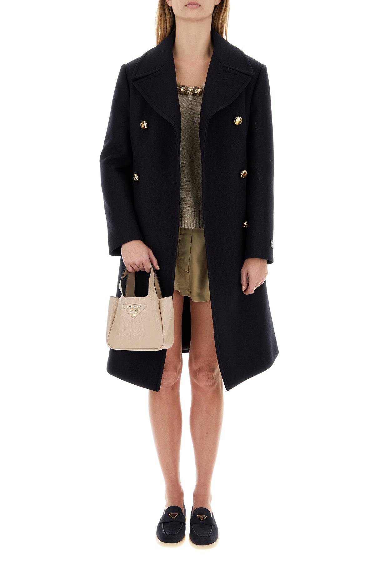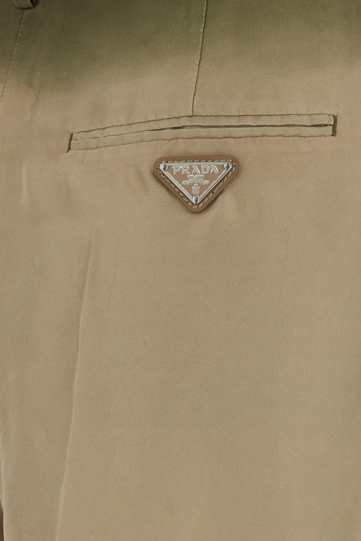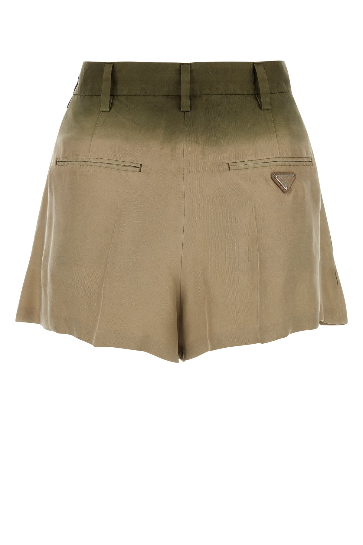 Shorts realized in pure silk characterized by peculiar shading at the top enriched by iconic logoed metal triangle at the back.