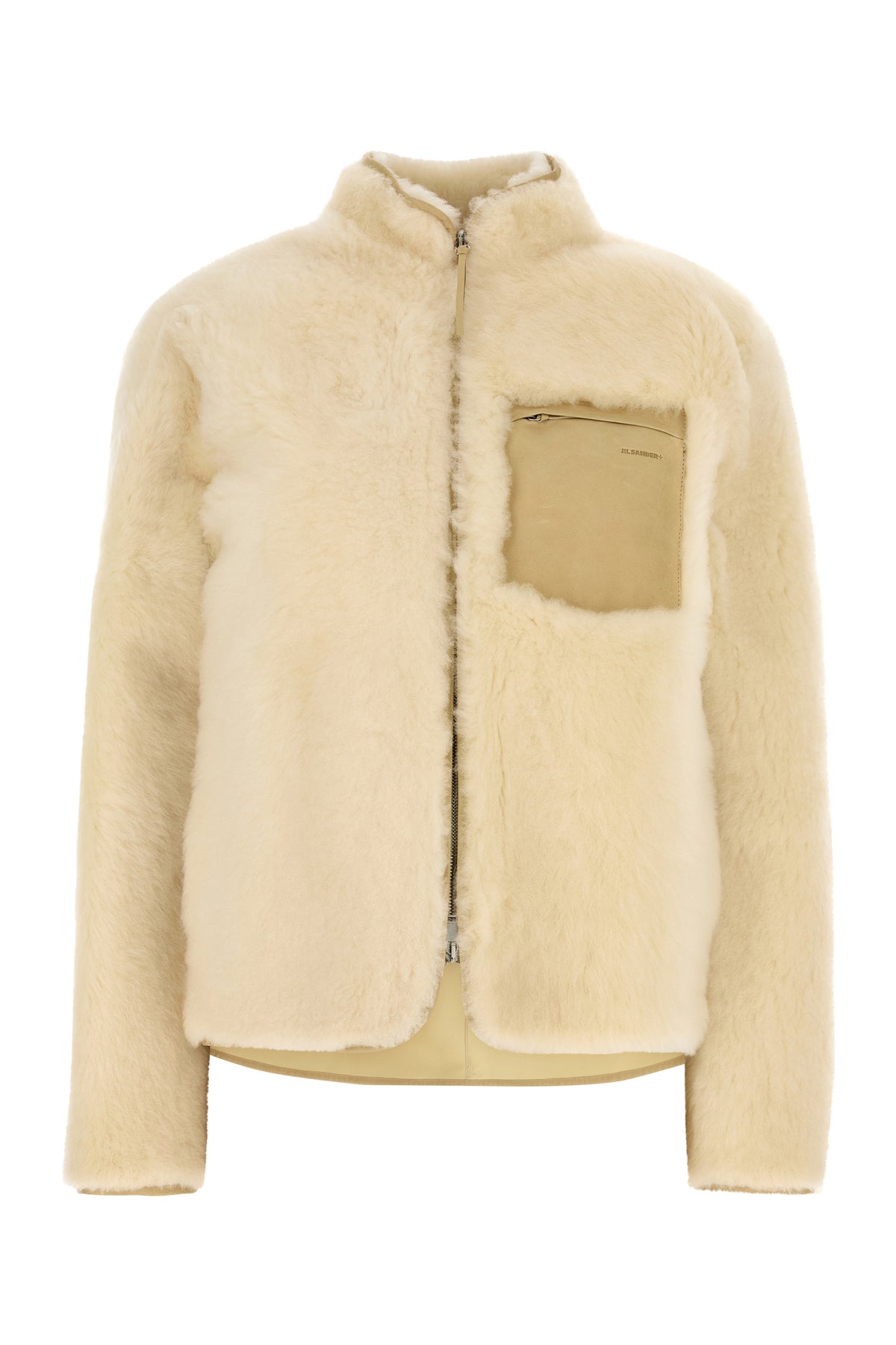 Jacket realized in shearling characterized by embossed logo on the chest.
