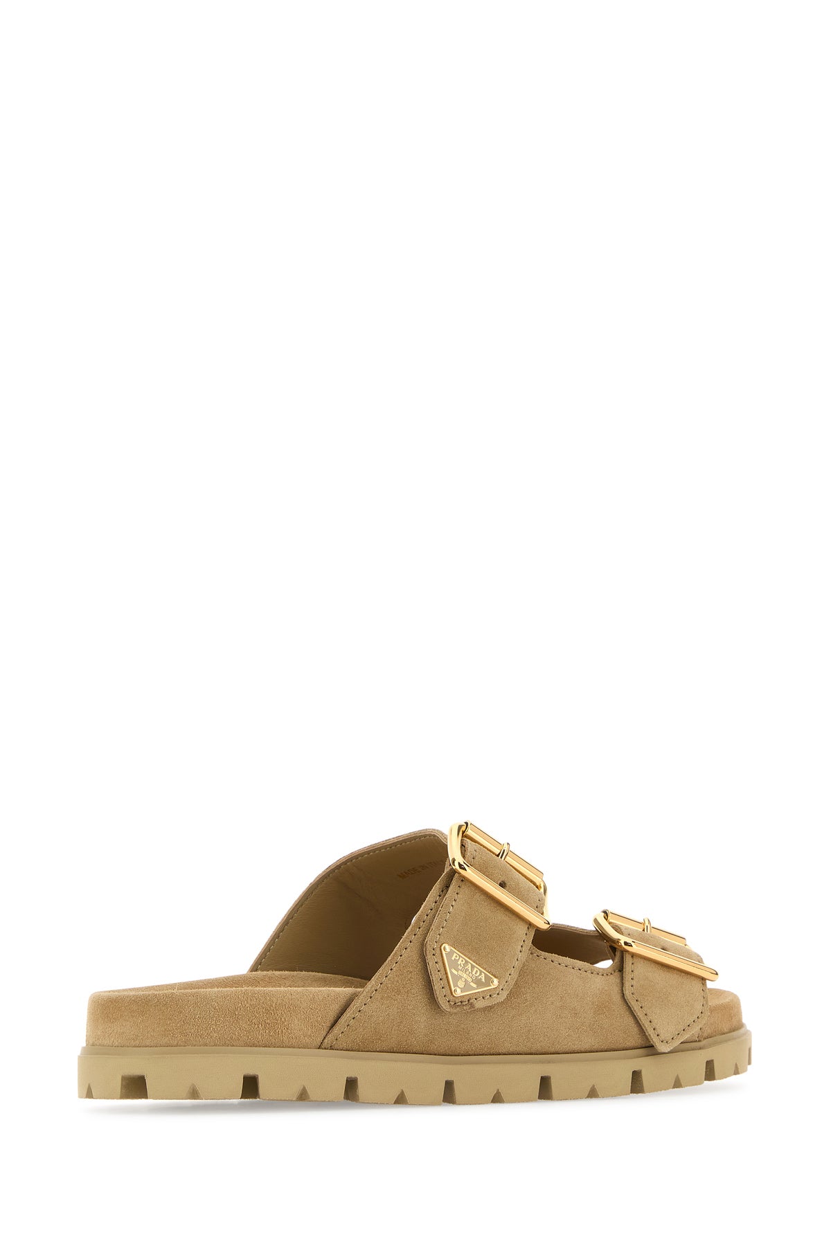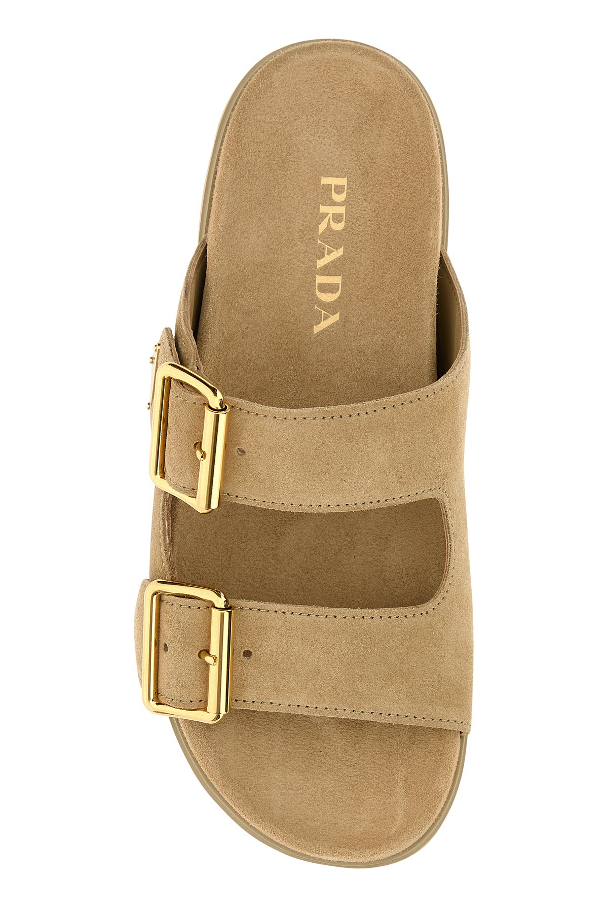 Slippers realized in suede enriched by two adjustable straps on the instep.