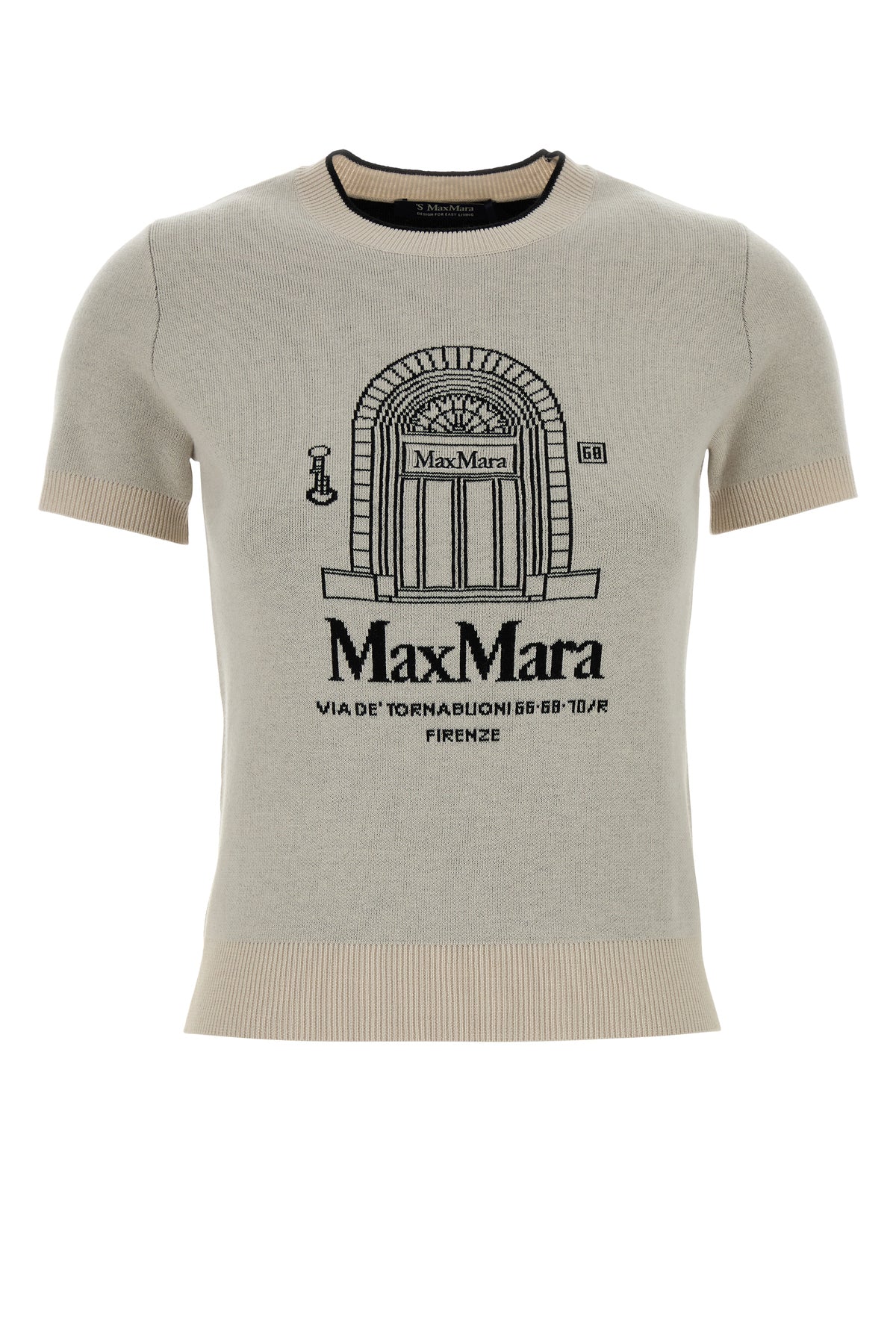 Short-sleeve sweater realized in stretch wool blend characterized by logoed print at the front.
