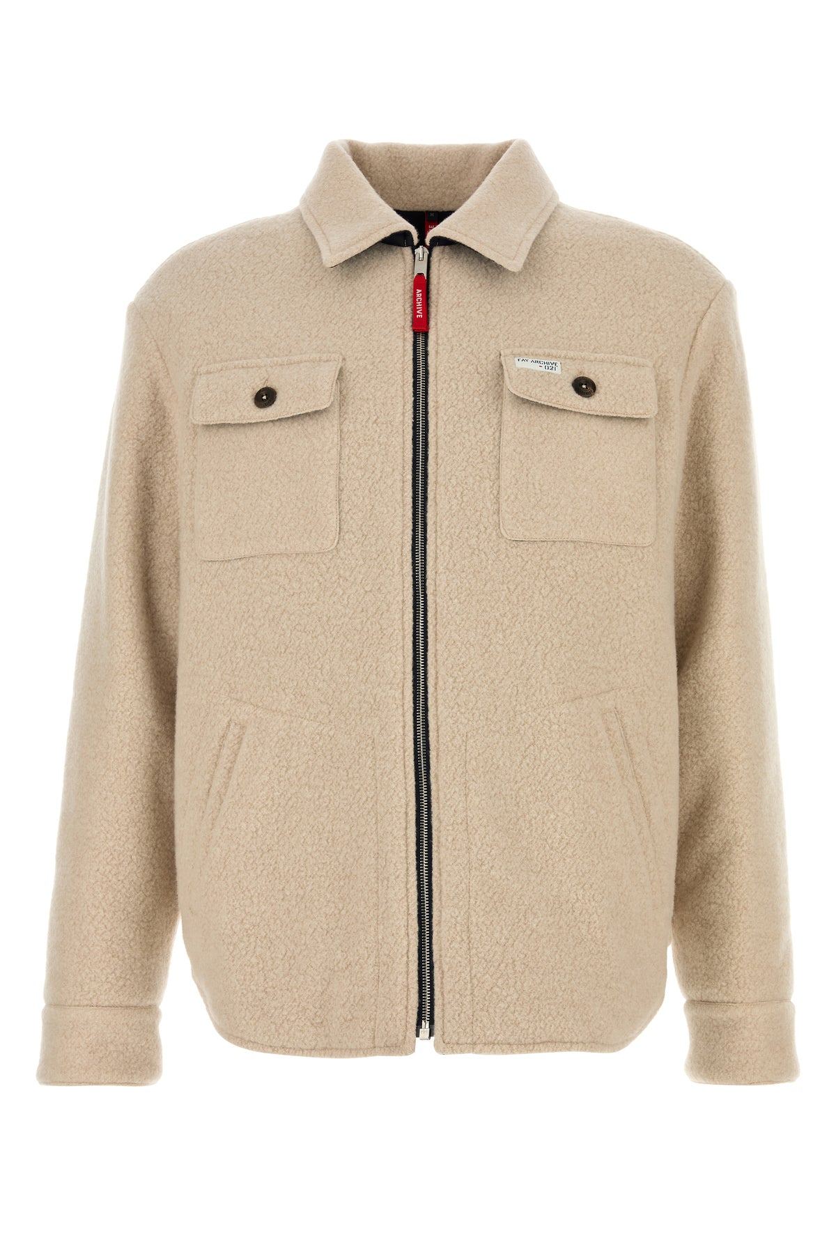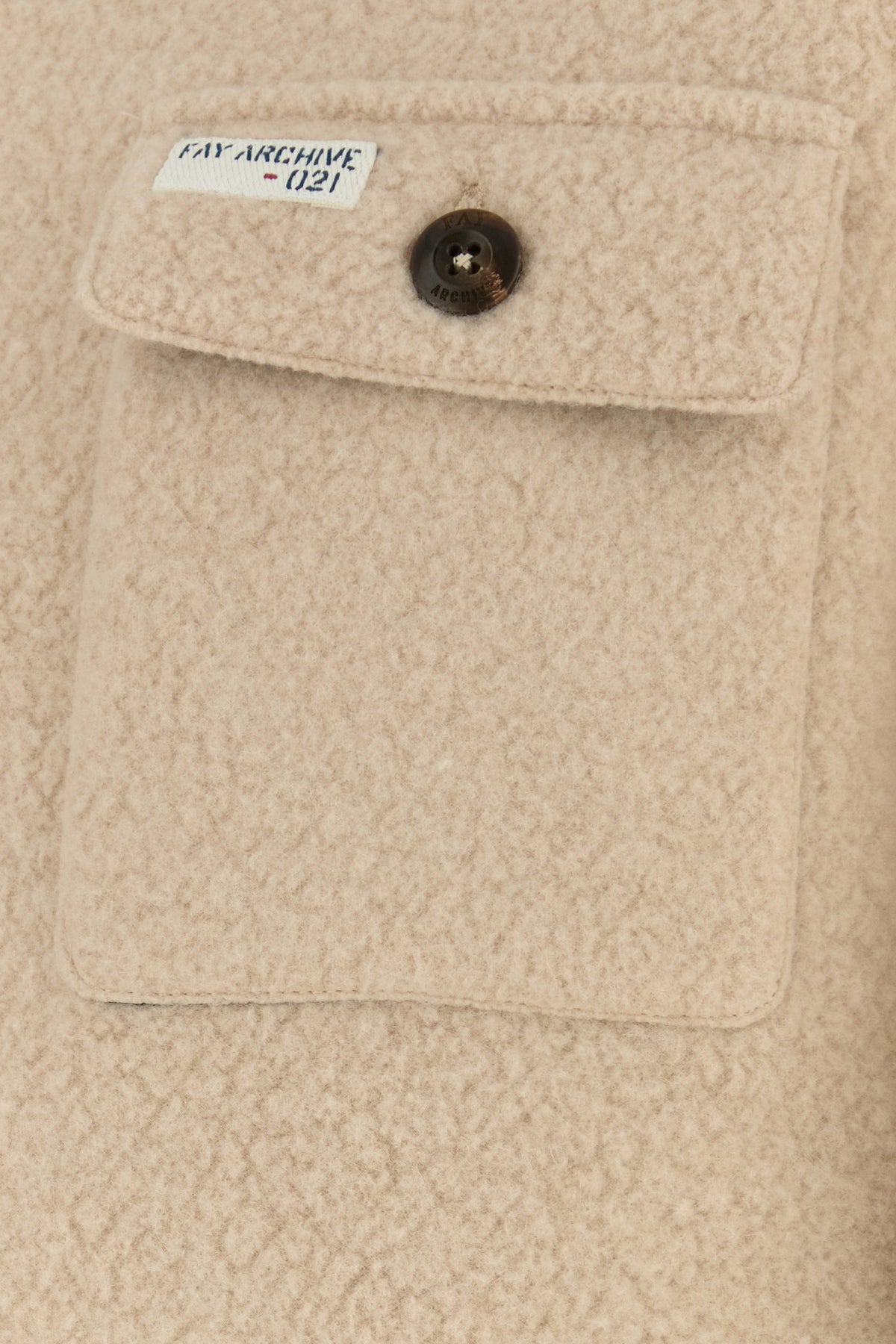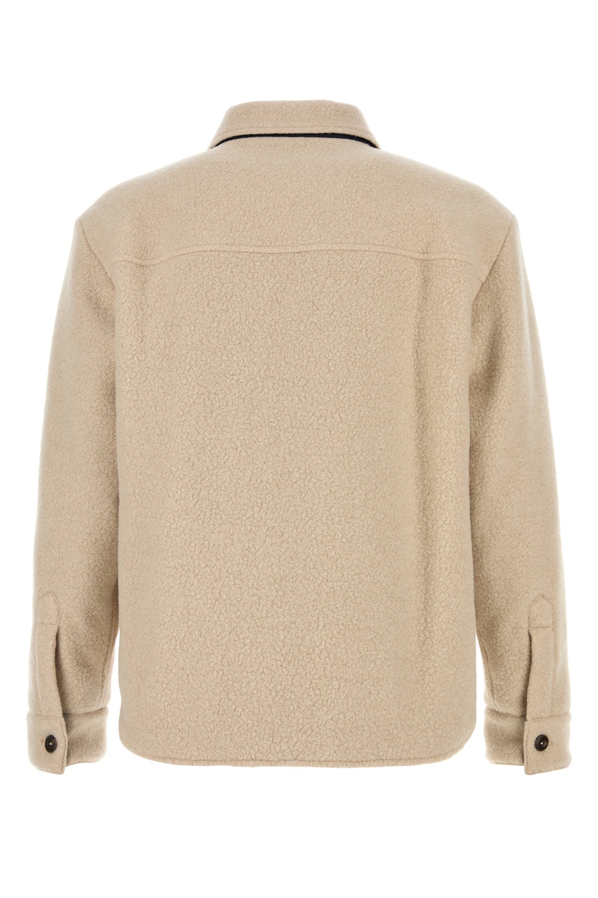 Jacket realized in wool blend enriched by contrasting logoed label on the chest.