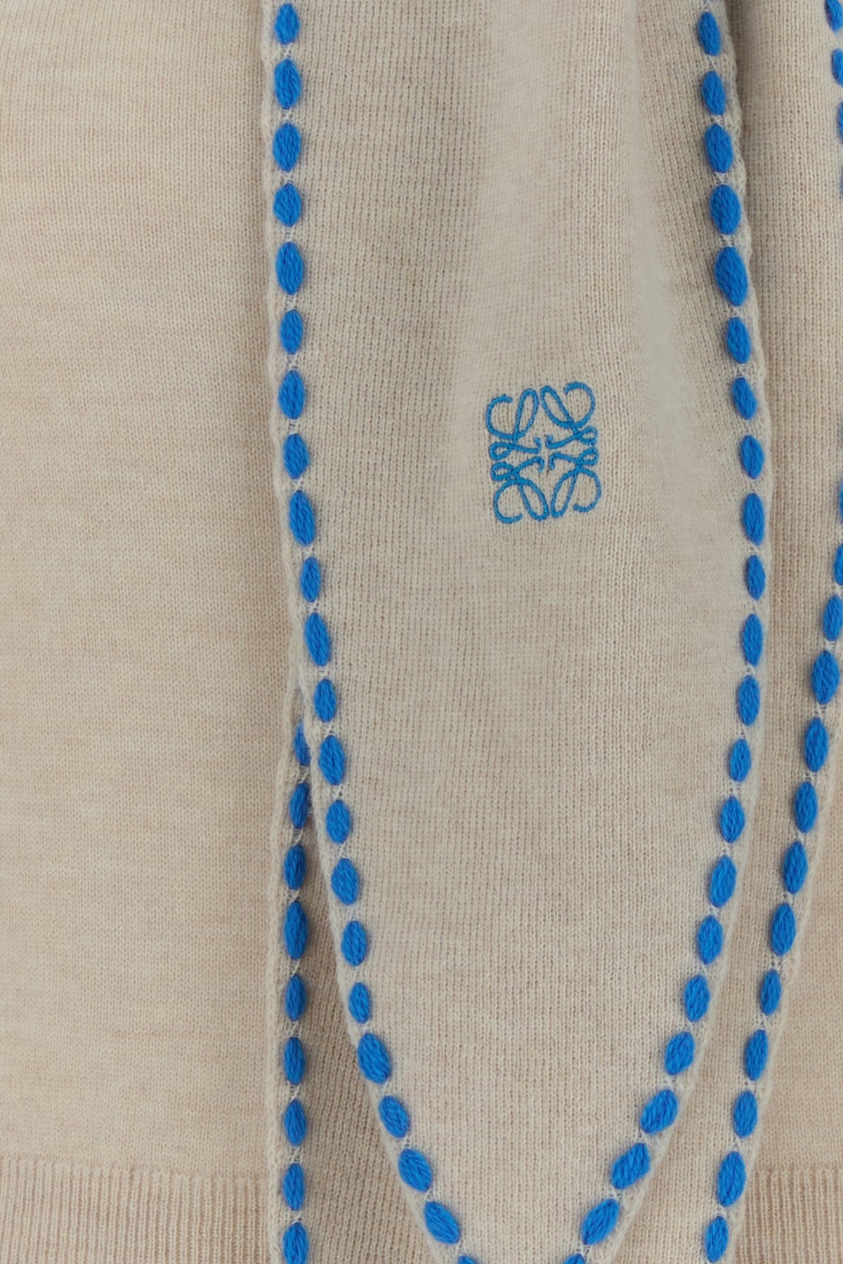 Sweater realized in wool blend characterized by Anagram embroidery on the built-in scarf.