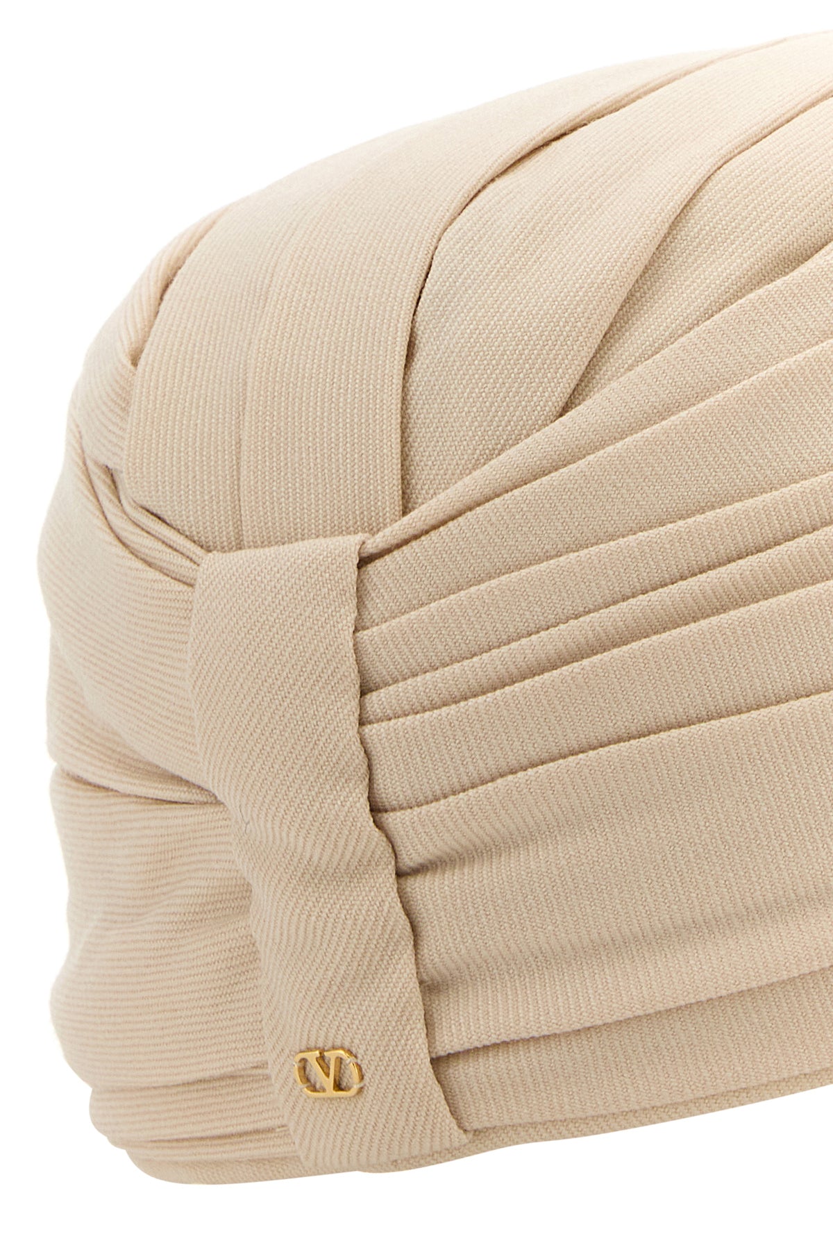 Rigid turban realized in pure virgin wool enriched by metal VLogo at the back.