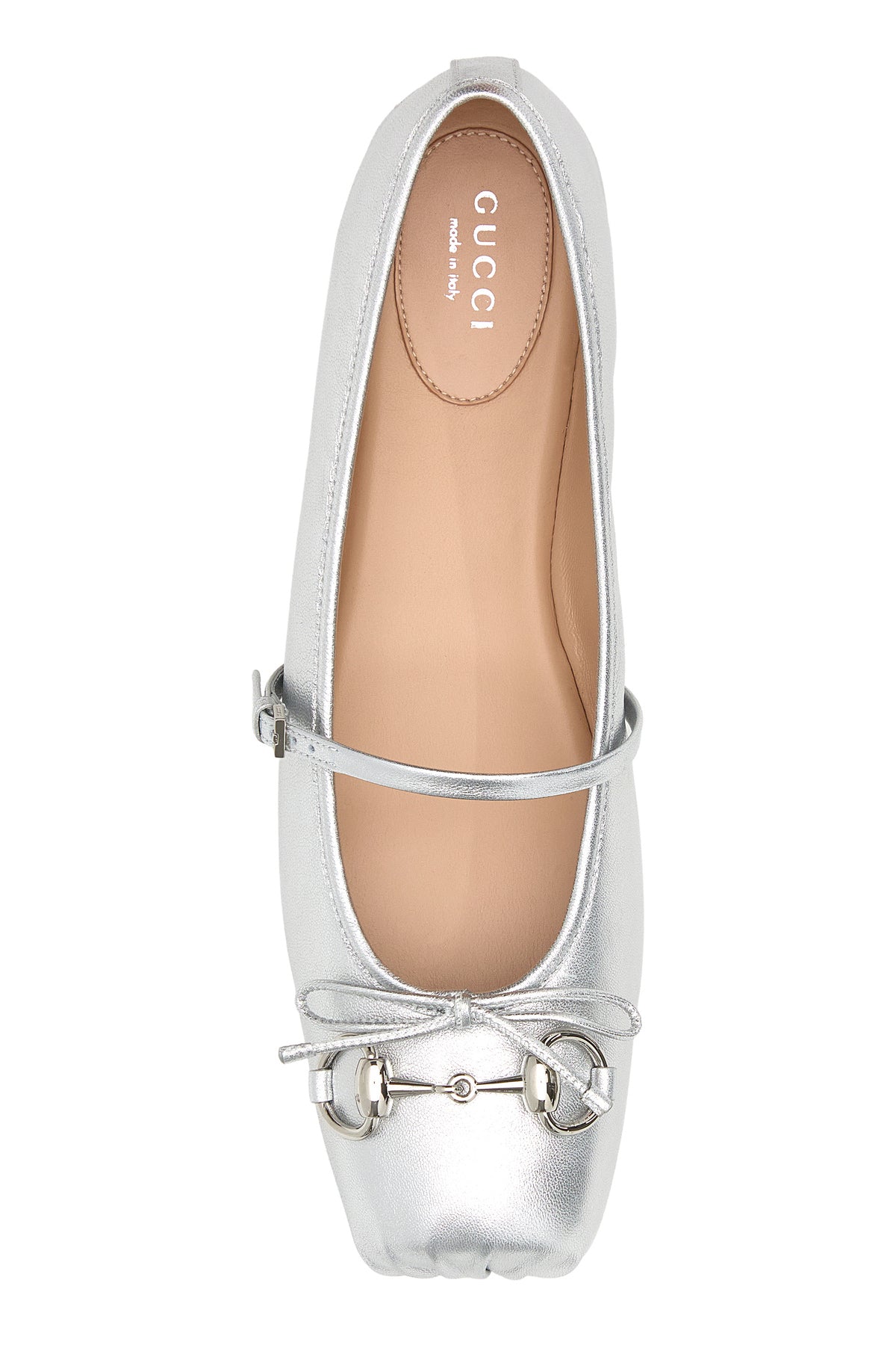 Ballerinas realized in laminated leather enriched by Horsebit metal detail and decorative bow on the instep.
