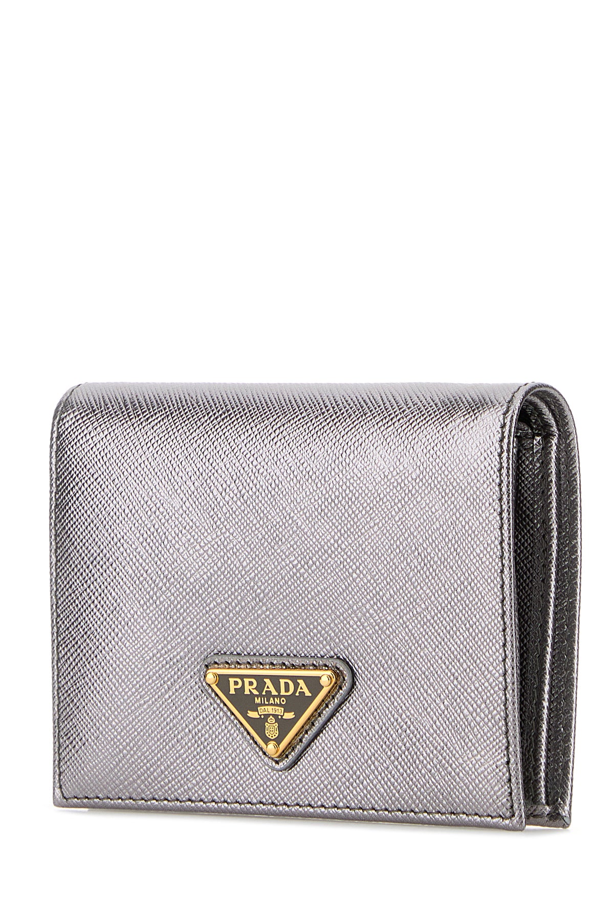 Wallet realized in laminated Saffiano leather enriched by iconic logoed triangle at the front.