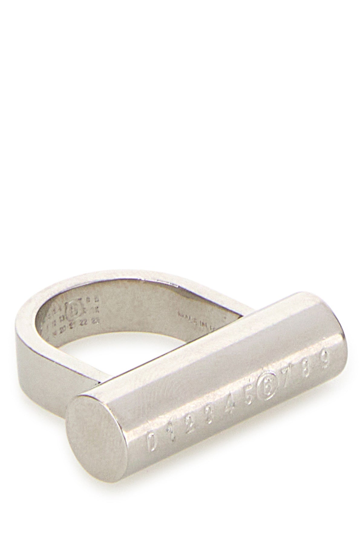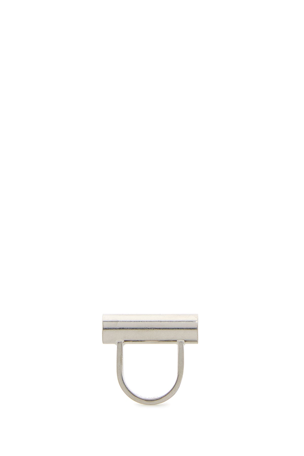 Ring realized in silver-tone pleated metal characterized by embossed logo.