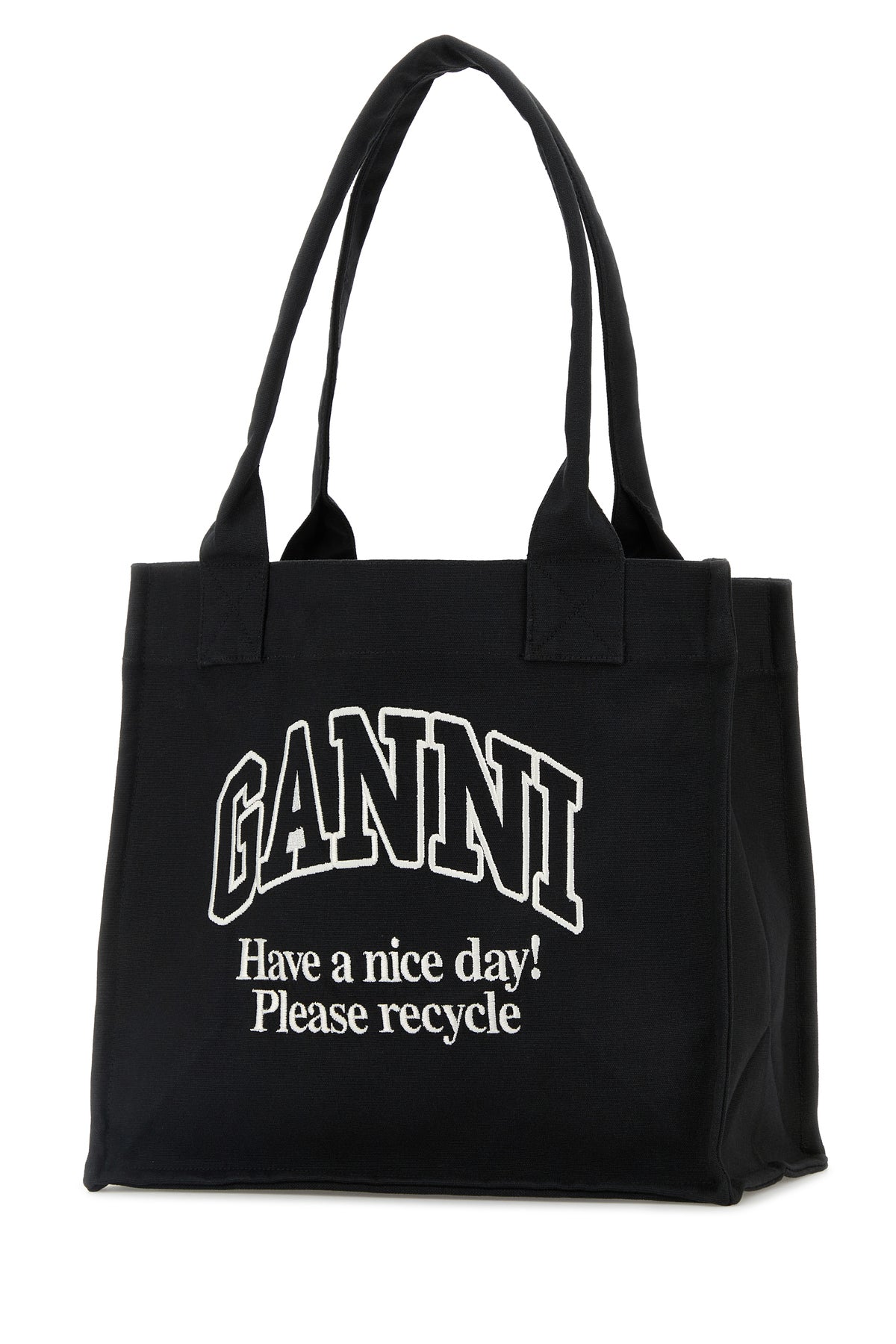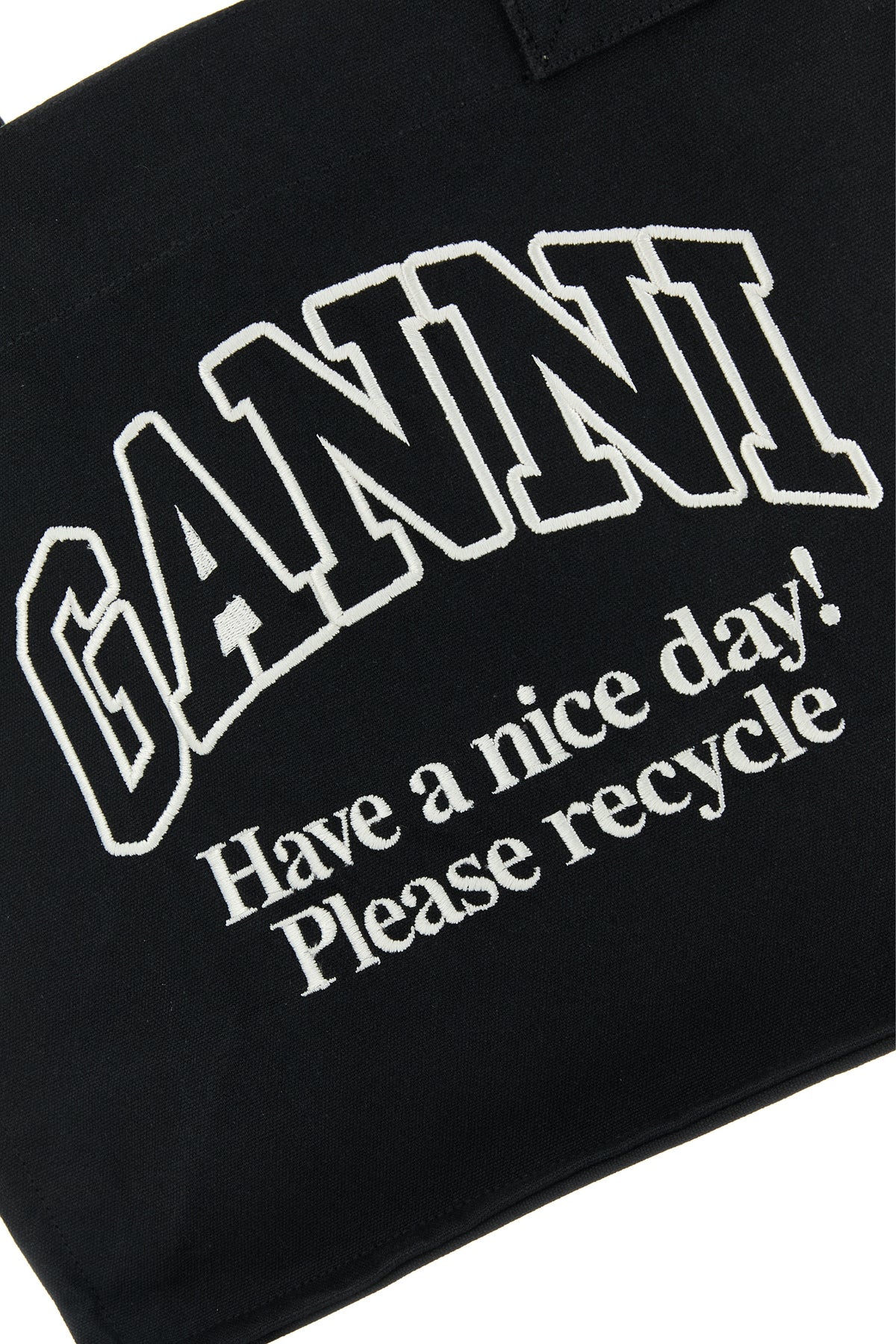 Shopping bag realized in canvas charactered by peculiar logoed embroidery at the front.