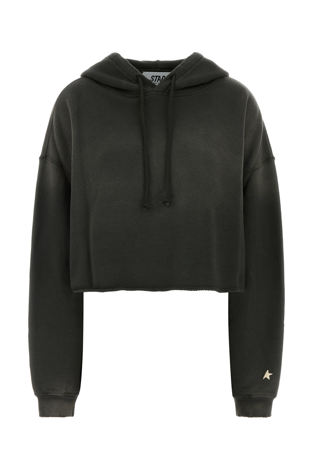 Sweatshirt realized in stonewashed and slightly distressed pure cotton characterized by logoed print on the cuff and at the back enriched by iconic Star metal details at the back.