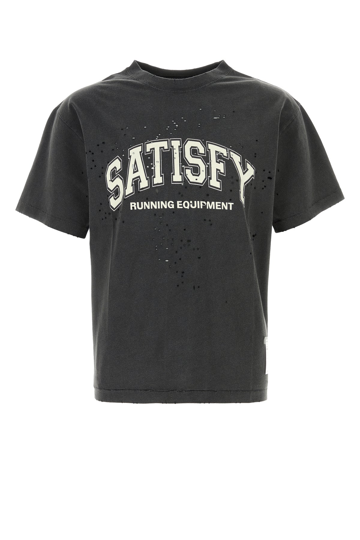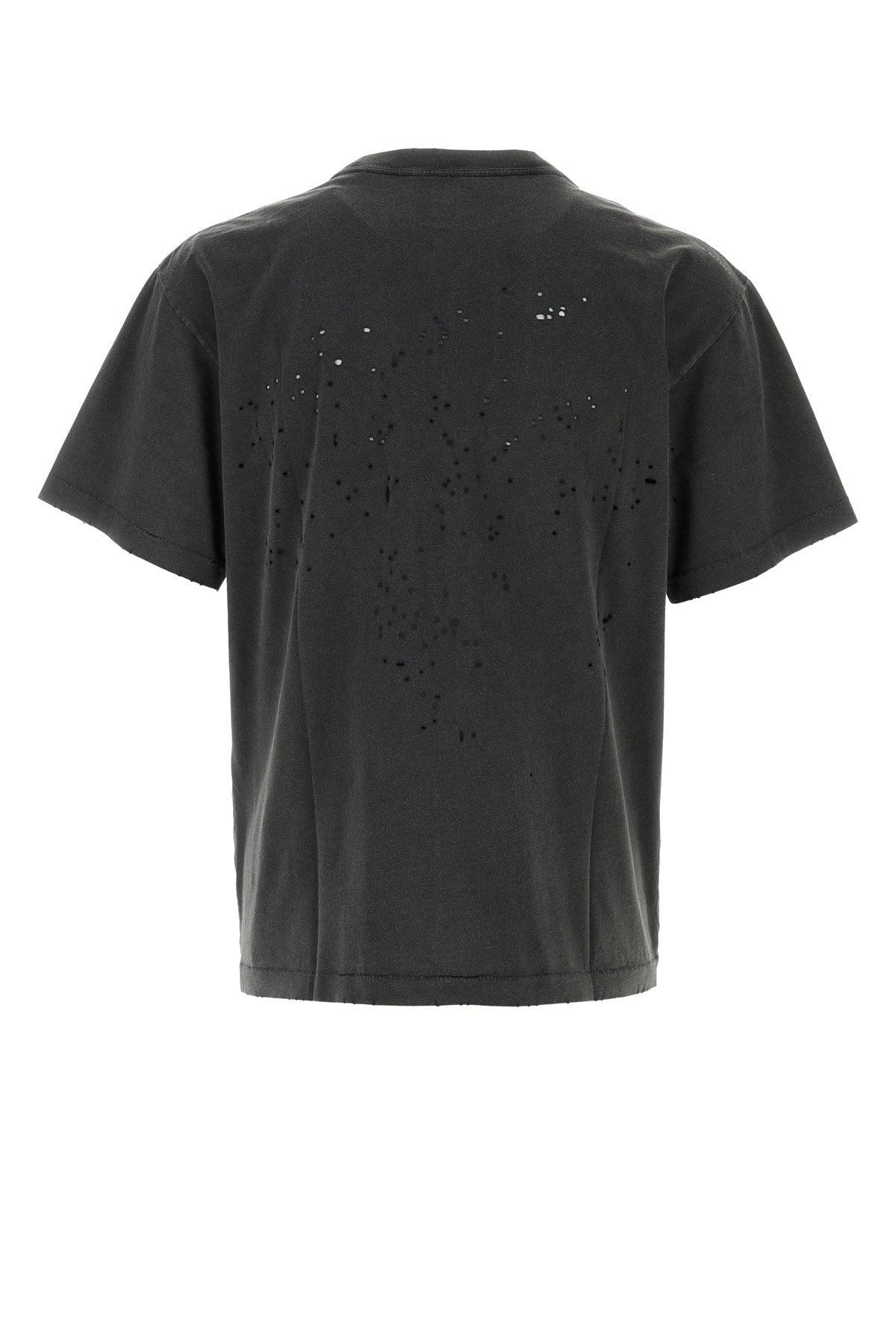T-shirt realized in stonewashed and distressed pure organic cotton characterized by logoed print at the front enriched by logoed label on the hemline.