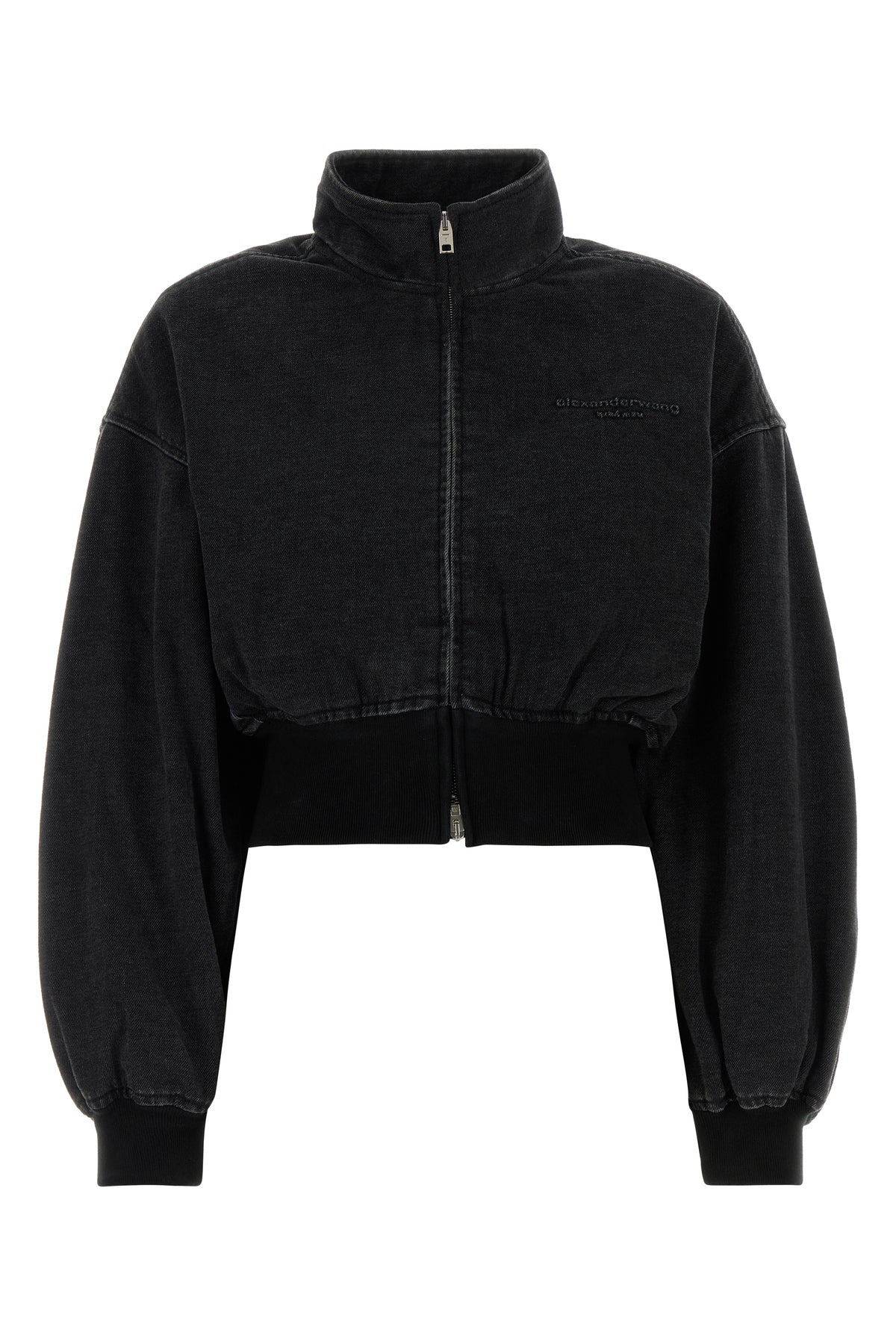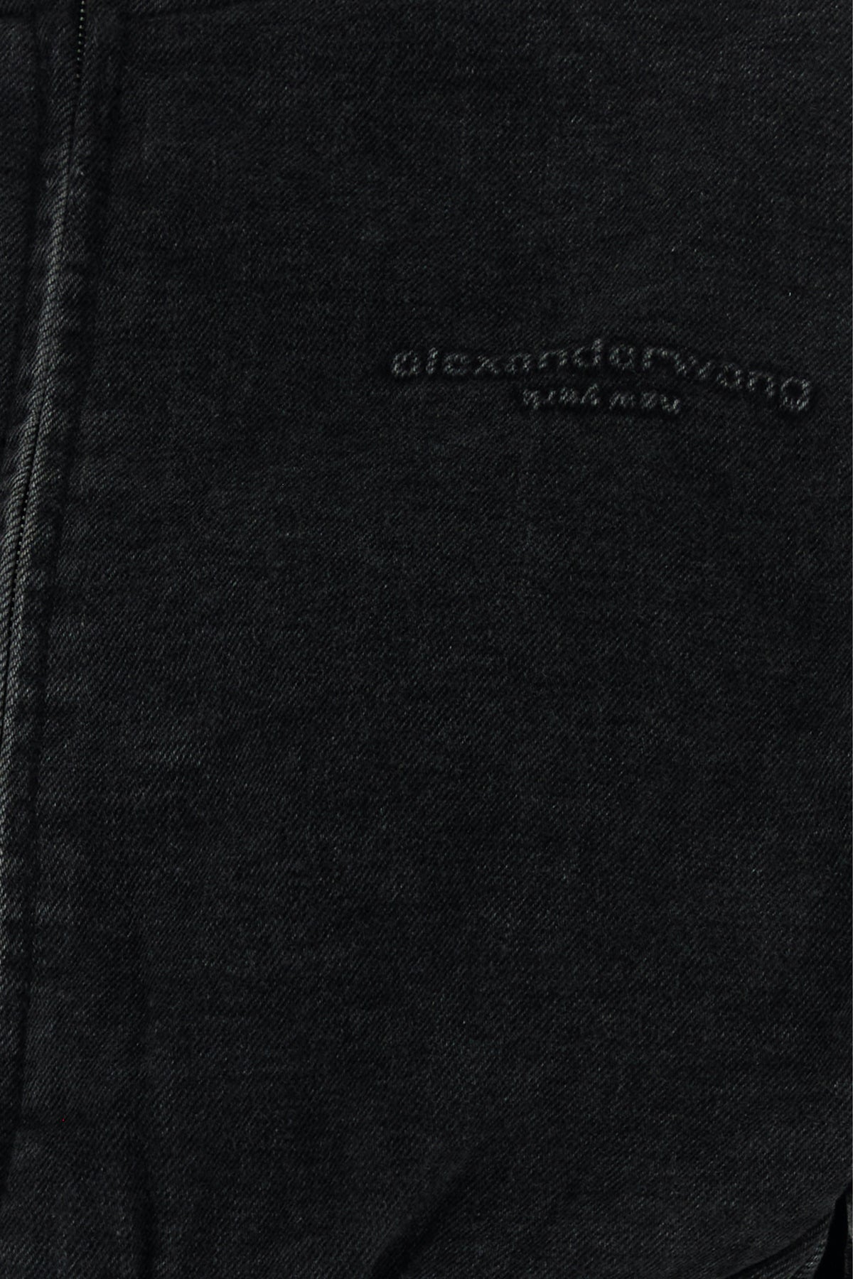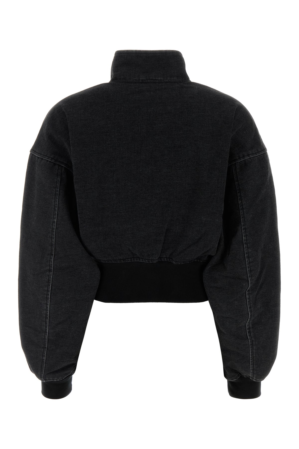 Bomber jacket realized in denim characterized by logo in relief on the chest.