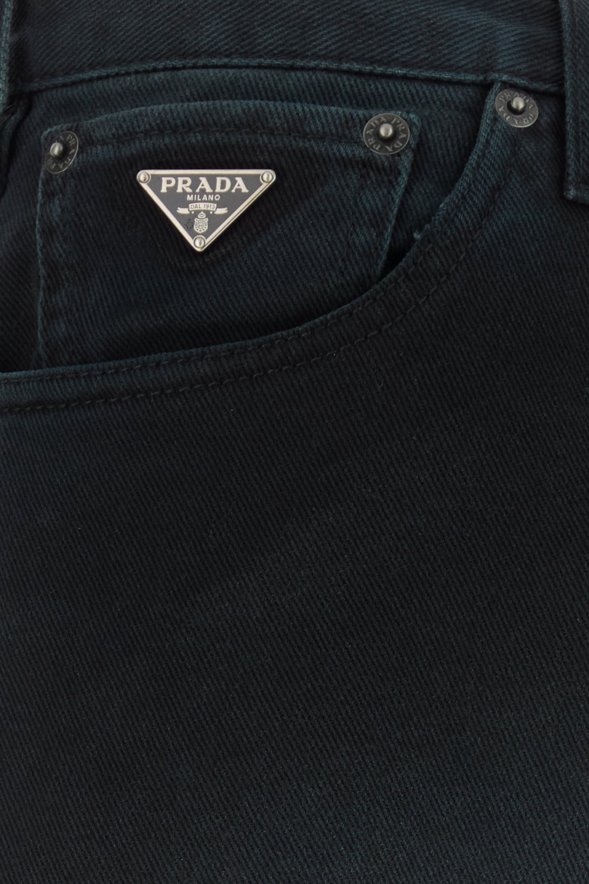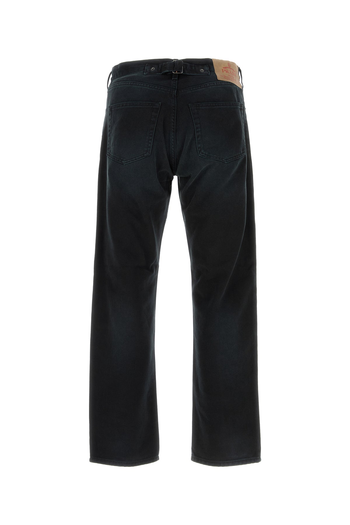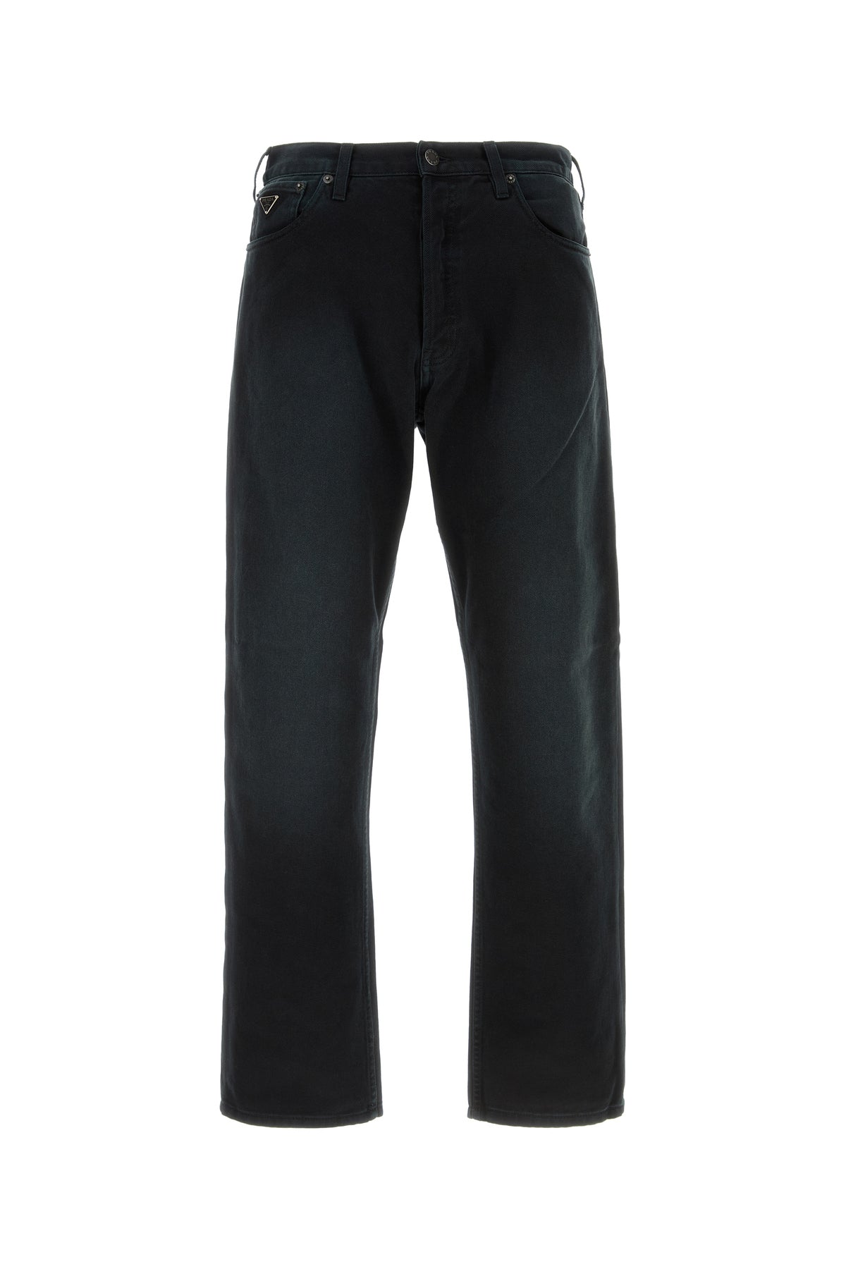 Jeans realized in stonewashed pure cotton denim enriched by iconic logoed metal triangle at the front.