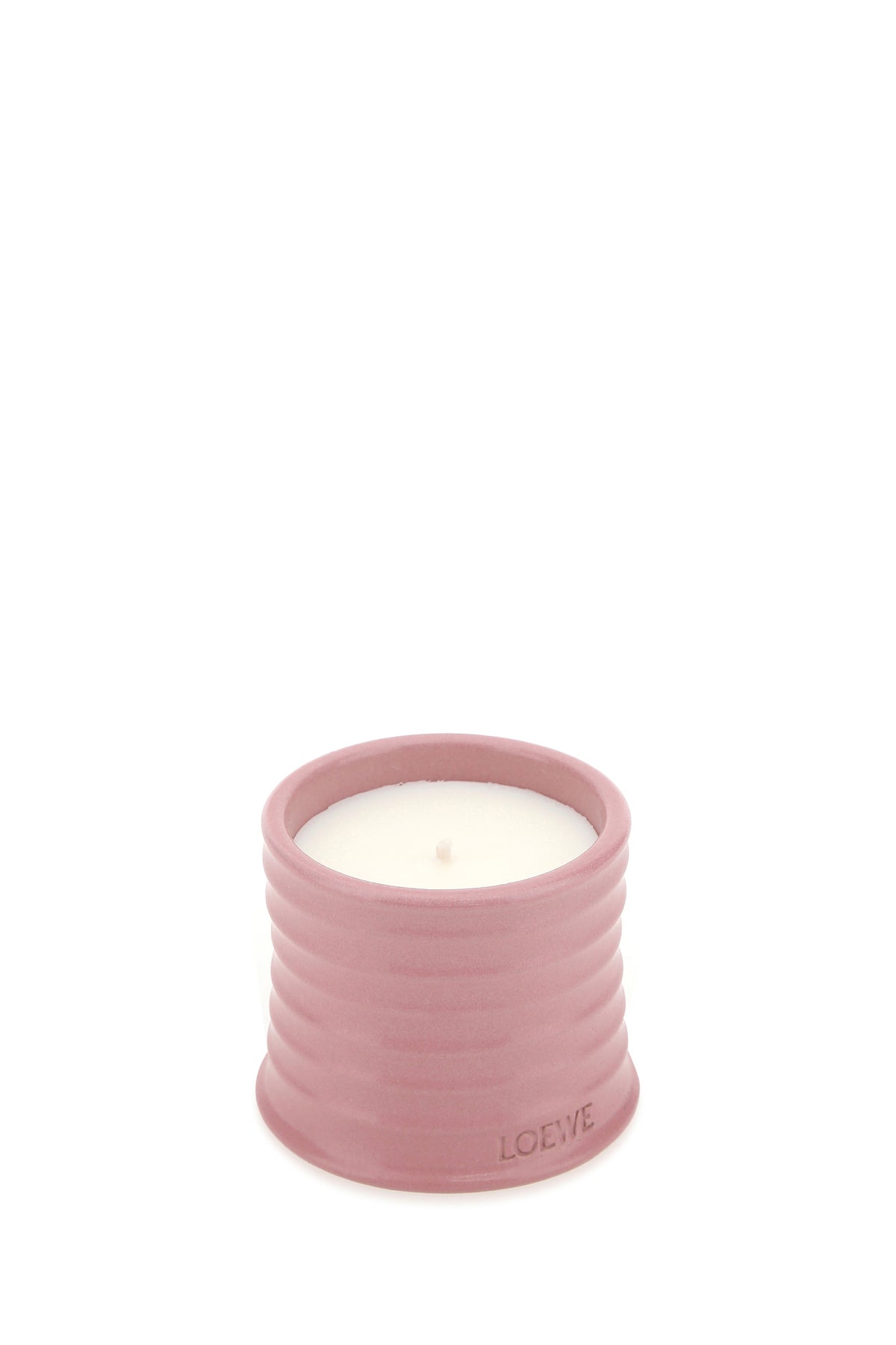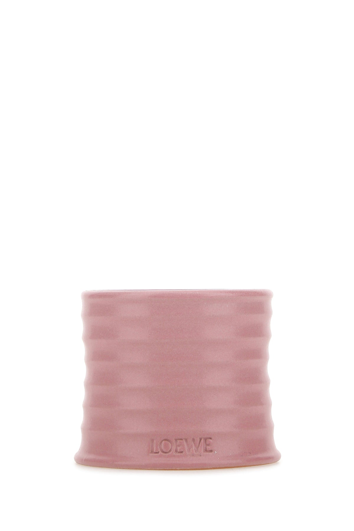 Scented candle characterized by a terracotta vessel with embossed logo.