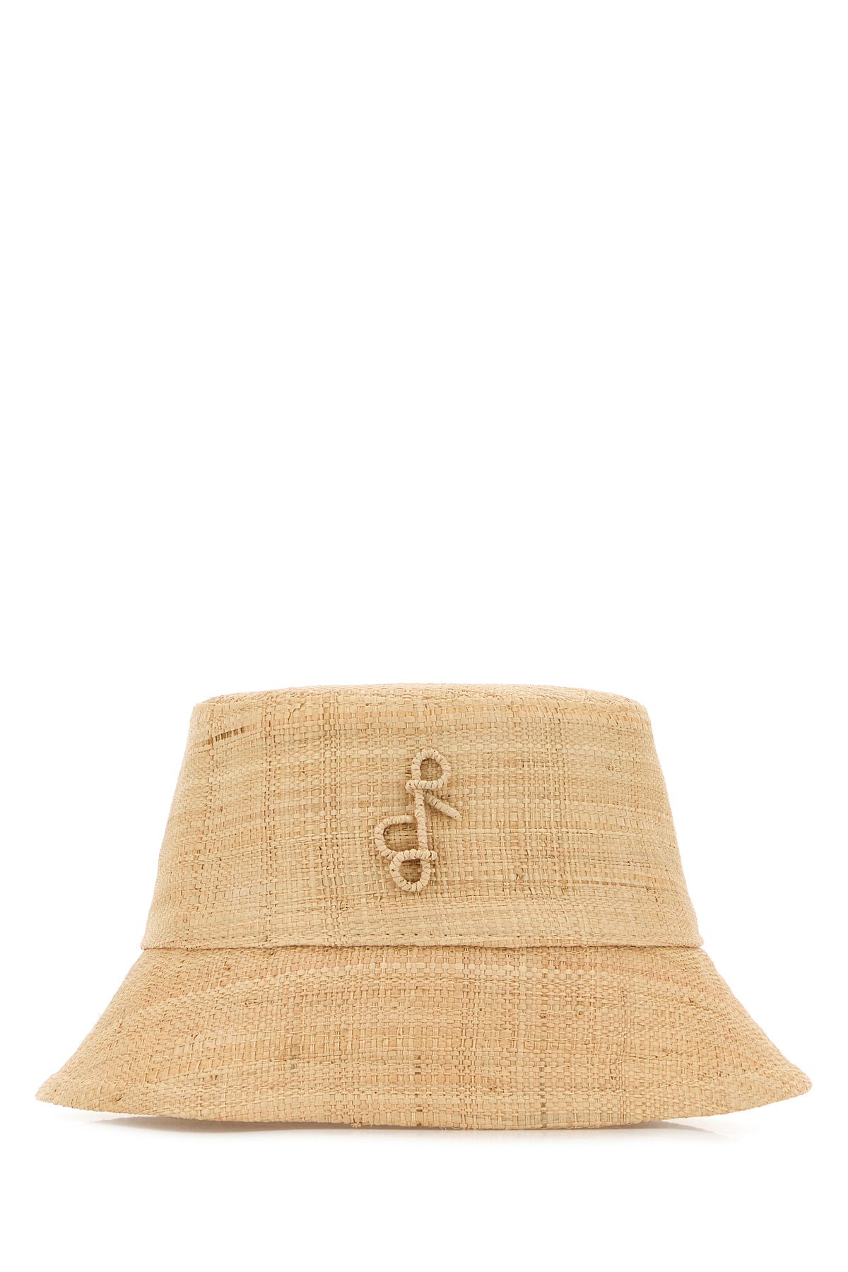 Bucket hat realized in woven straw enriched by peculiar tonal patch at the front.