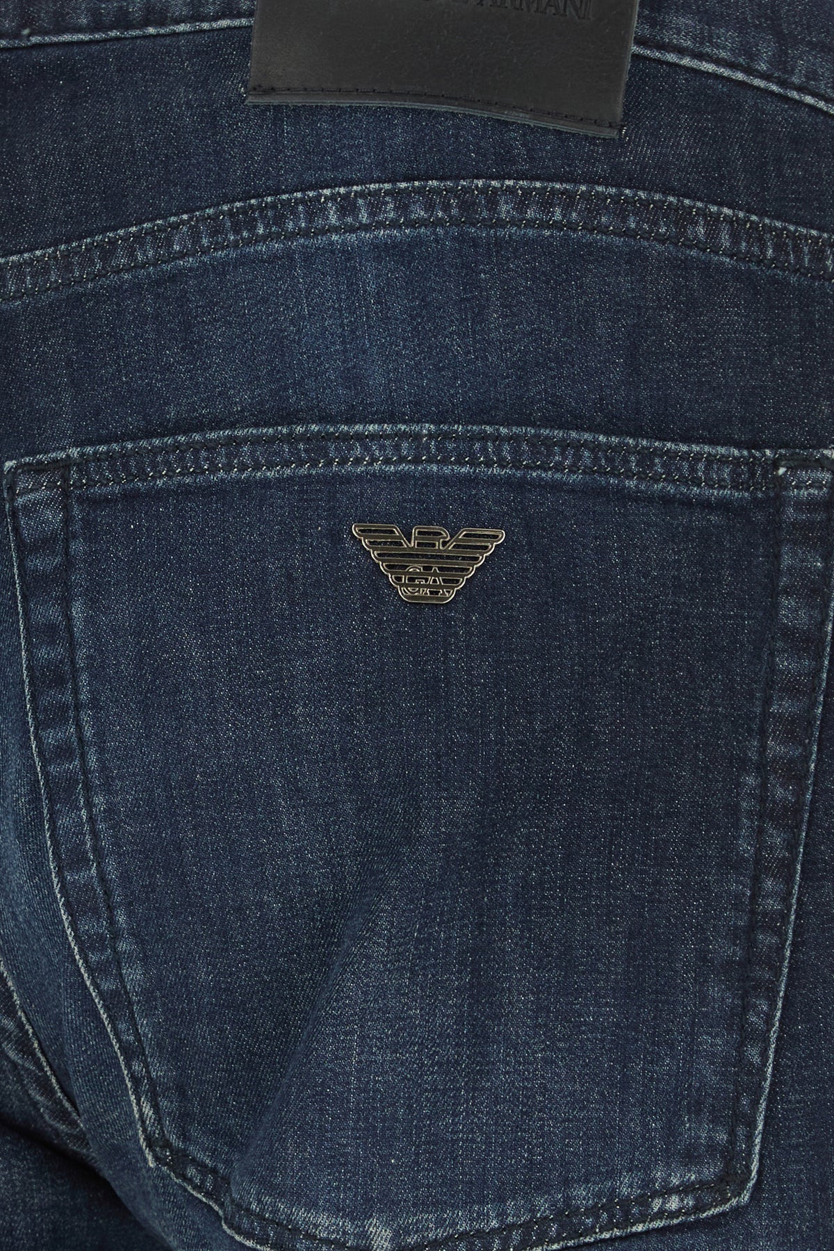 Jeans realized in stonewashed stretch cotton denim enriched by logoed metal detail at the front and at the back.