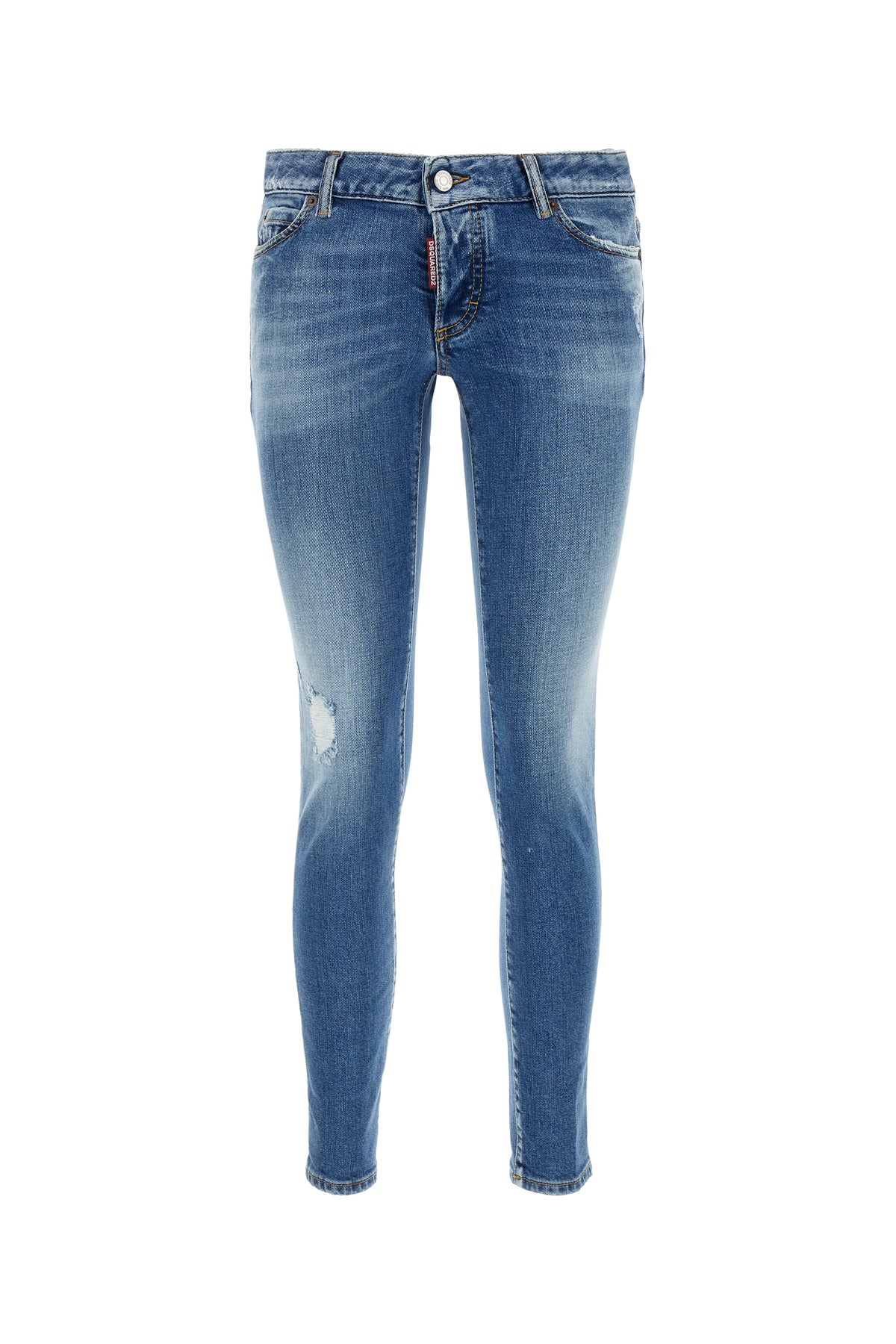 Skinny jeans realized in stonewashed stretch cotton denim with repaired rips enriched by logoed label at the back.