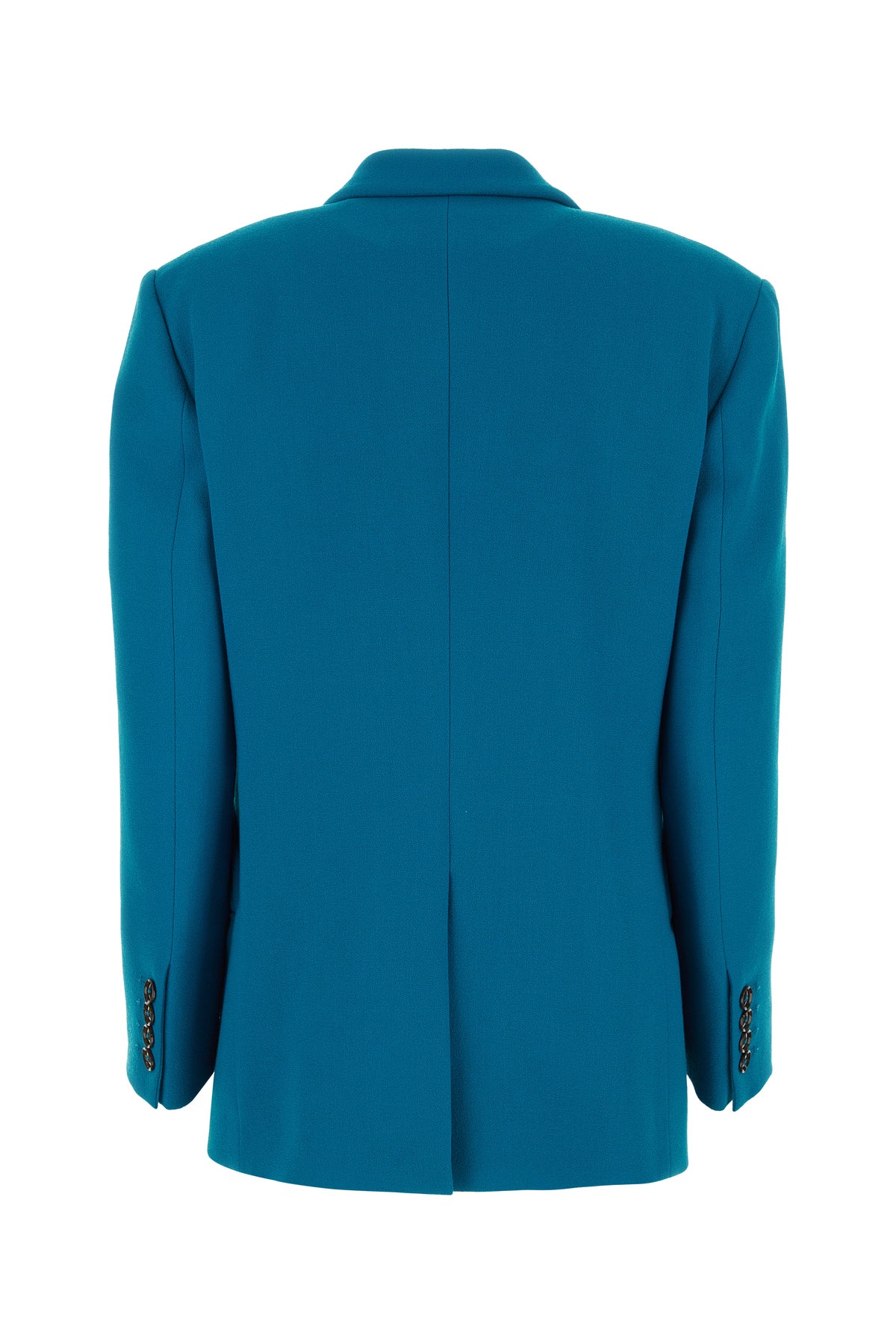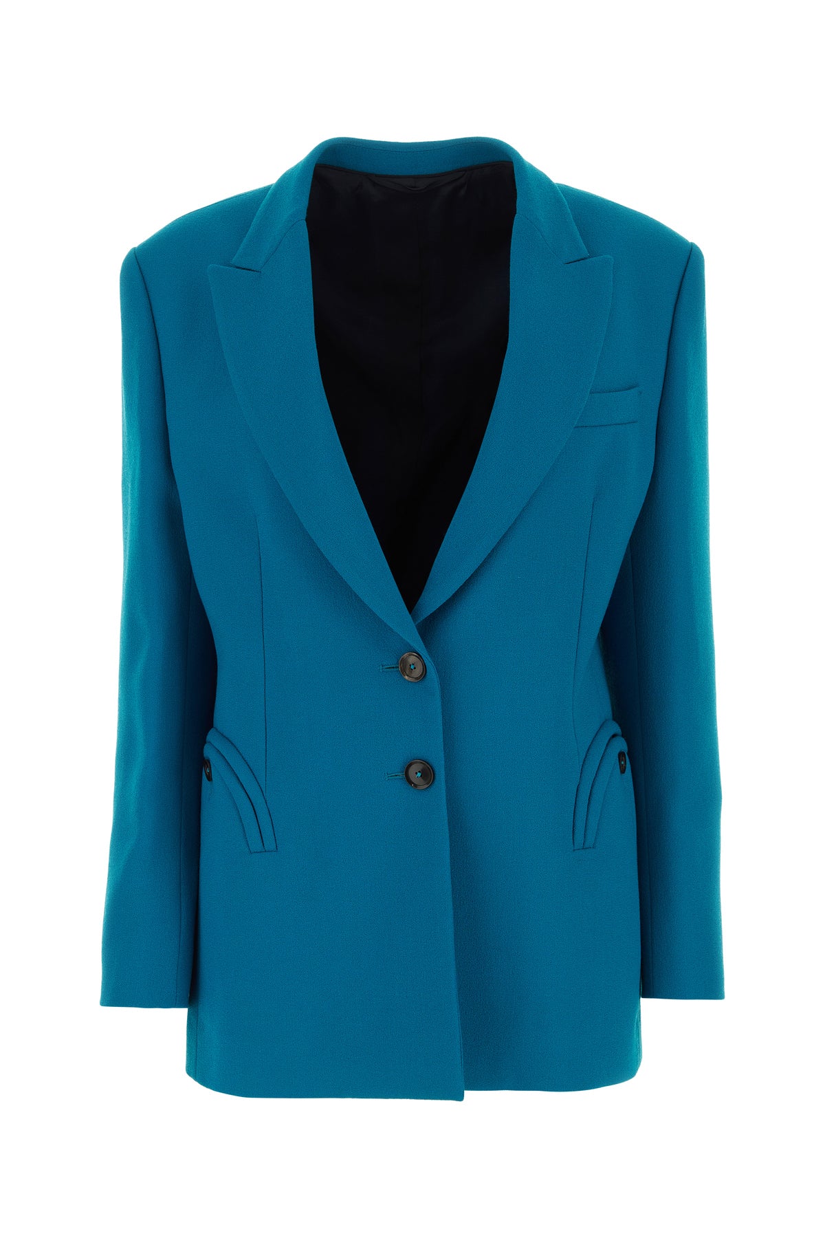 Blazer realized in pure virgin wool characterized by peak lapels.