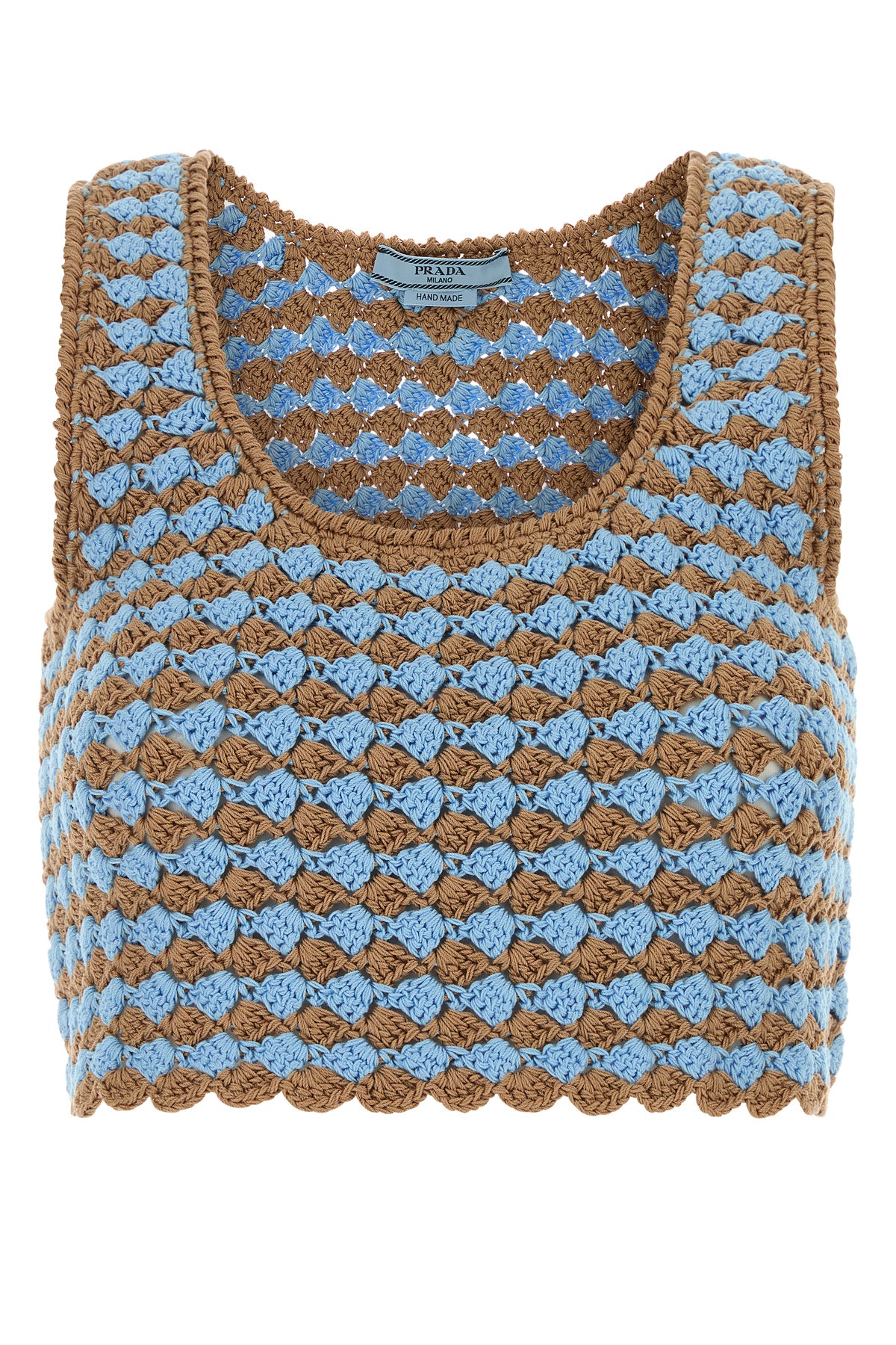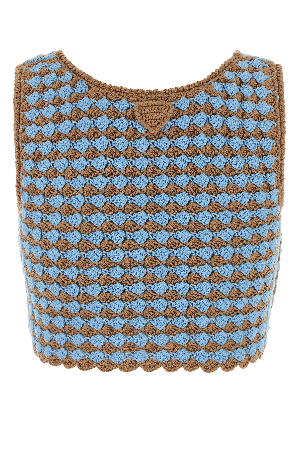 Crop top realized in pure cotton crochet enriched by iconic fabric triangle at the back.