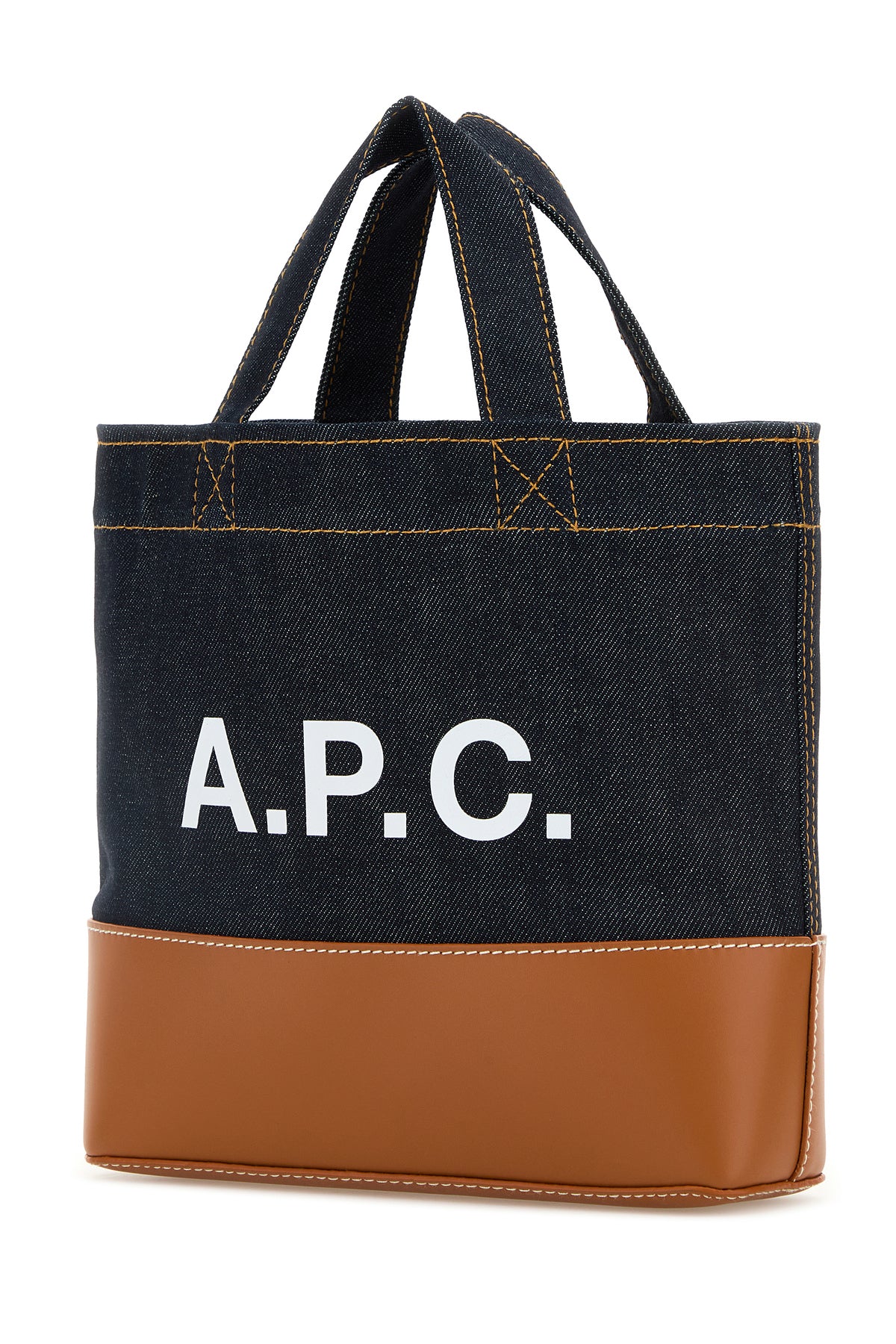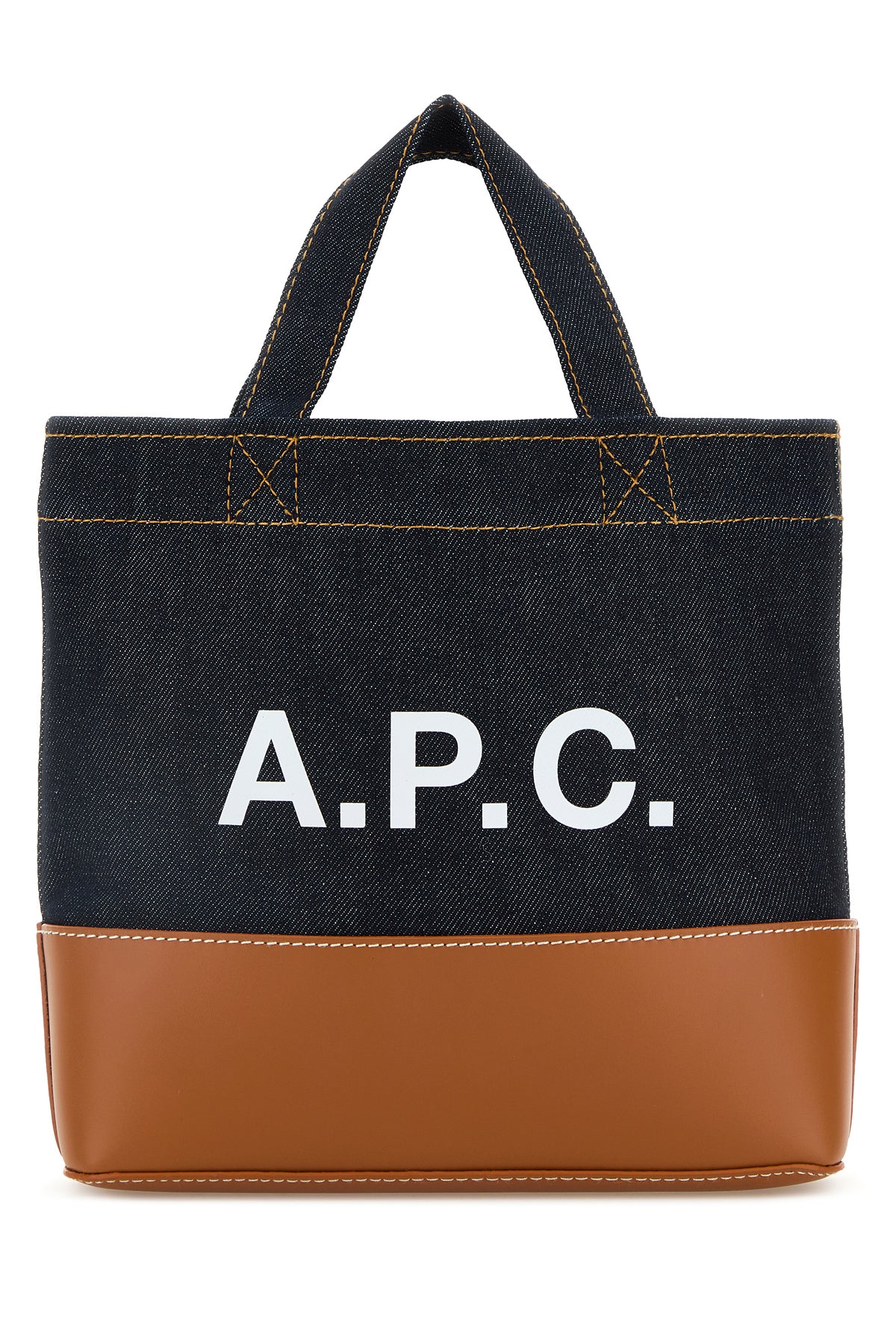 Two-tone denim and leather mini Axel shopping bag