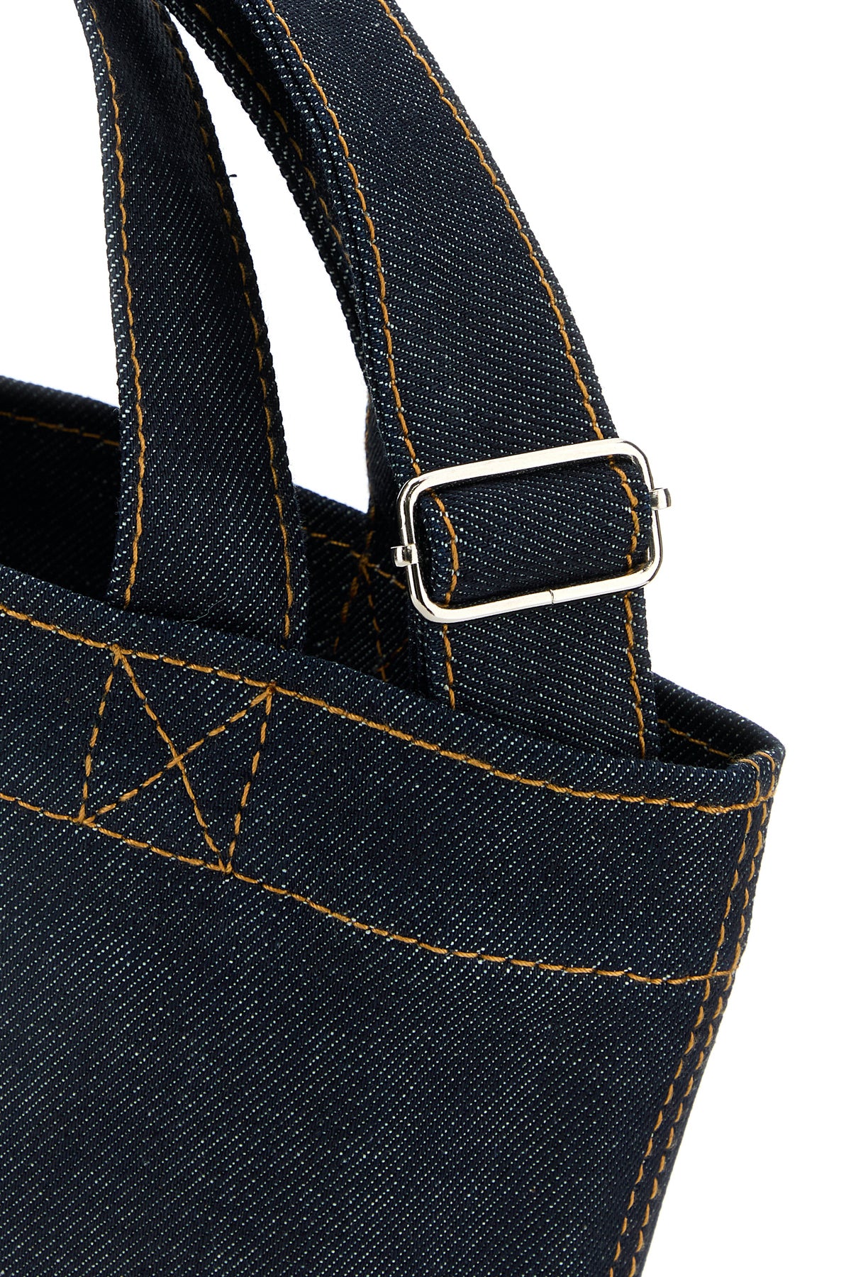 Shopping bag realized in denim and smooth leather characterized by printed logo at the front.