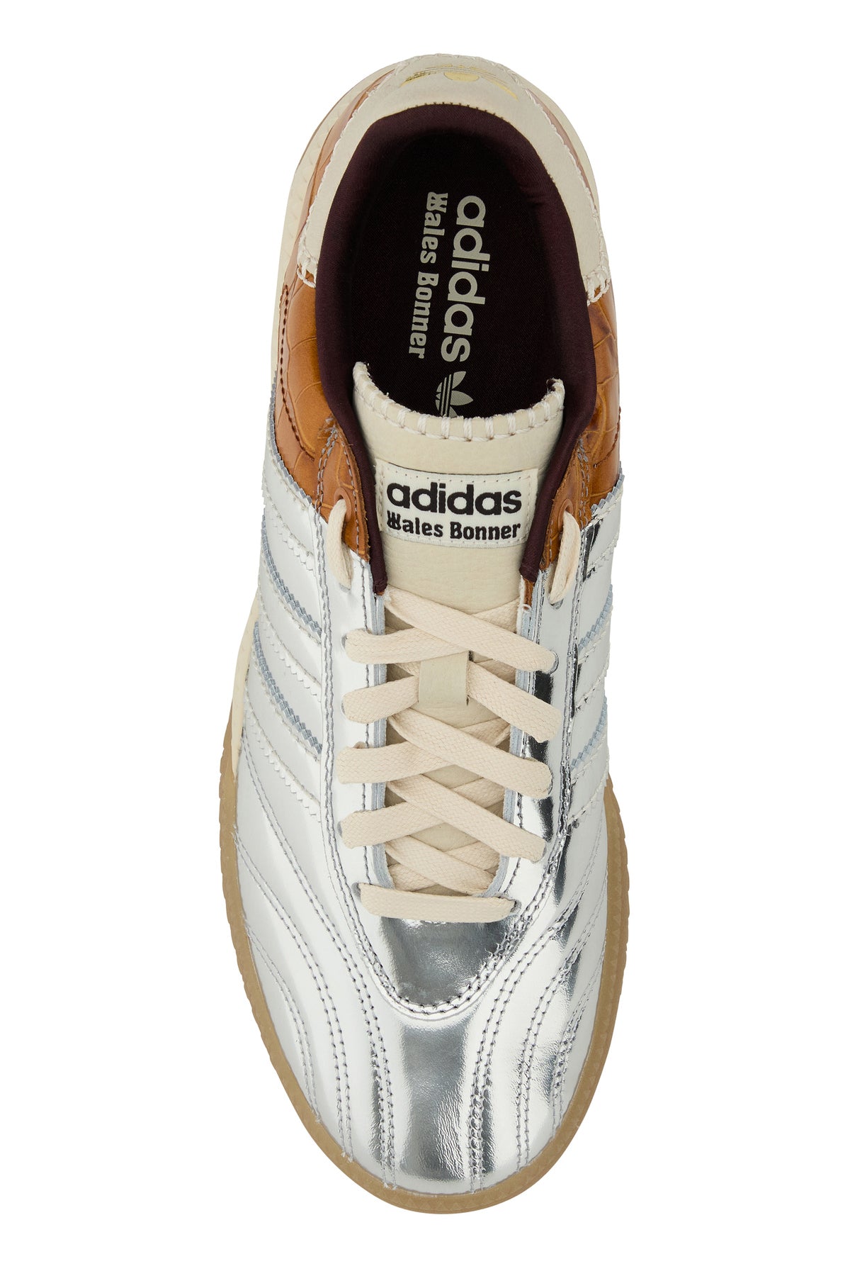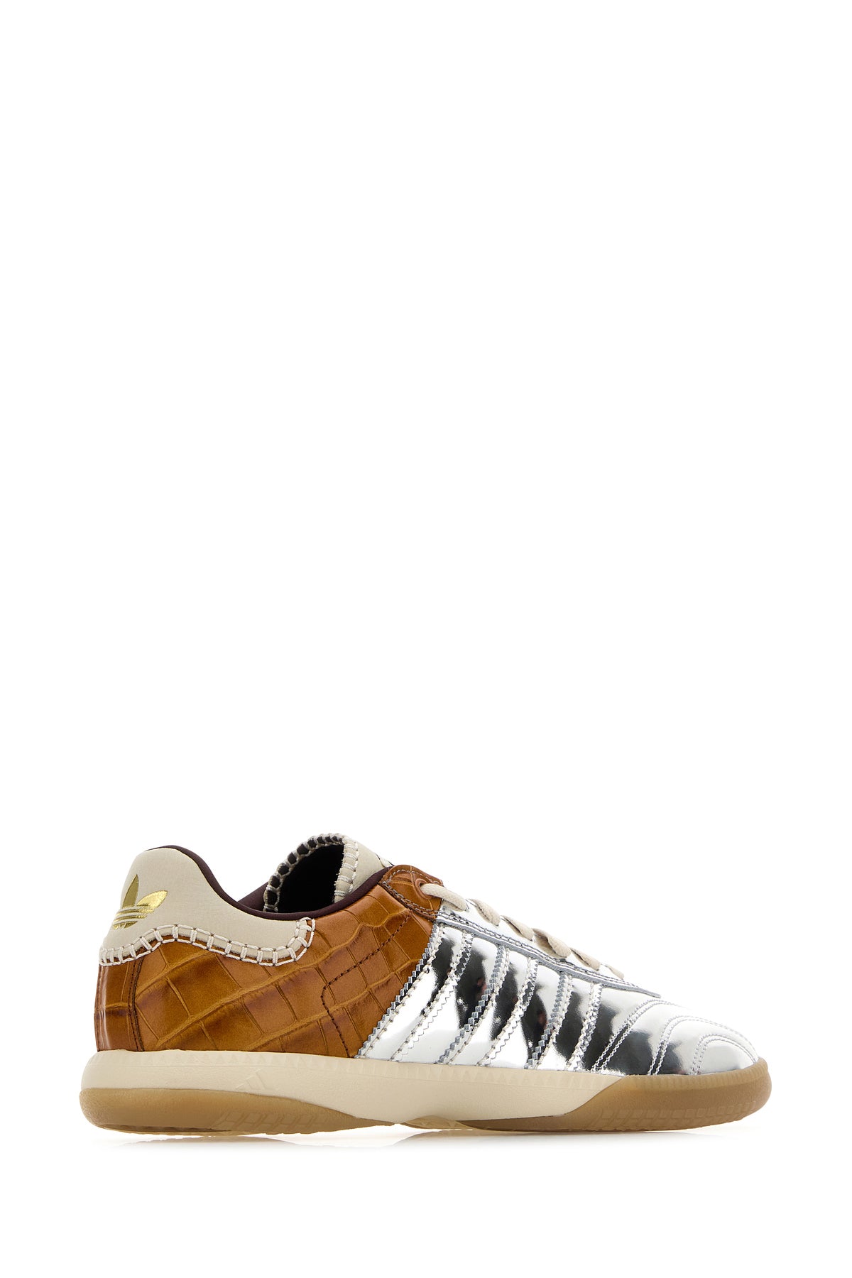 Sneakers realized in crocodile motif embossed leather and laminated leather characterized by printed logo on the heel.