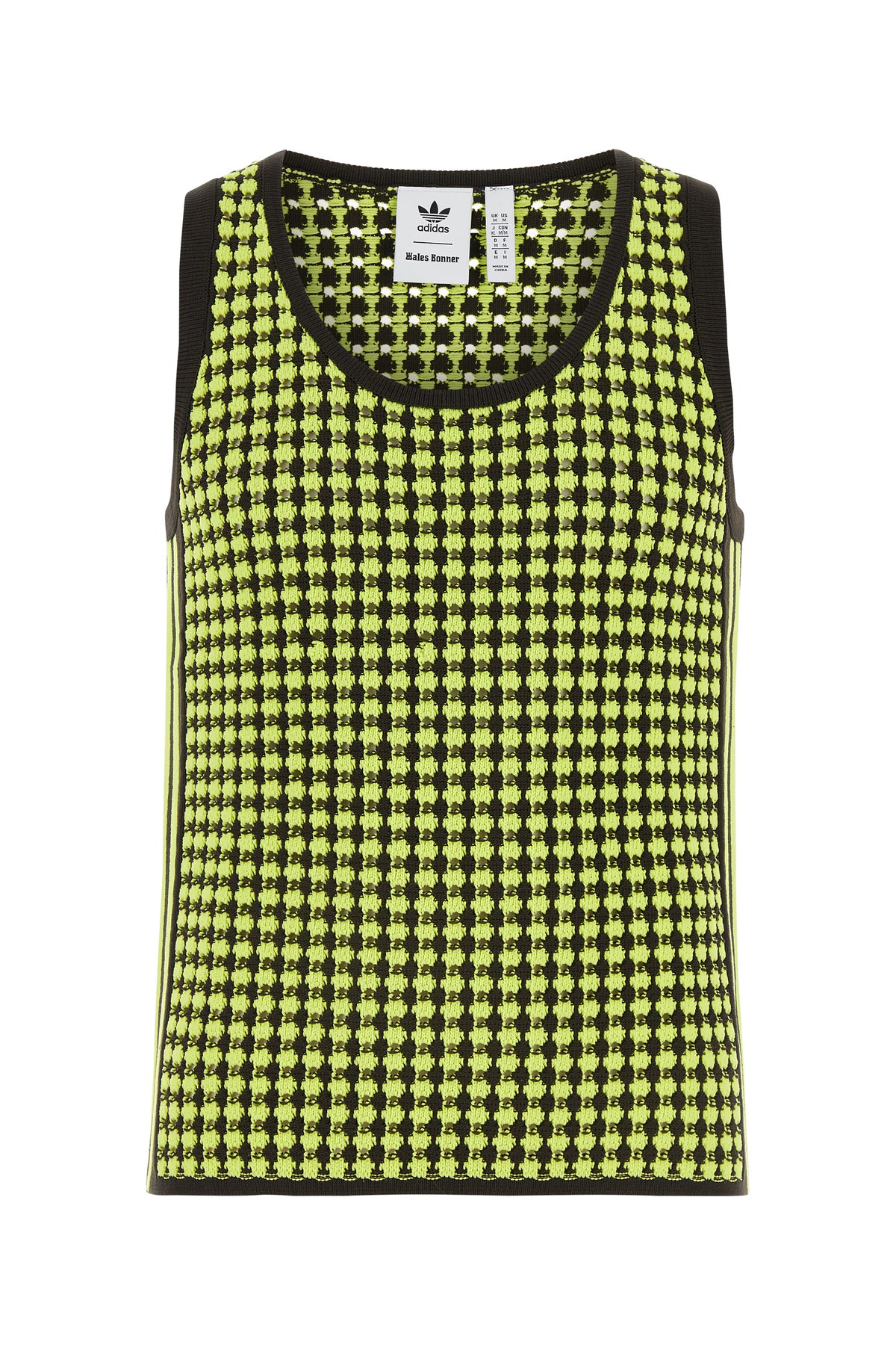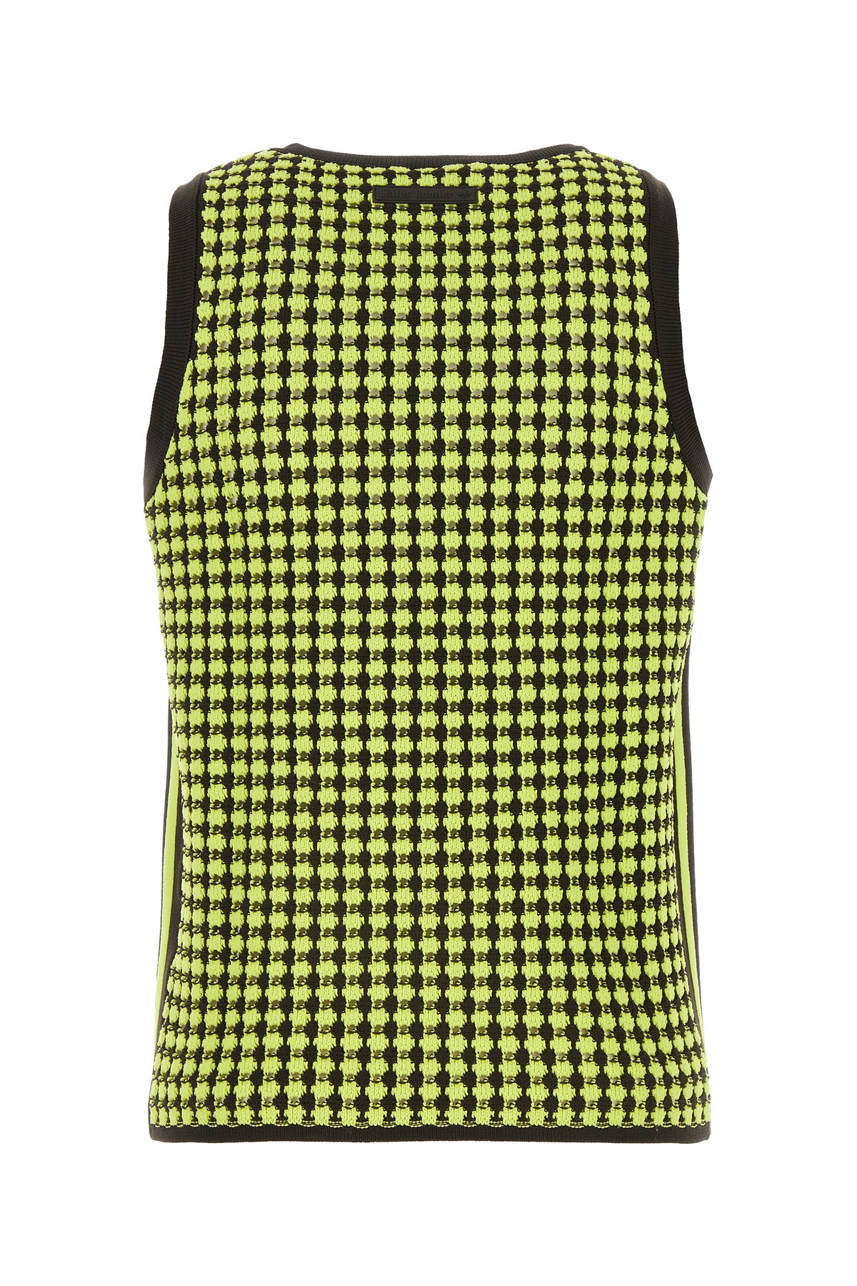 Tank top realized in polyester characterized by peculiar embroidery on the entire surface enriched by rubber logoed patch at the back.