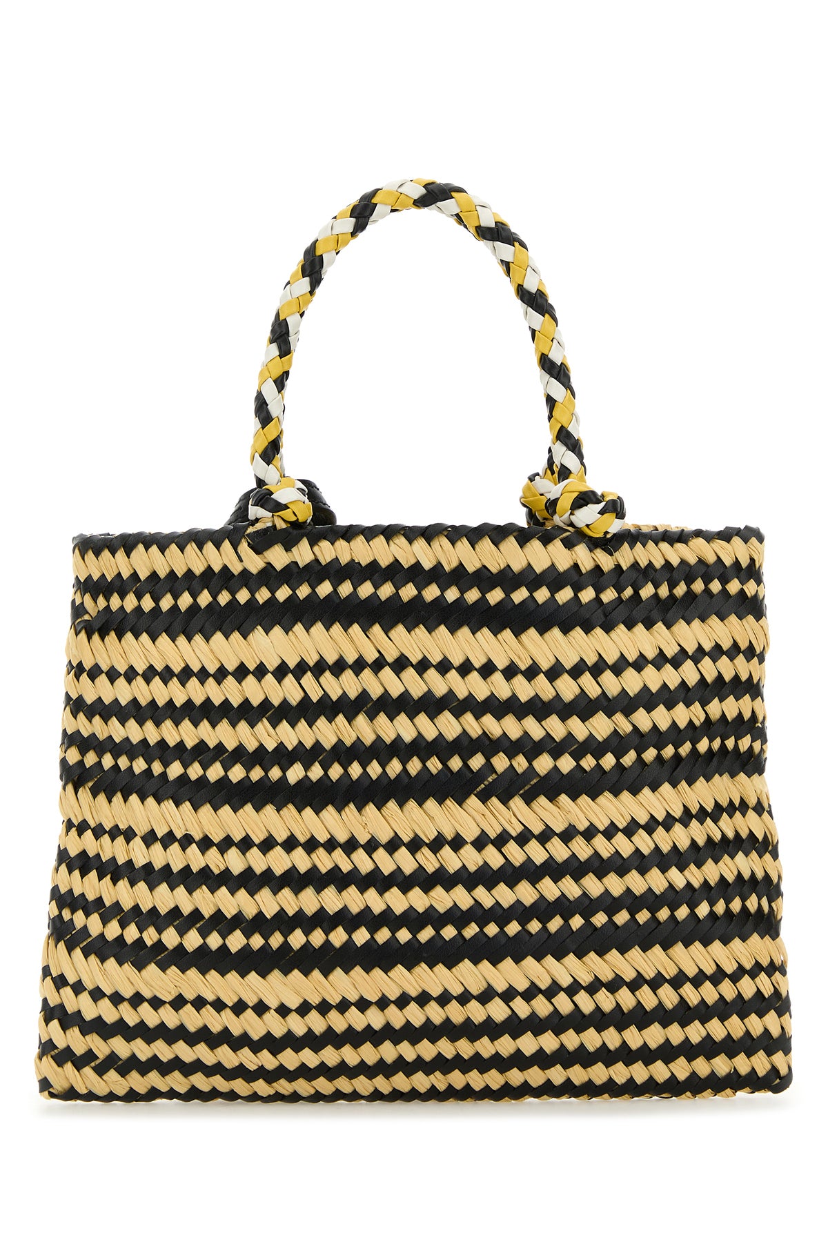 Two-tone raffia handbag