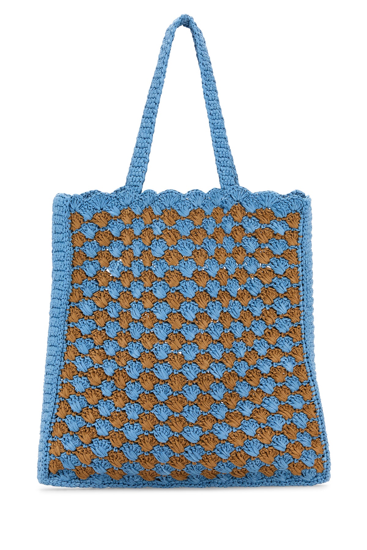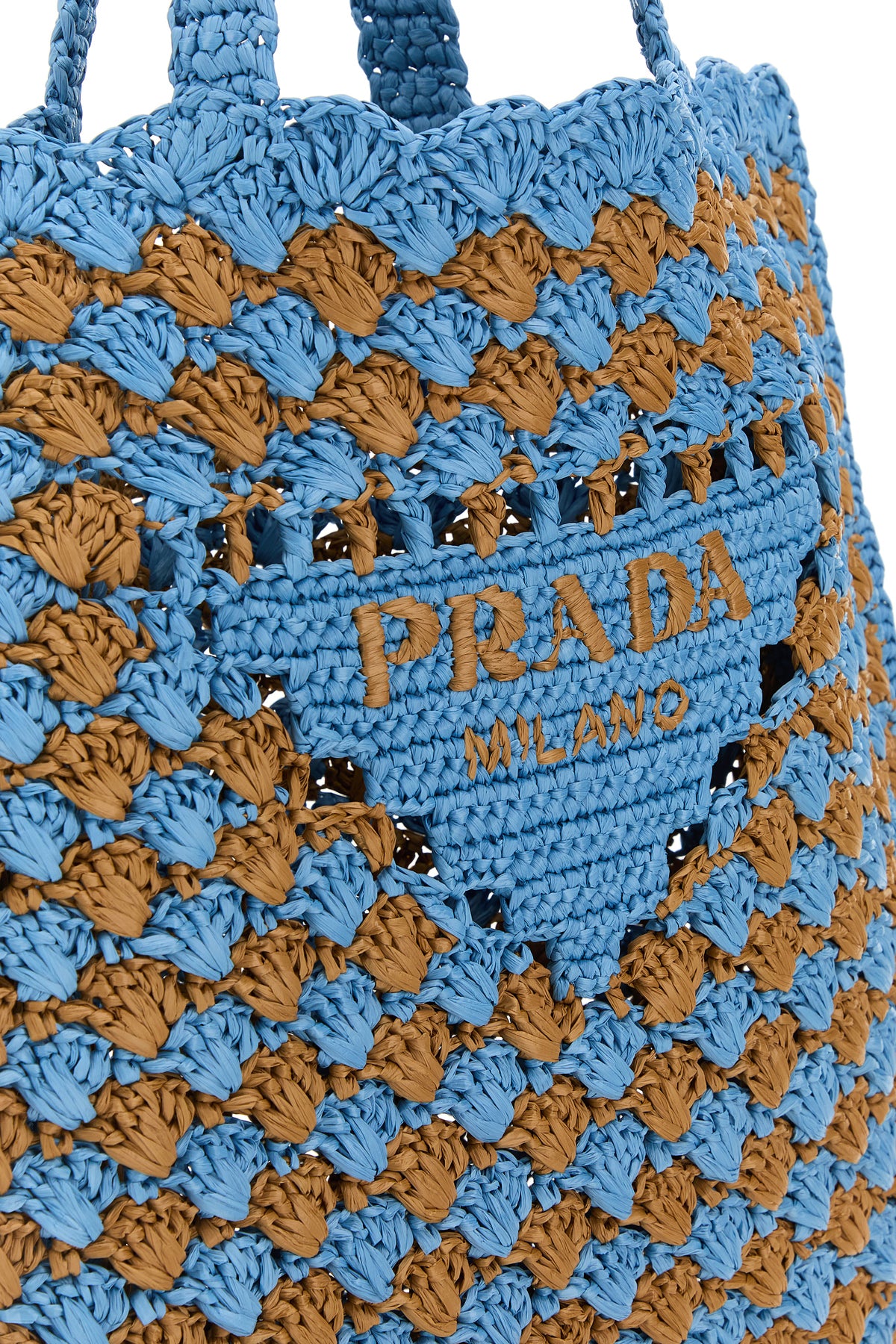 Shopping bag realized in raffia characterized by embroidered logo at the front.