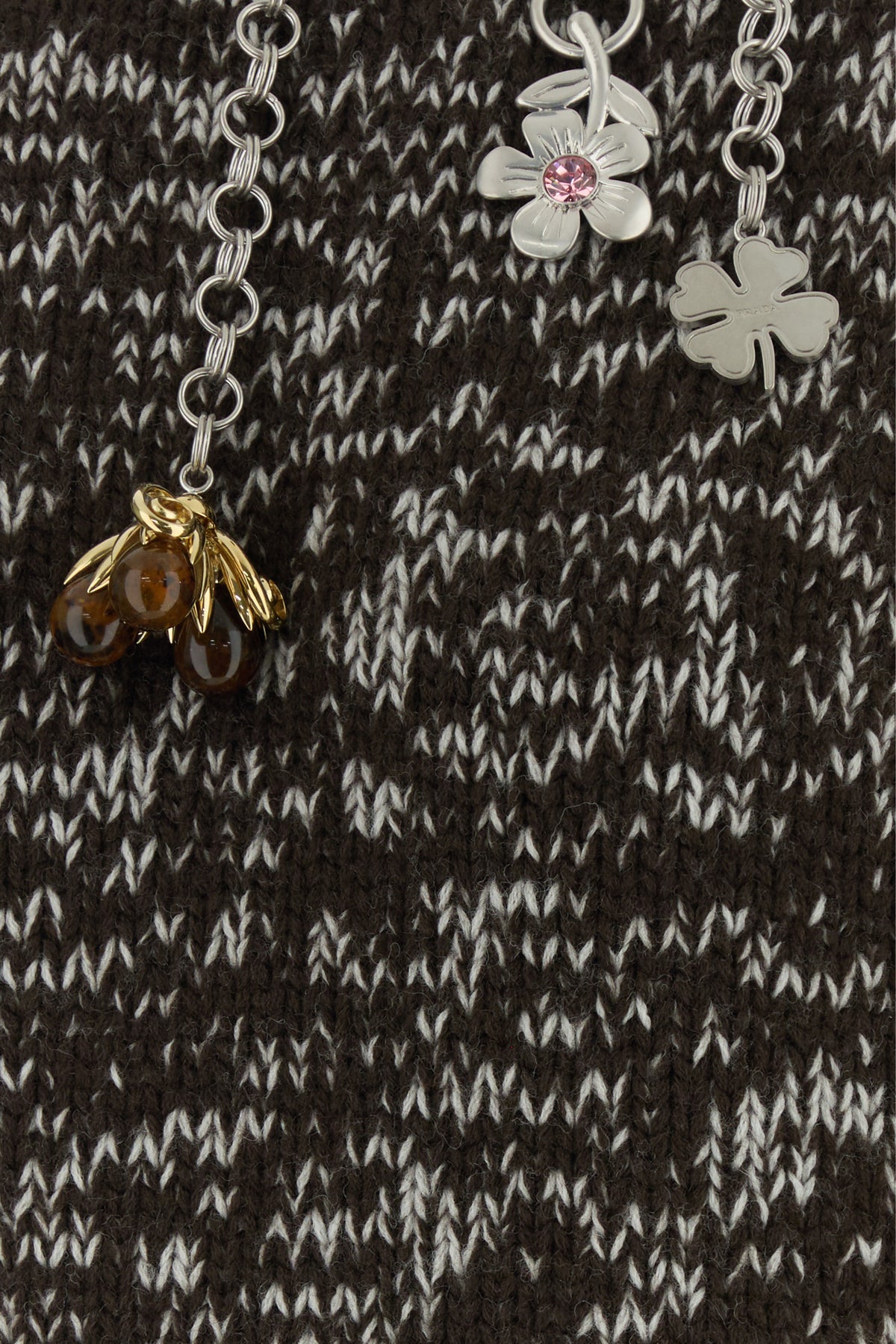 Oversize sweater realized in pure virgin wool enriched by floral metal details on the crew-neck.